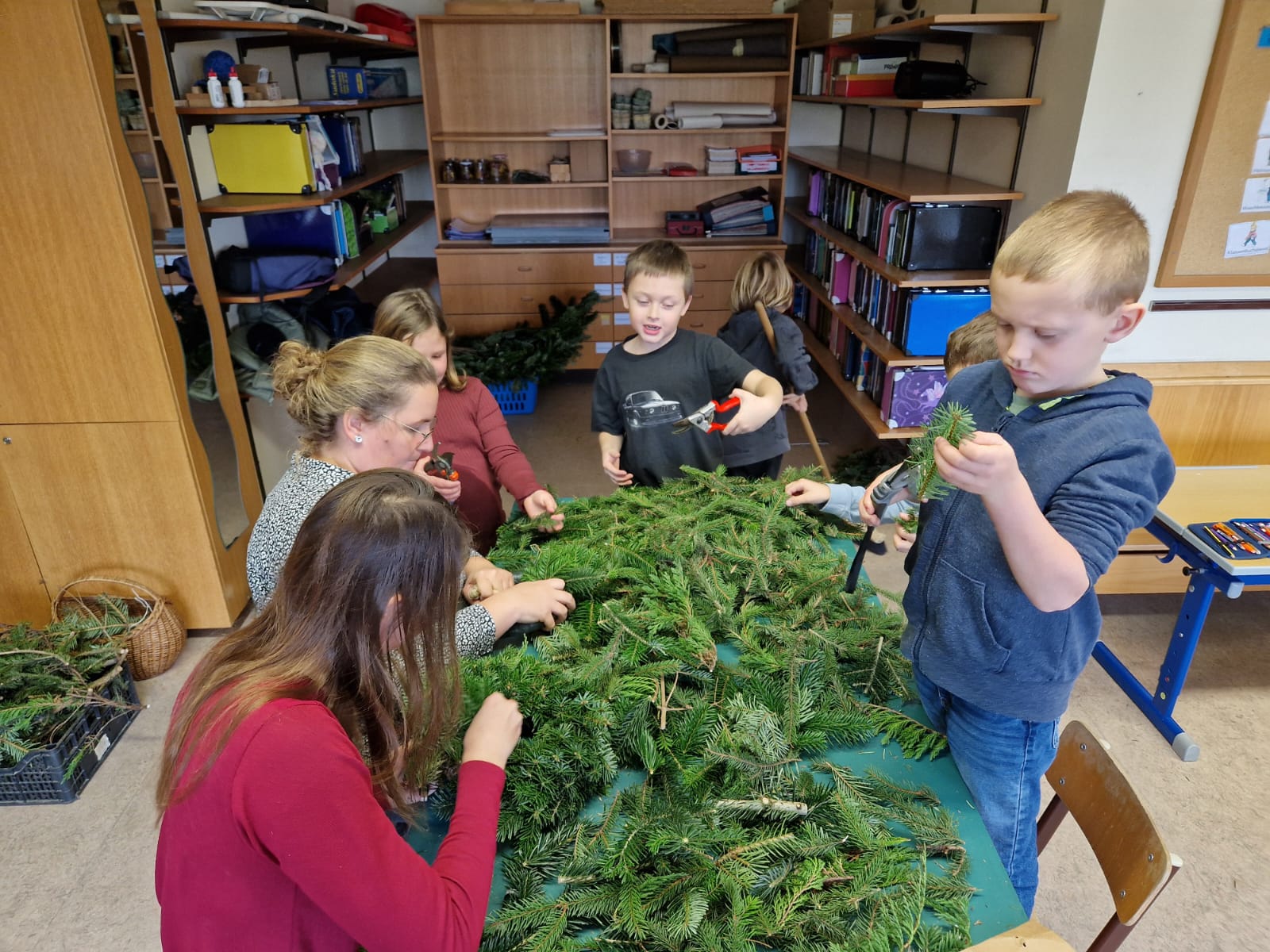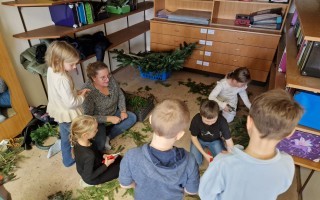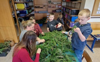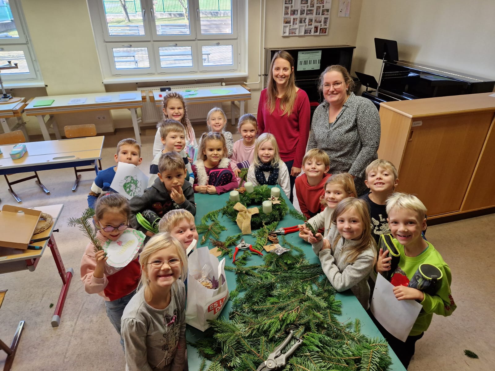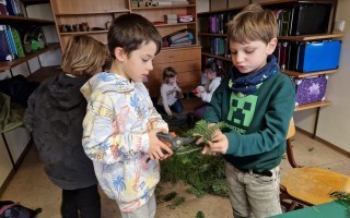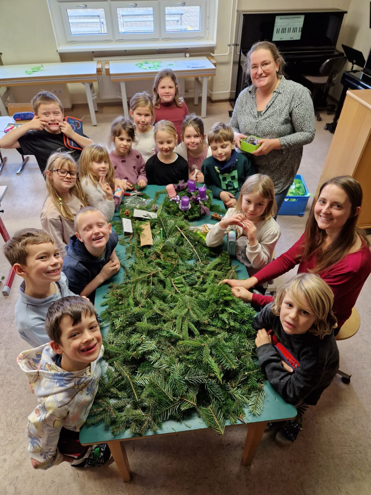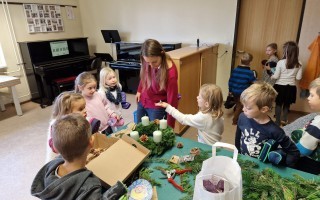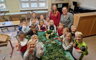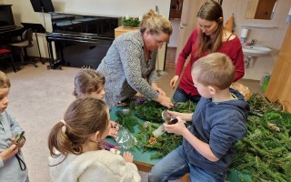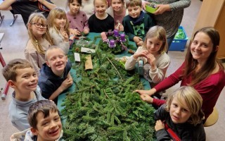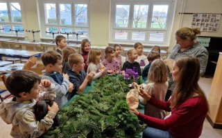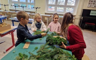 Adventkranzbinden mit den beiden ersten Klassen