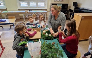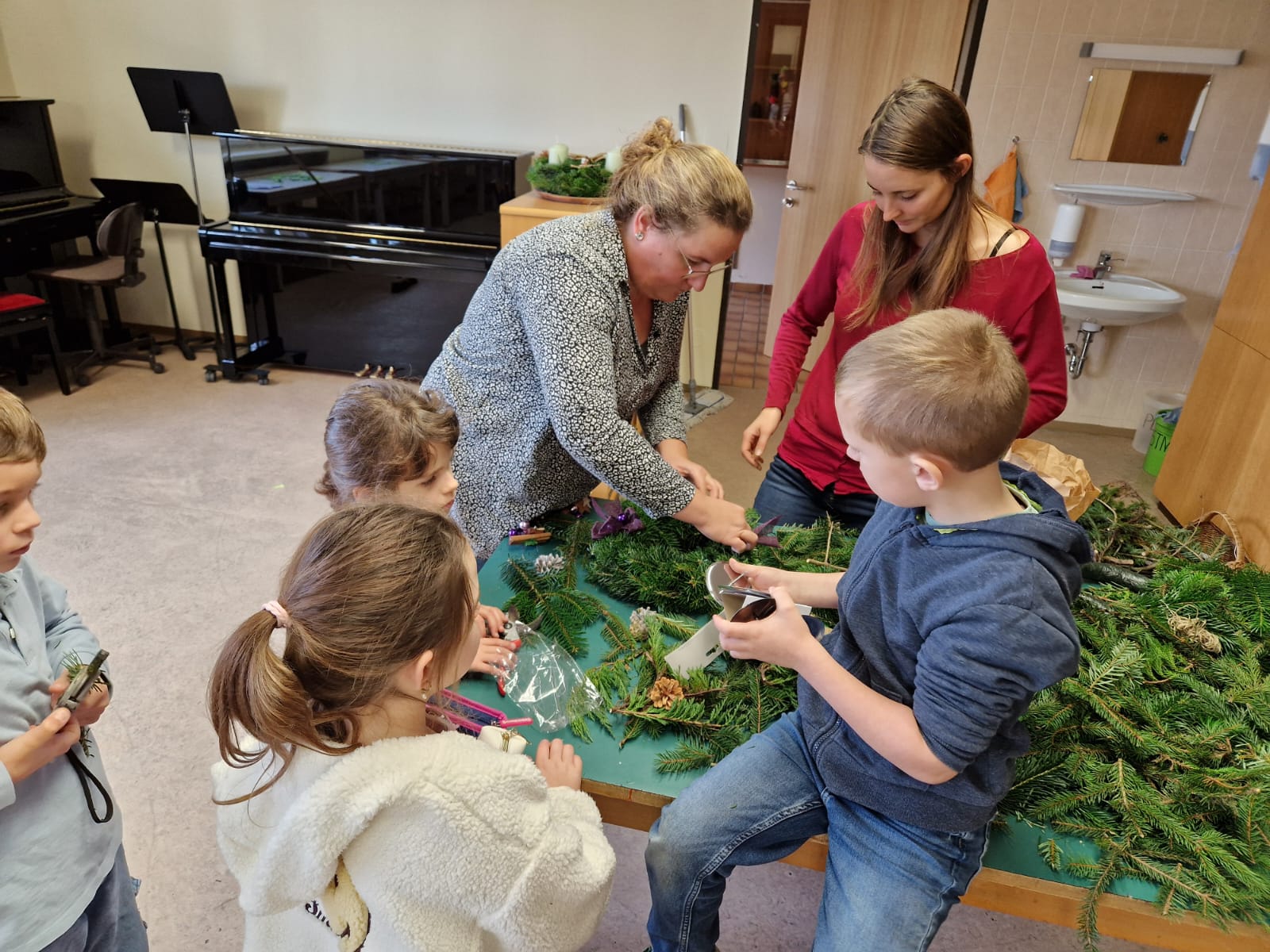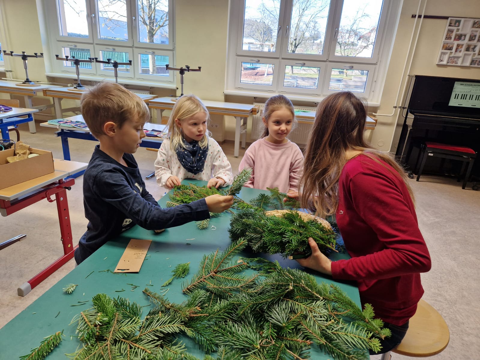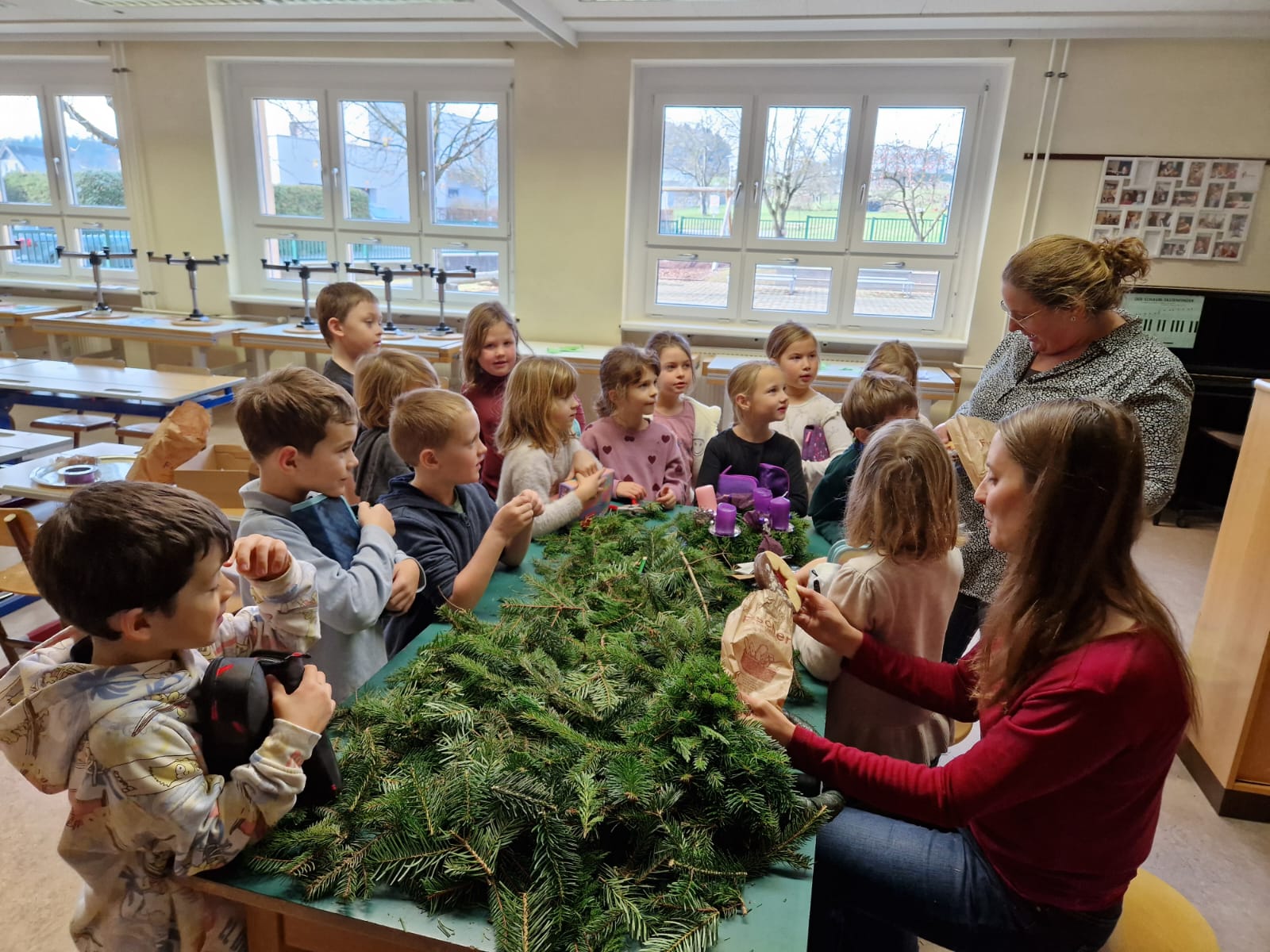 Adventkranzbinden mit den beiden ersten Klassen