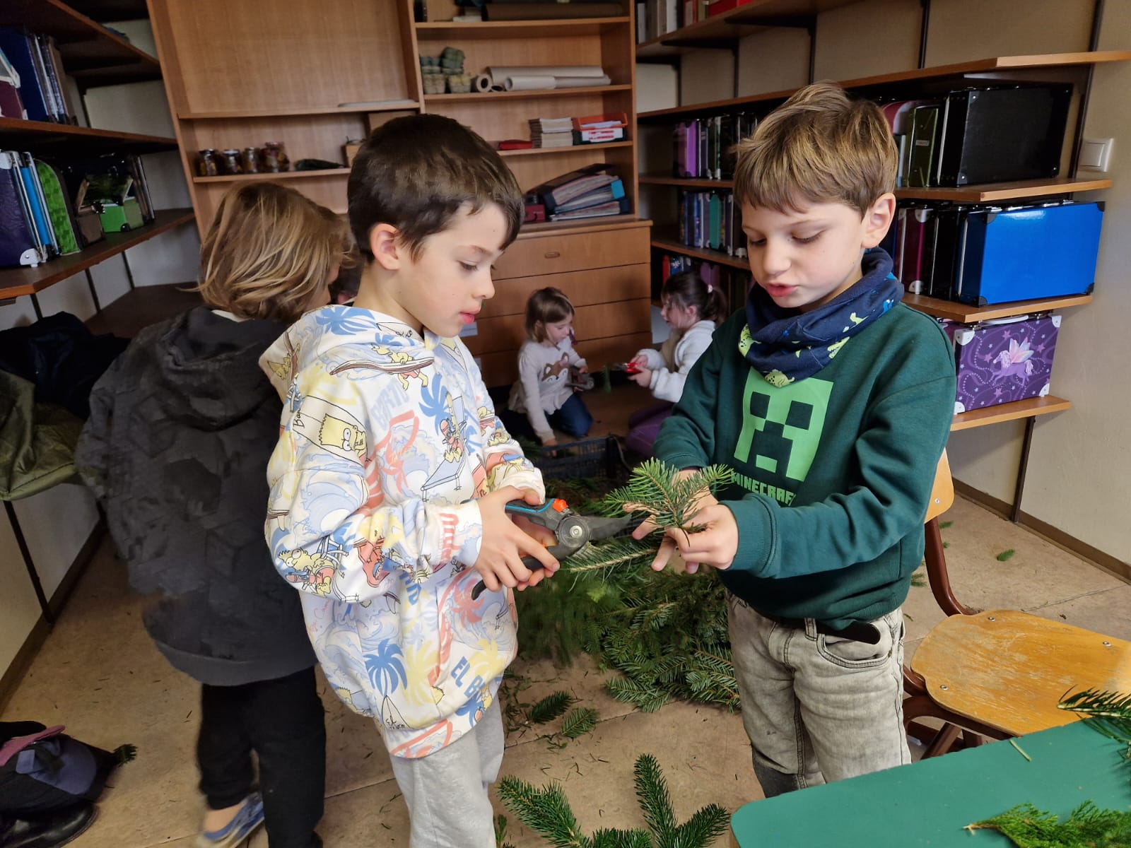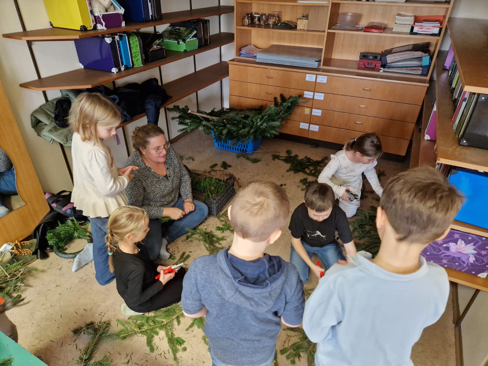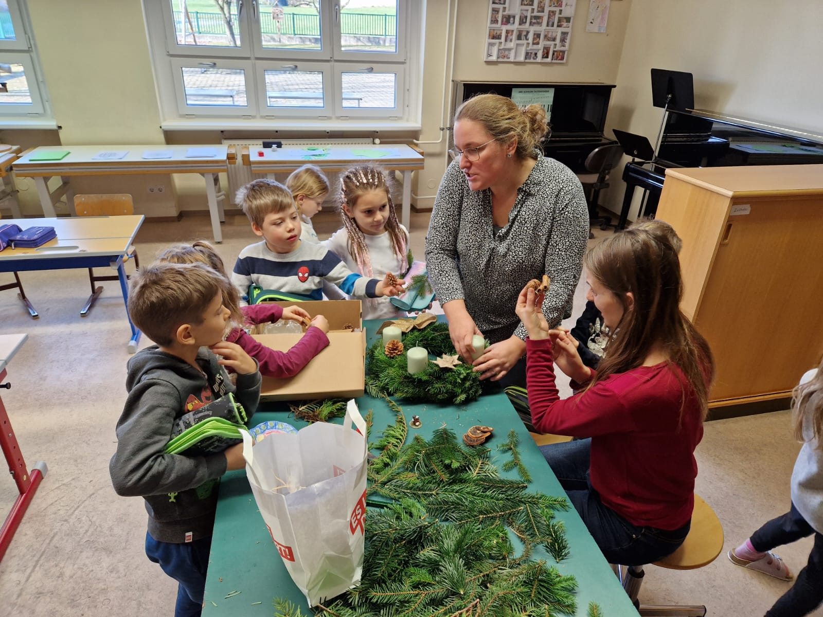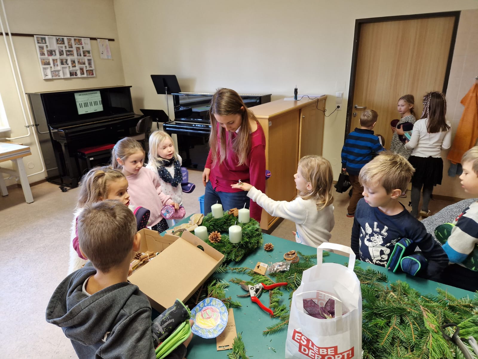Adventkranzbinden mit den beiden ersten Klassen