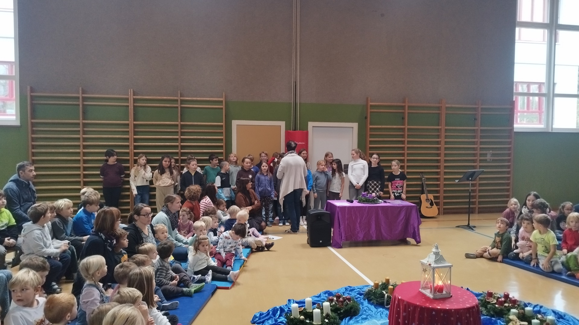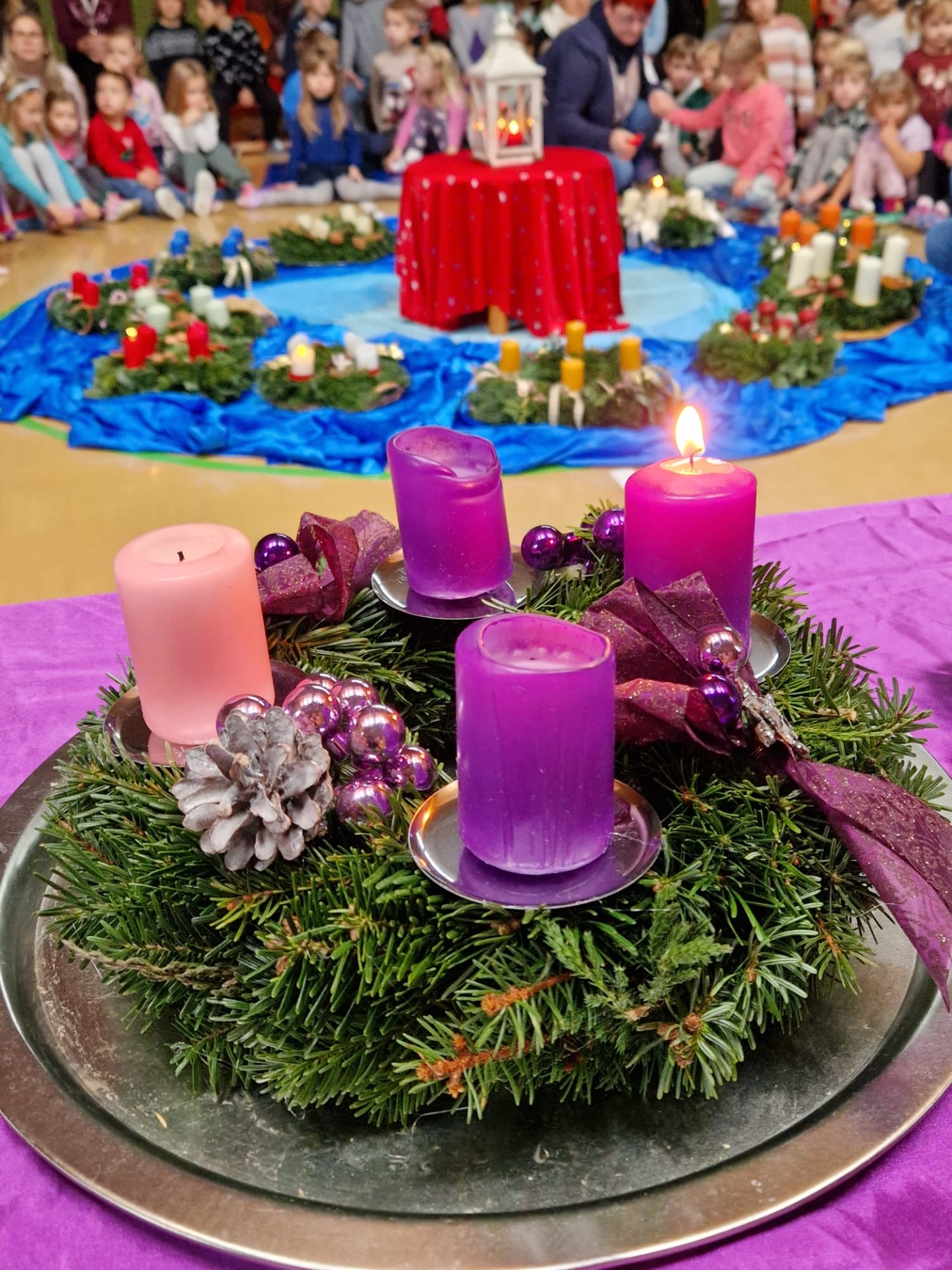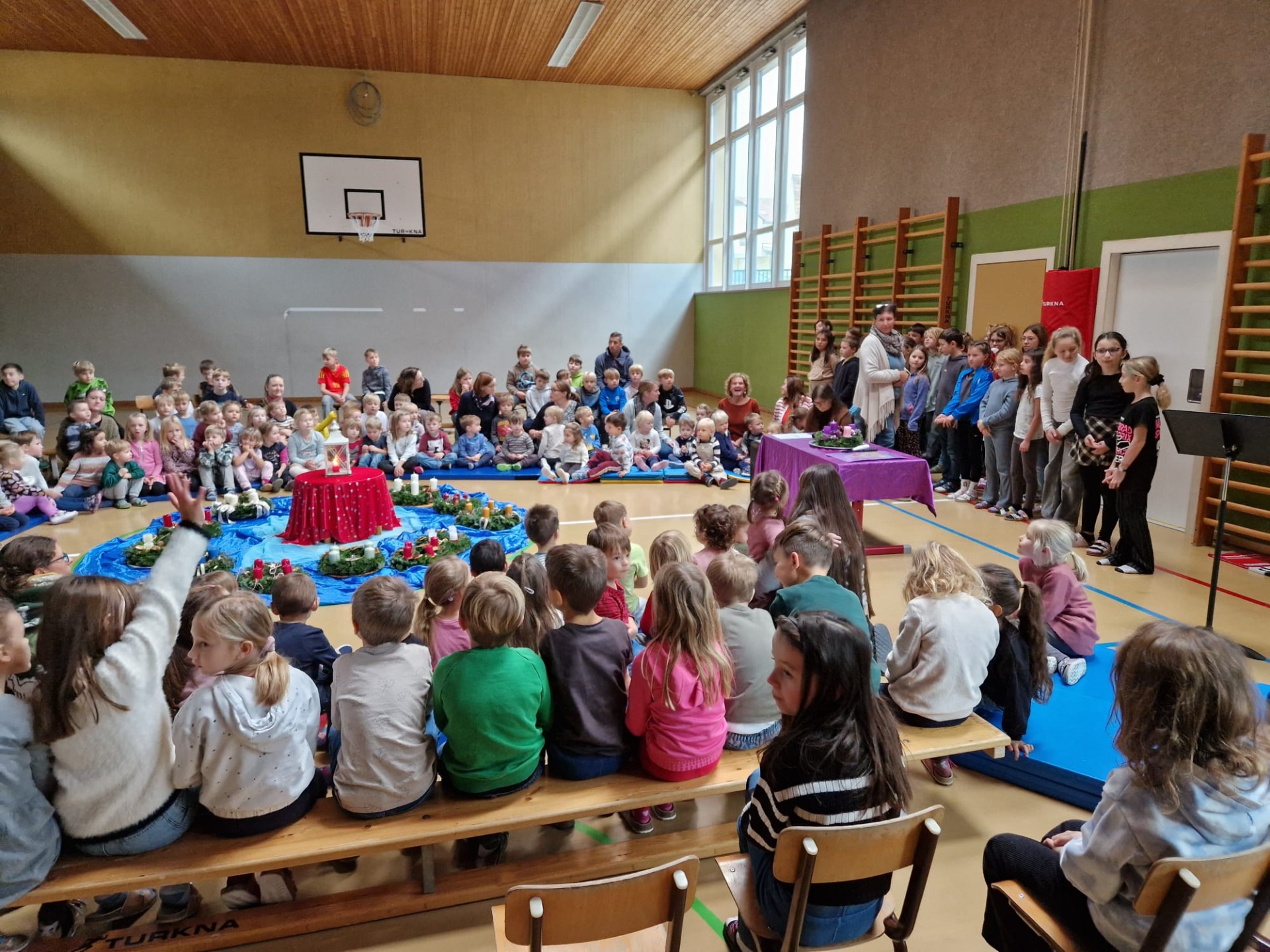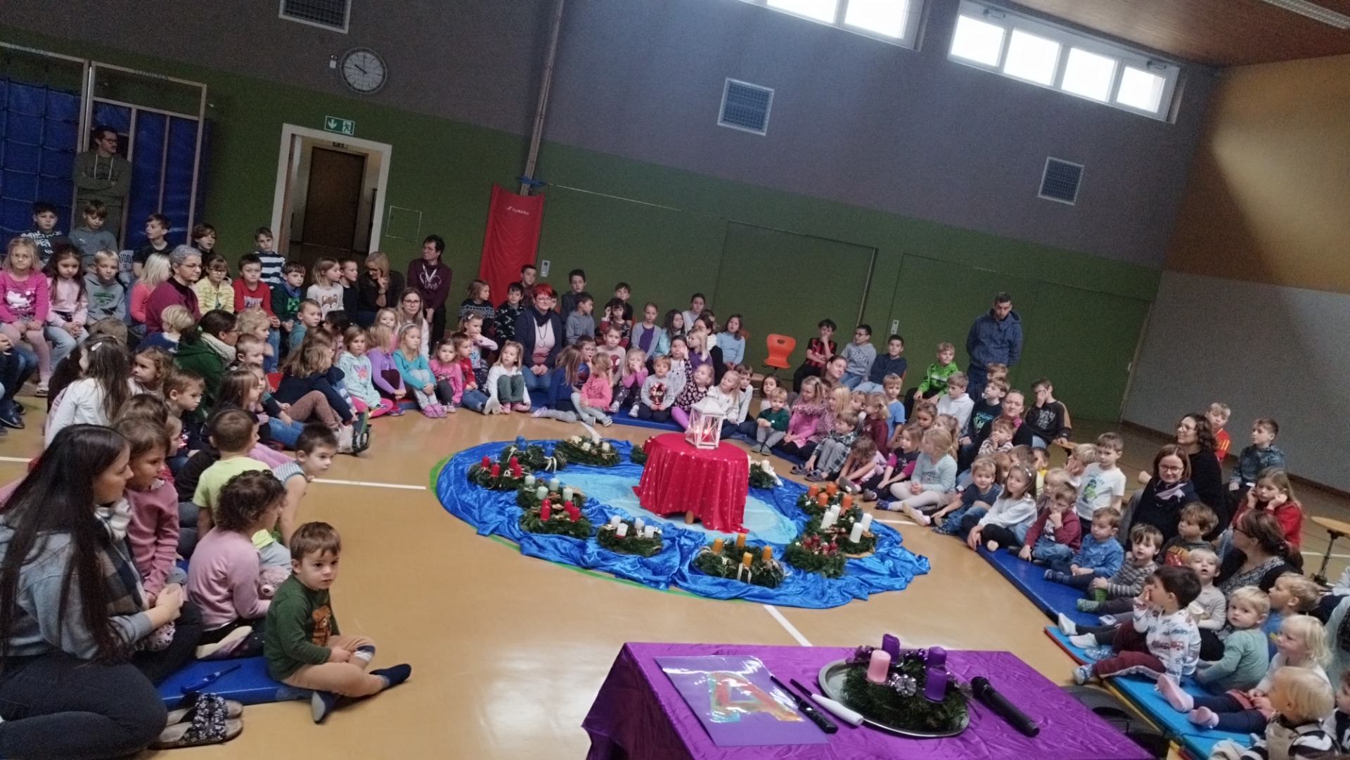 Am 26. November feierte die gesamte Schulgemeinschaft gemeinsam mit den Kindern und Pädagoginnen des Kindergartens den Beginn der Zeit des Wartens und der Vorfreude. Mit besinnlichen Liedern und Texten wurde die Adventkranzsegnung feierlich umrahmt. Unser Herr Pfarrer Wilson segnete die Adventkränze und der Chor stimmte in die Vor-Weihnachtszeit ein.