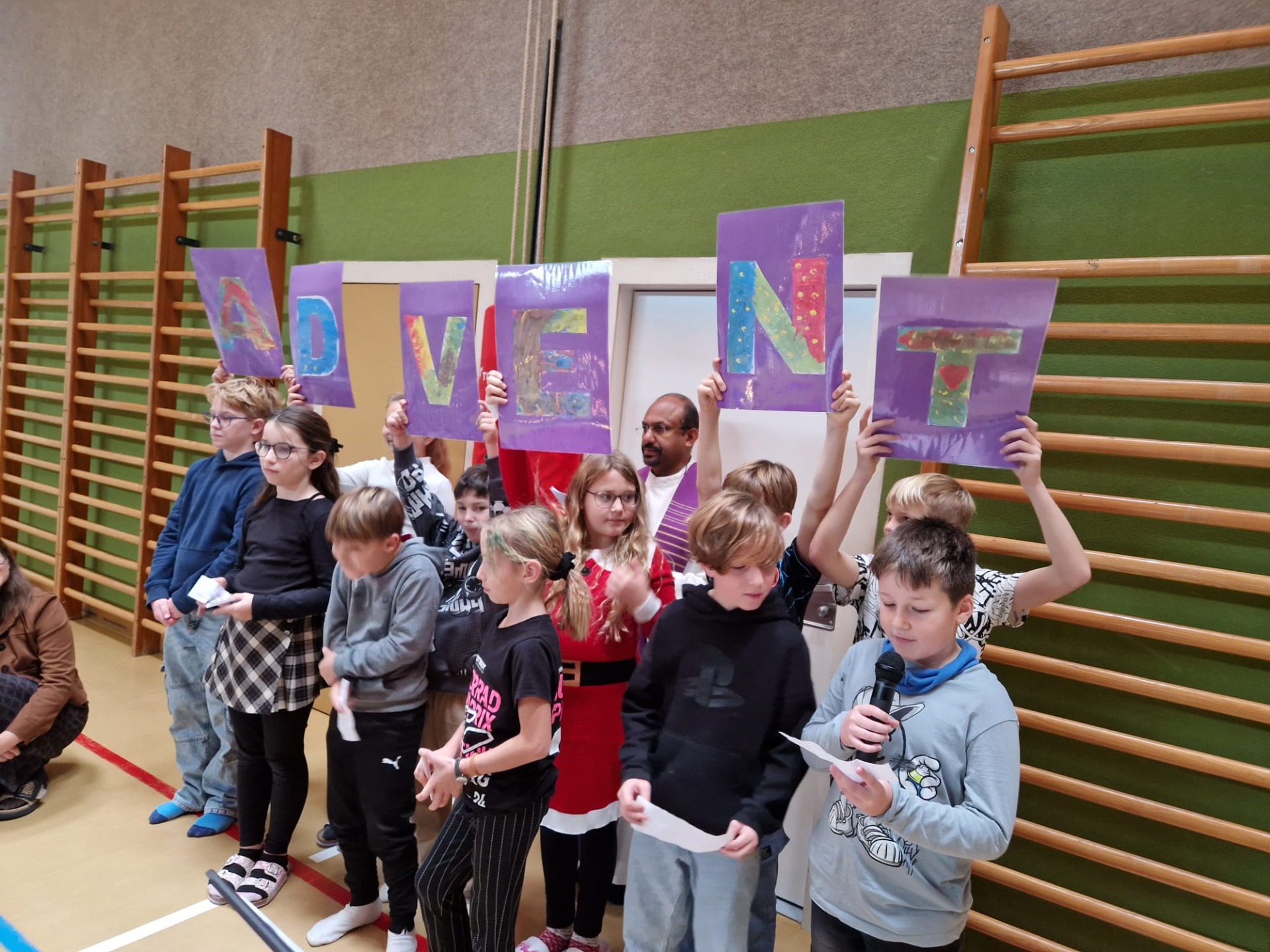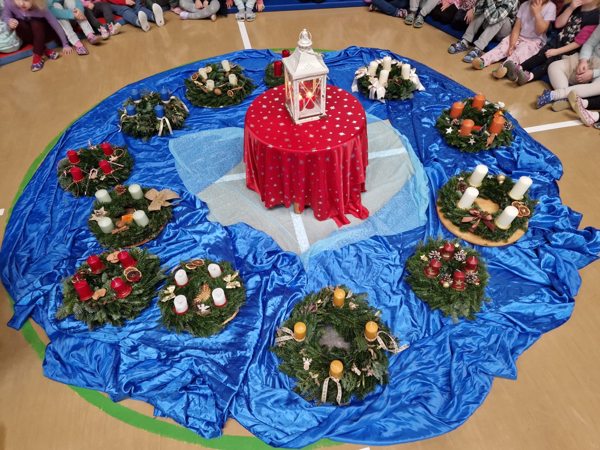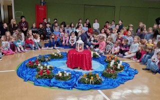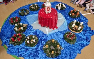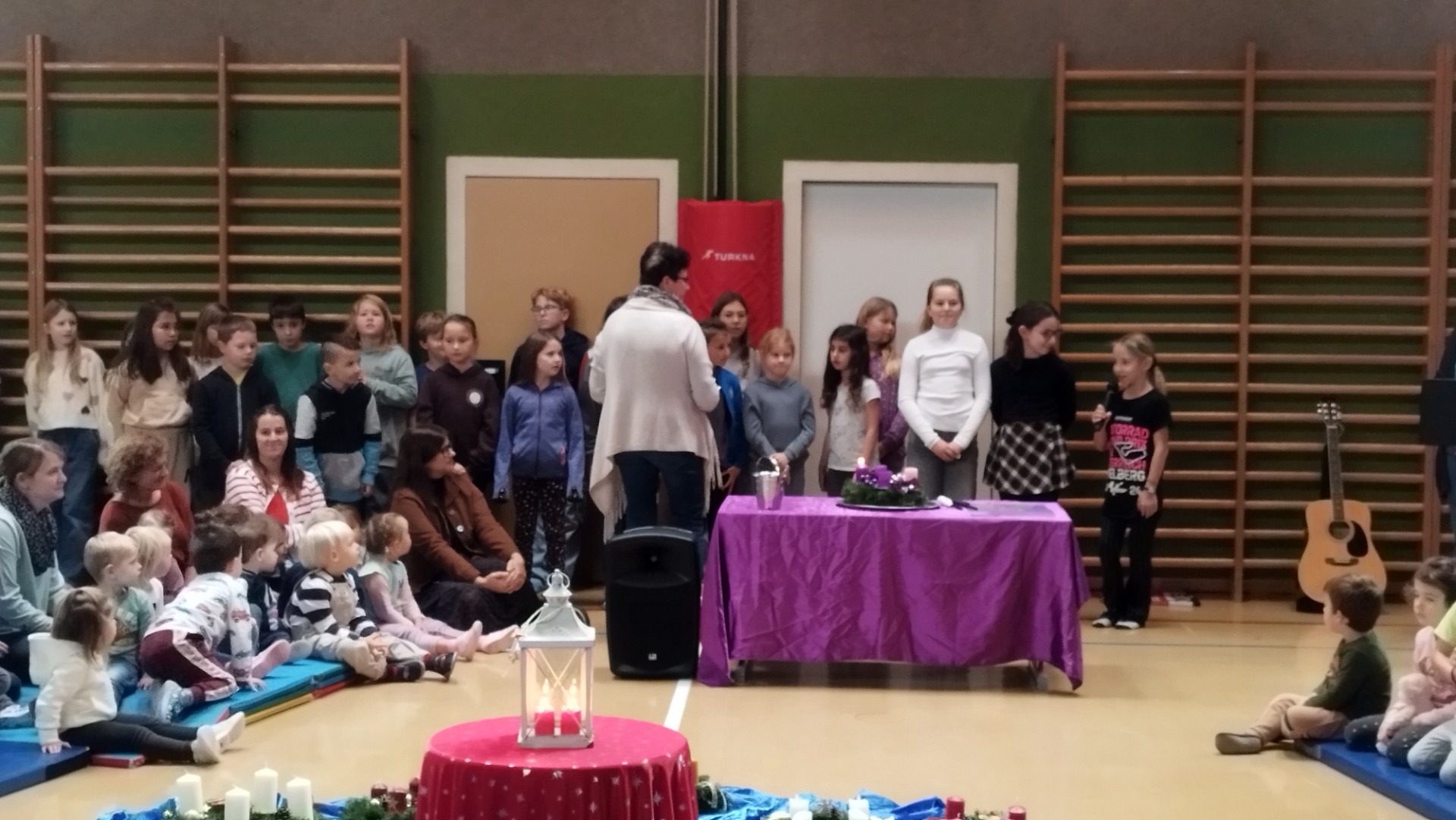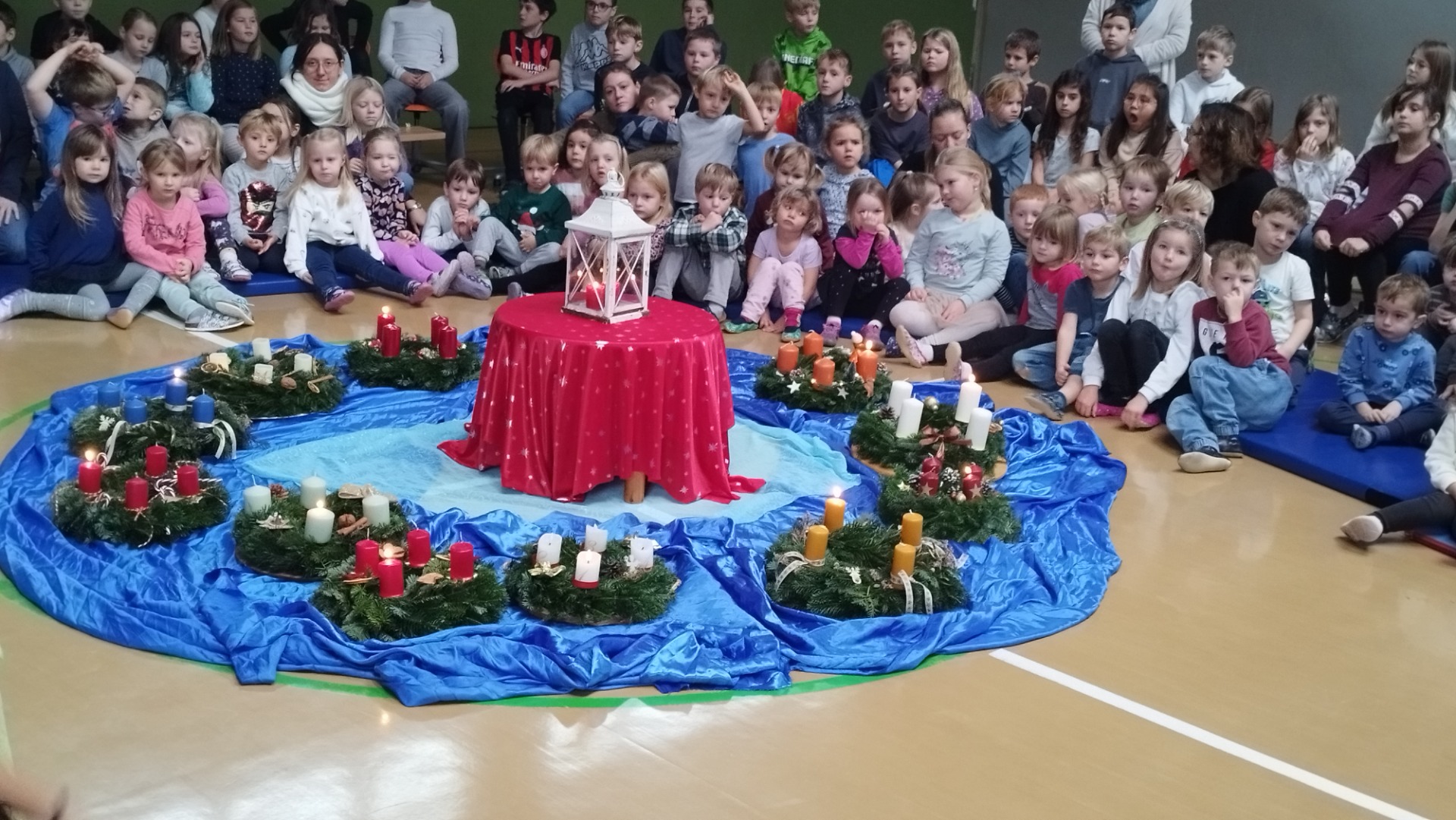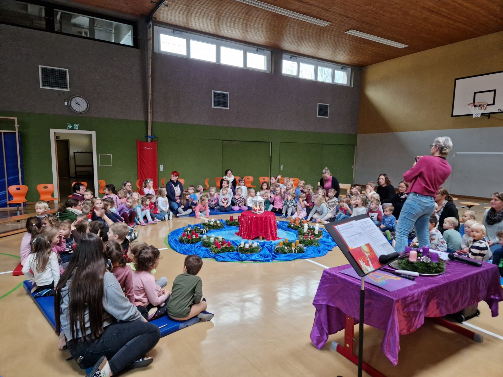 Am 26. November feierte die gesamte Schulgemeinschaft gemeinsam mit den Kindern und Pädagoginnen des Kindergartens den Beginn der Zeit des Wartens und der Vorfreude. Mit besinnlichen Liedern und Texten wurde die Adventkranzsegnung feierlich umrahmt. Unser Herr Pfarrer Wilson segnete die Adventkränze und der Chor stimmte in die Vor-Weihnachtszeit ein.