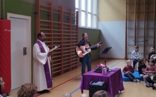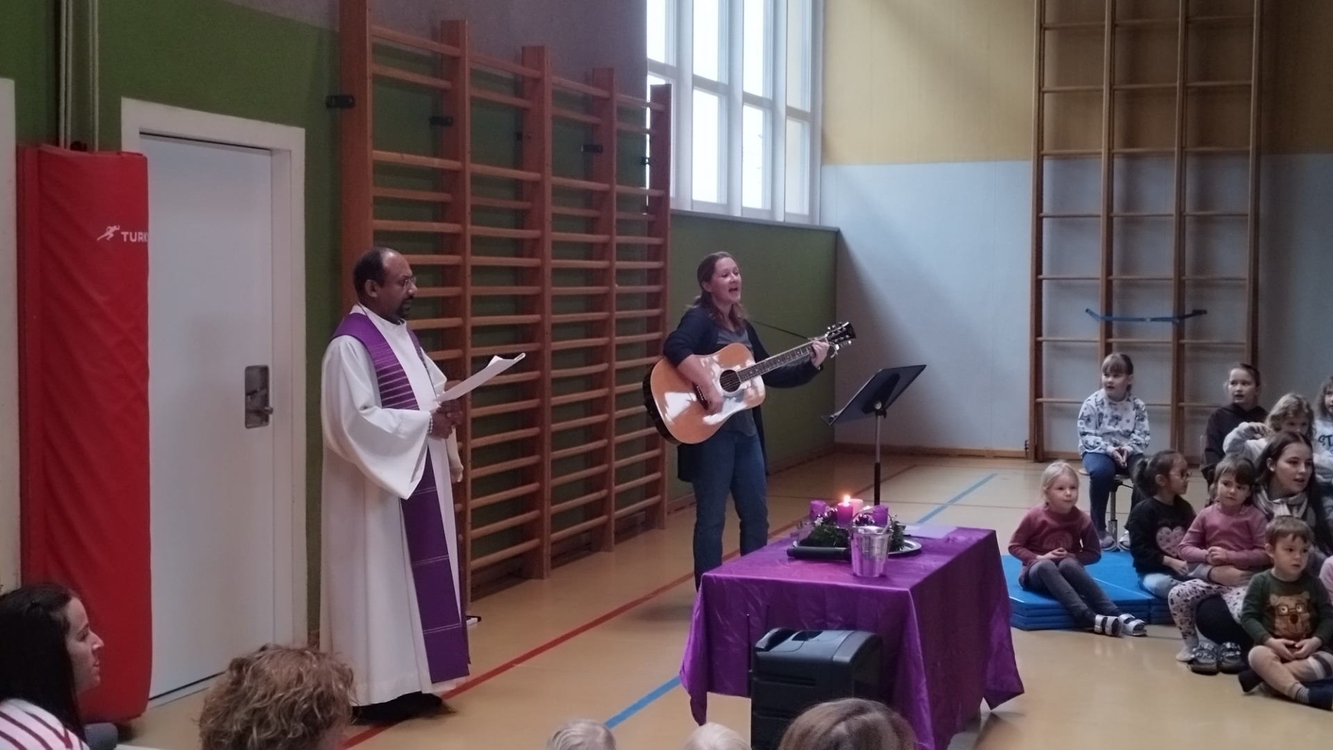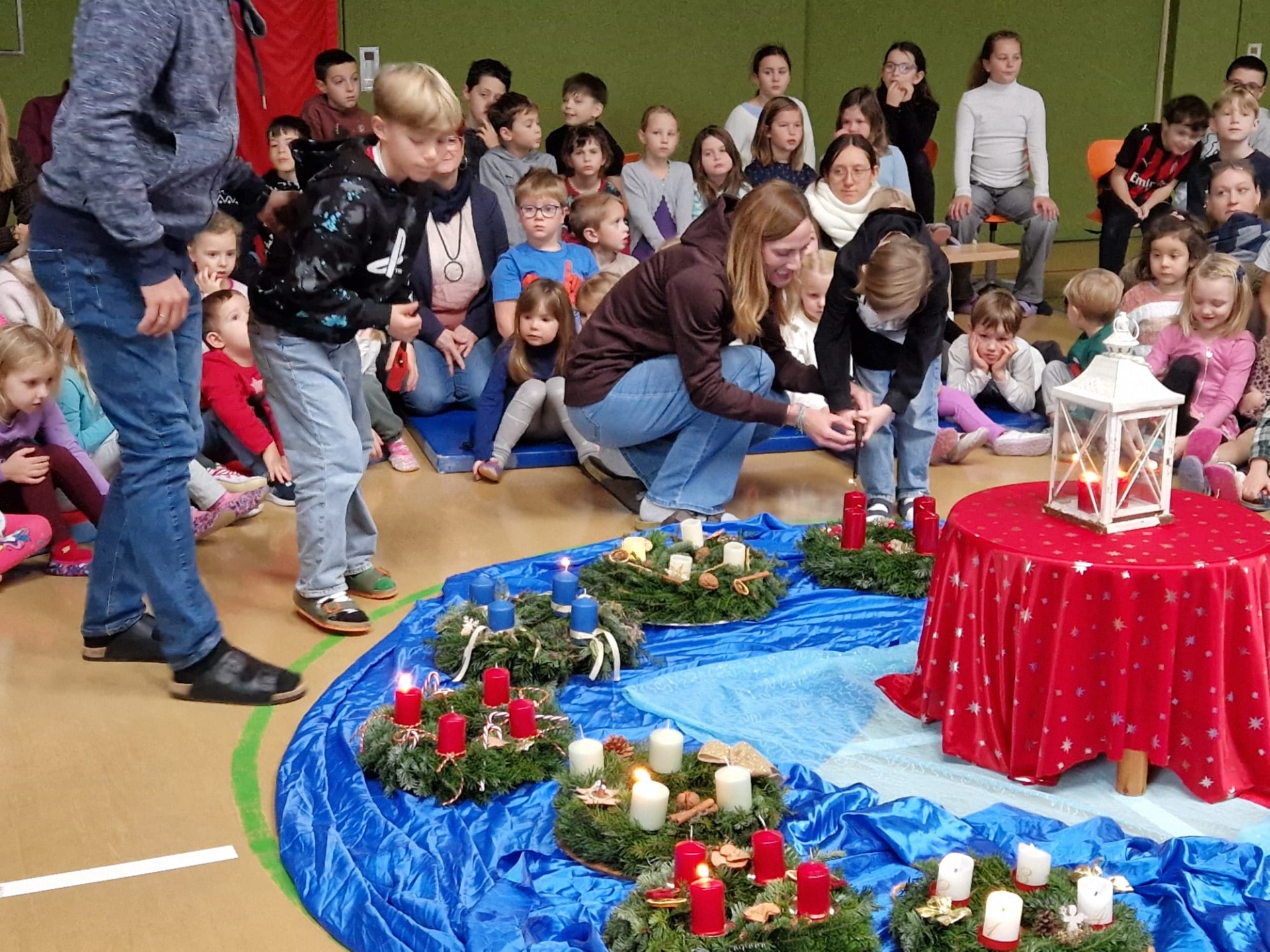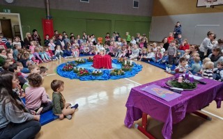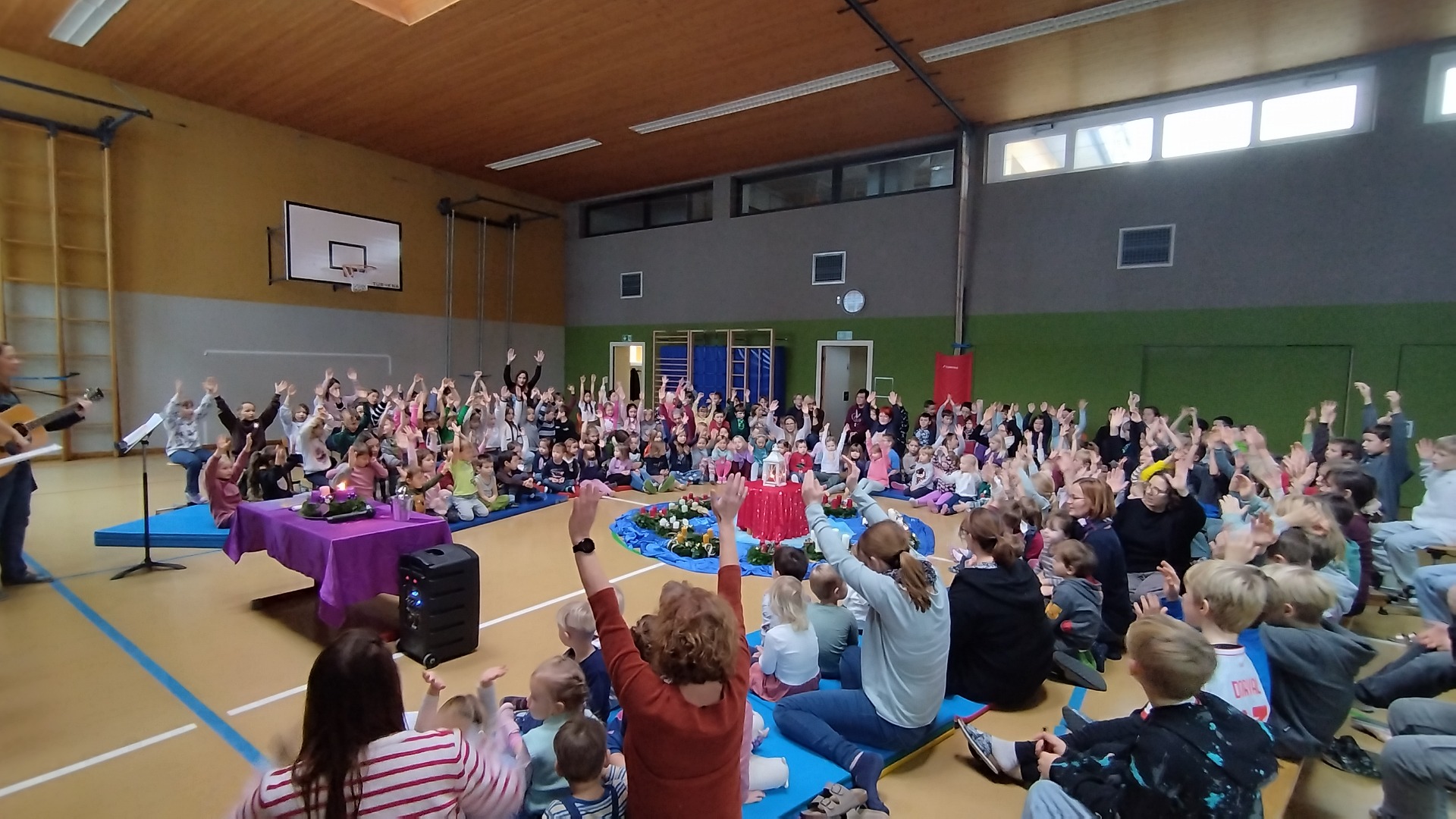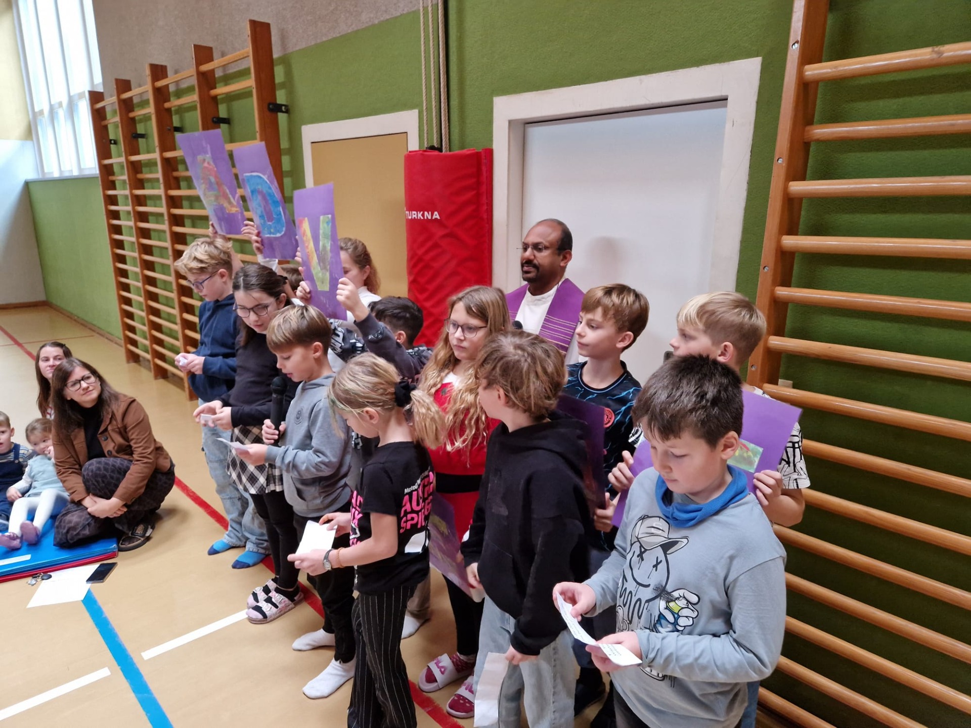 Am 26. November feierte die gesamte Schulgemeinschaft gemeinsam mit den Kindern und Pädagoginnen des Kindergartens den Beginn der Zeit des Wartens und der Vorfreude. Mit besinnlichen Liedern und Texten wurde die Adventkranzsegnung feierlich umrahmt. Unser Herr Pfarrer Wilson segnete die Adventkränze und der Chor stimmte in die Vor-Weihnachtszeit ein.