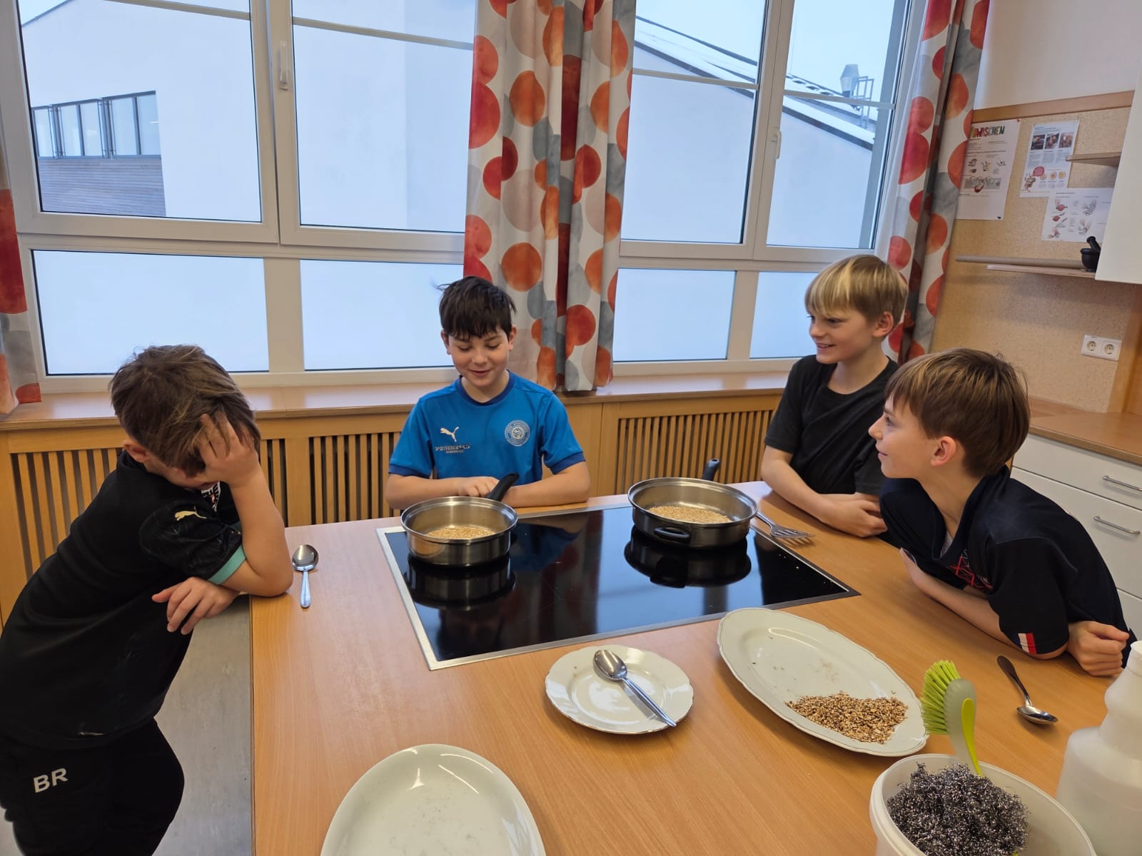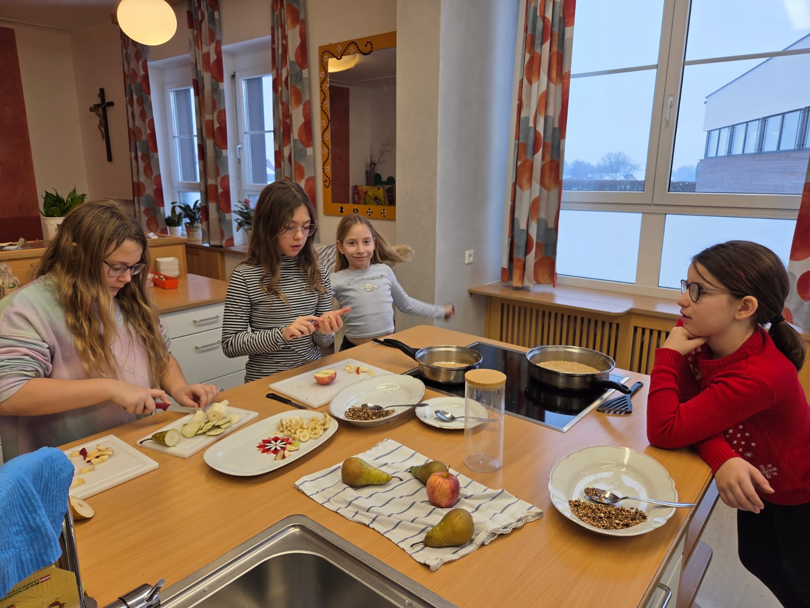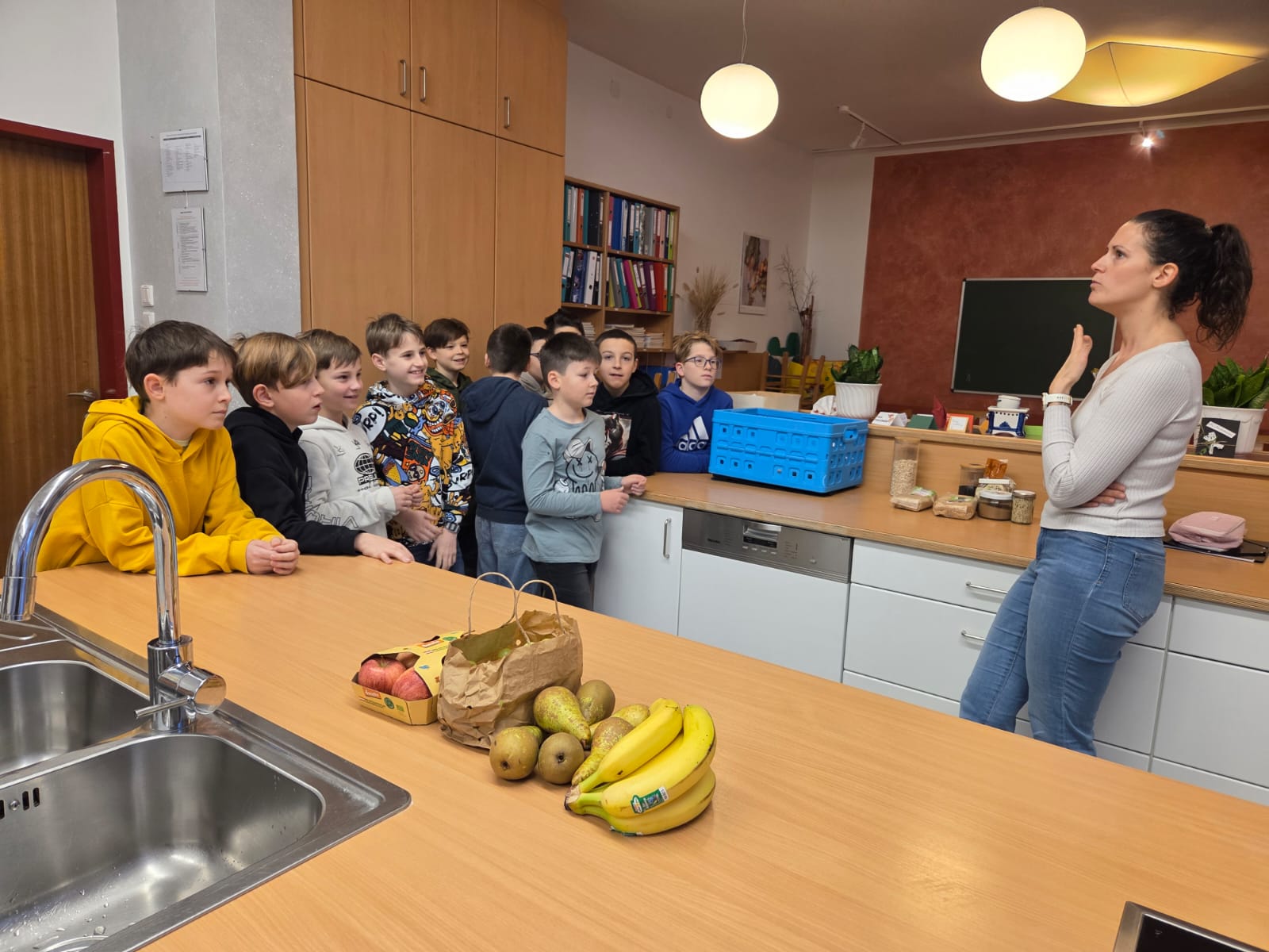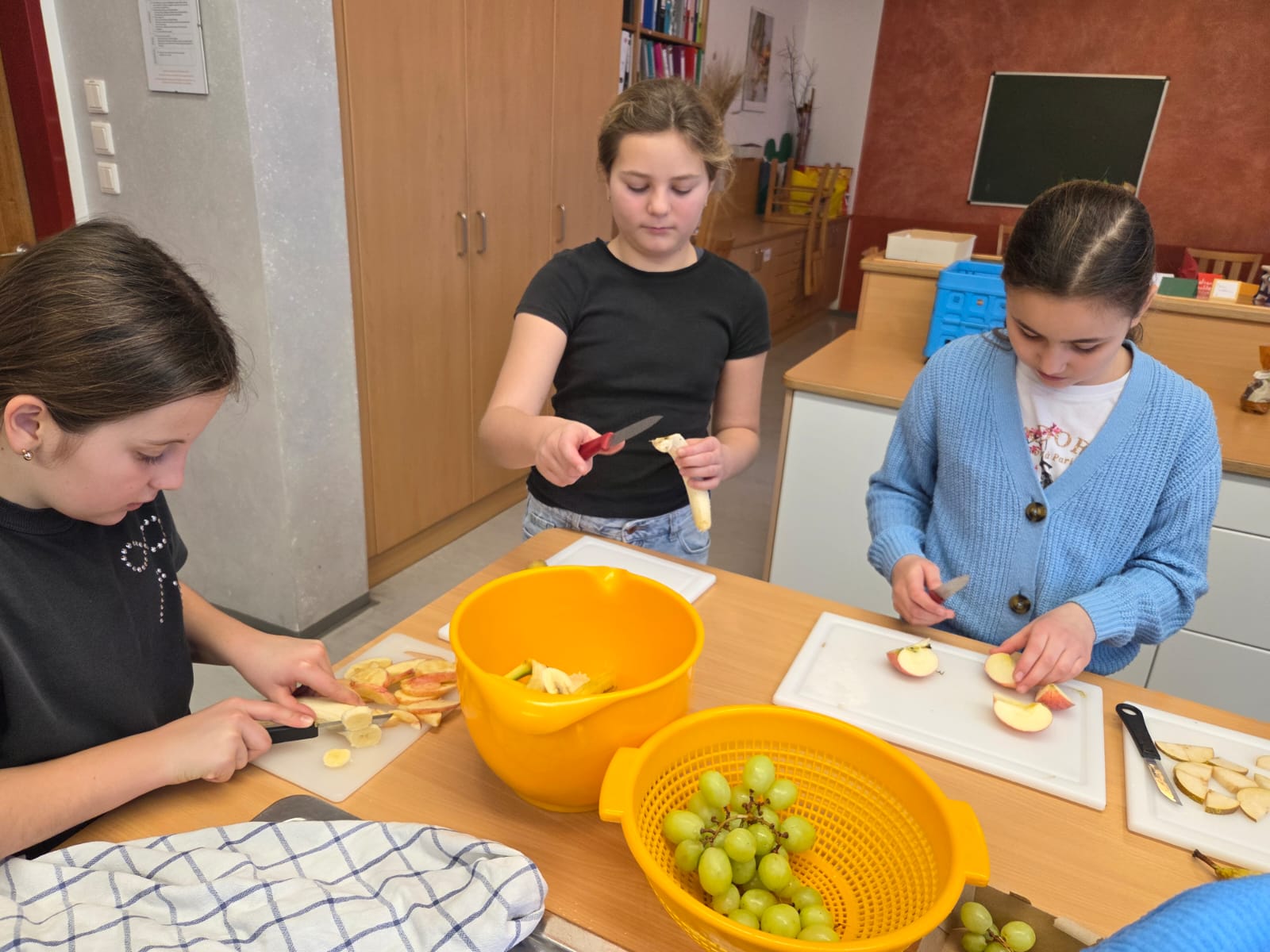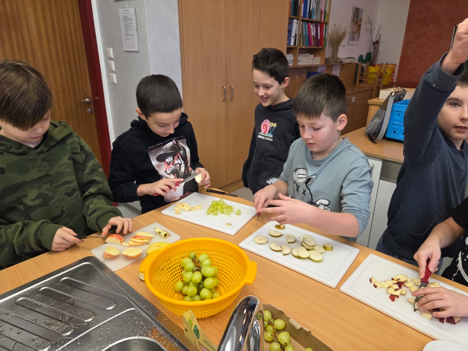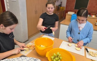 Heute durften die Kinder der 4. Klasse die Mittelschule besuchen. In zwei Gruppen bereiteten sie ein Müsli zu, das anschließend gemeinsam genüsslich verspeist wurde. Danach schnupperten die Kinder im großen Turnsaal in das Ballsport-ABC hinein.