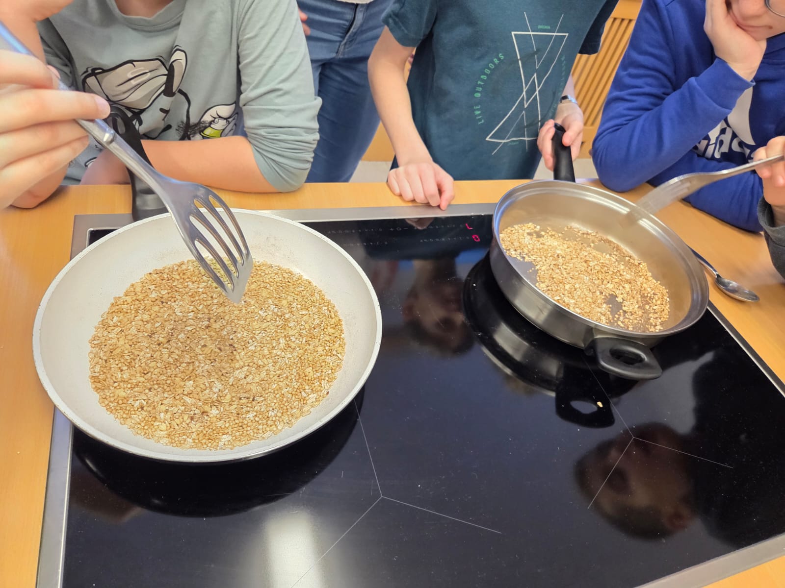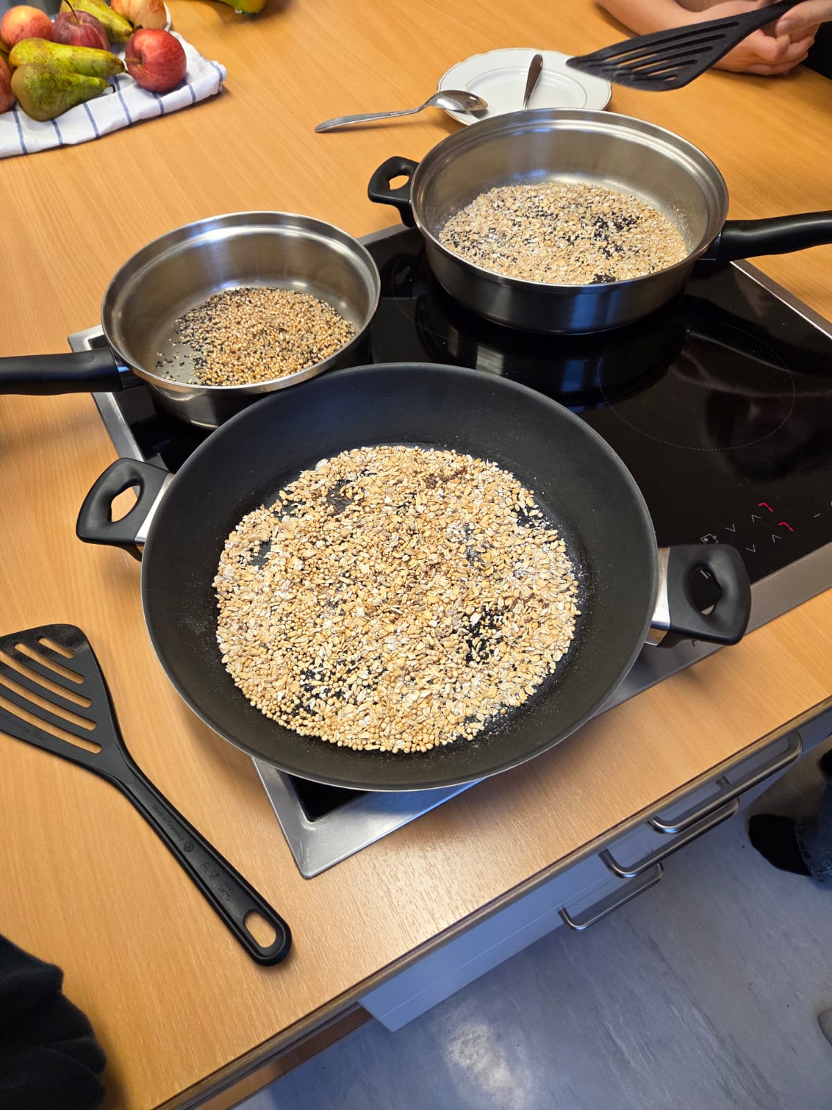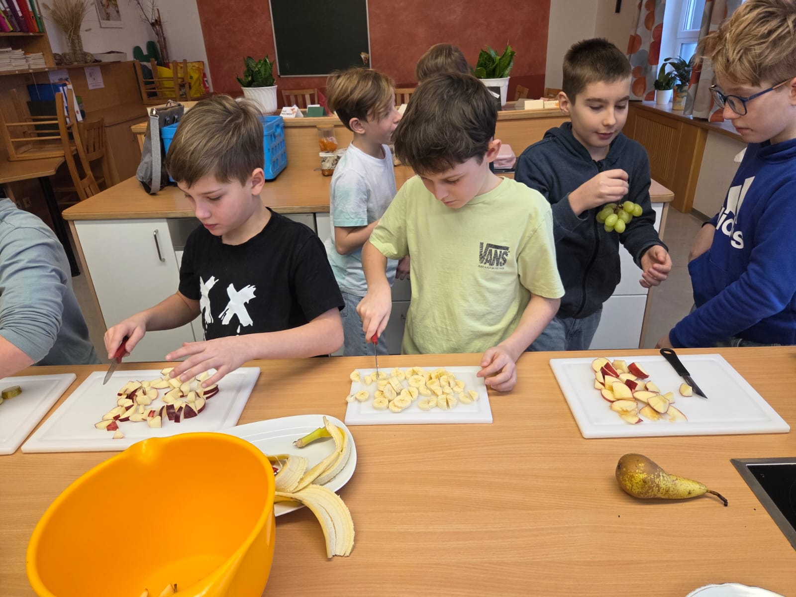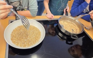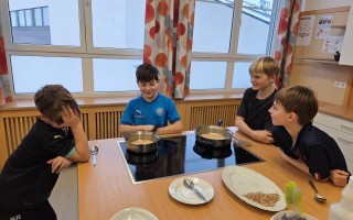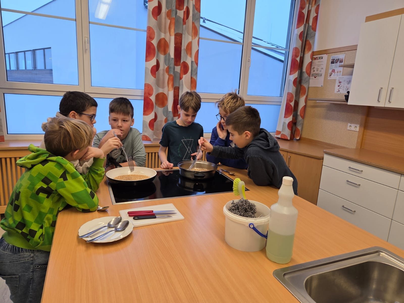 Heute durften die Kinder der 4. Klasse die Mittelschule besuchen. In zwei Gruppen bereiteten sie ein Müsli zu, das anschließend gemeinsam genüsslich verspeist wurde. Danach schnupperten die Kinder im großen Turnsaal in das Ballsport-ABC hinein.