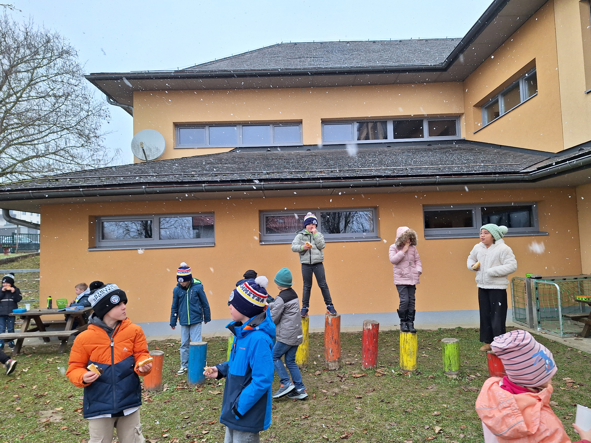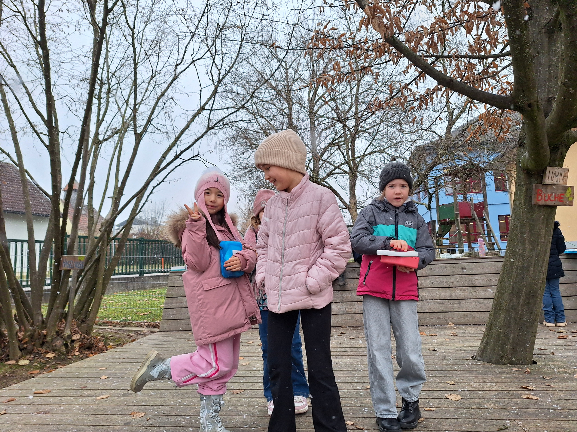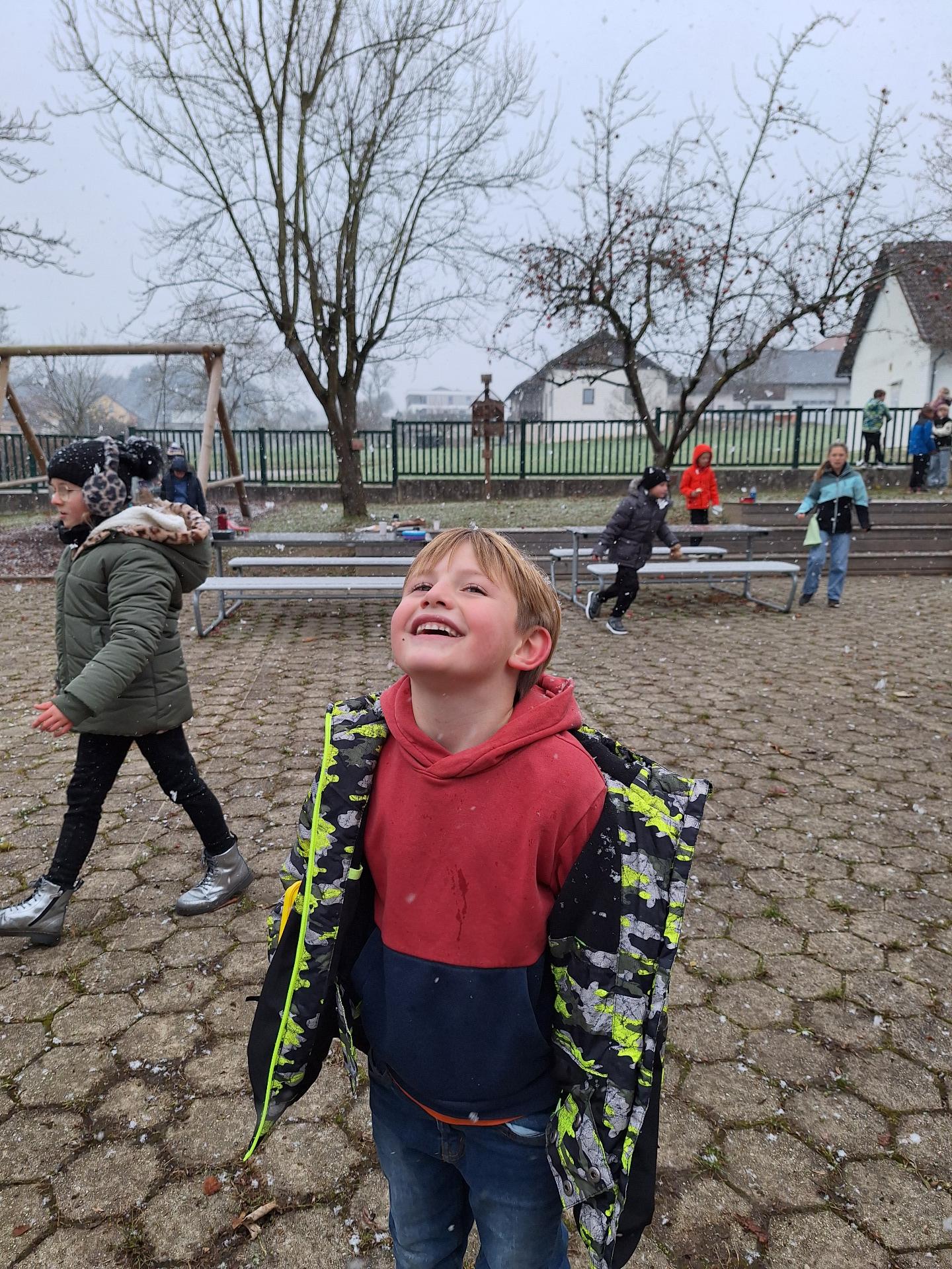 In der großen Pause wurden die dicken Schnneeflocken von den Kindern bestaunt und die unendliche Kinderfreude stand ihnen ins Gesicht geschrieben!