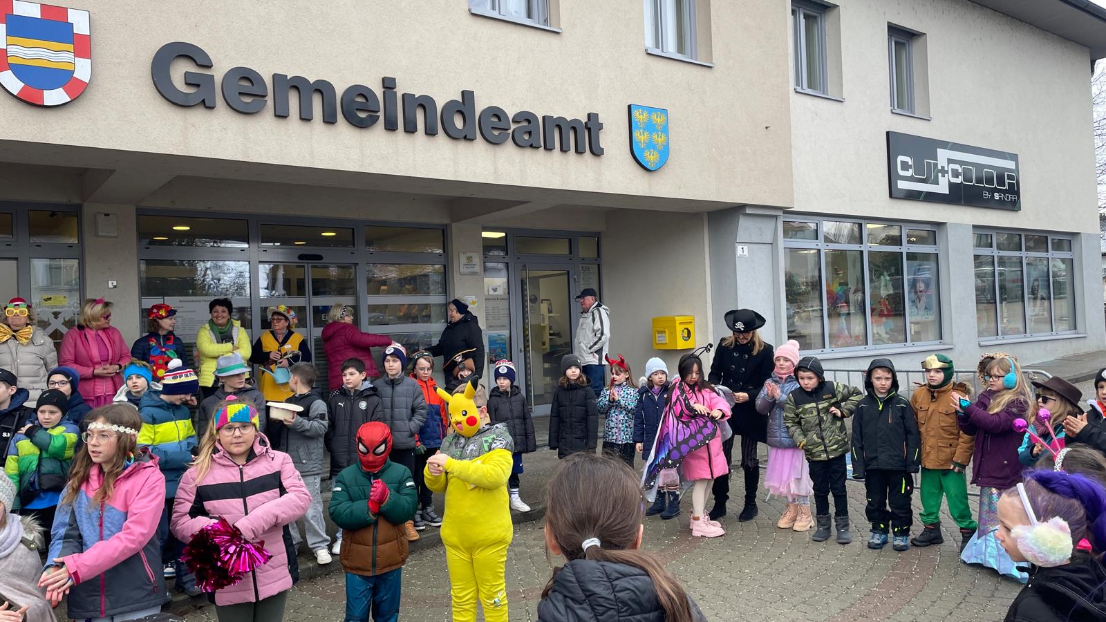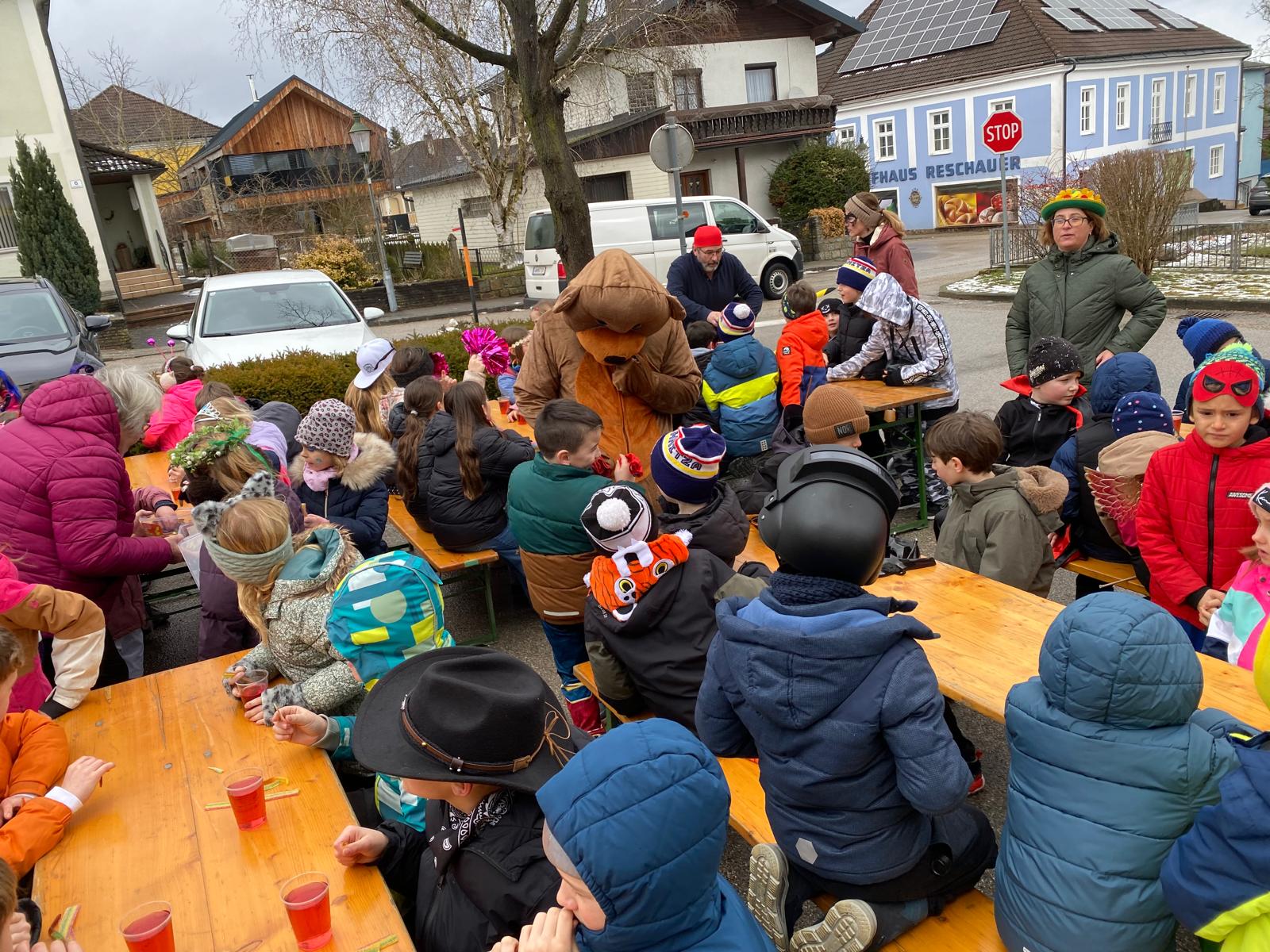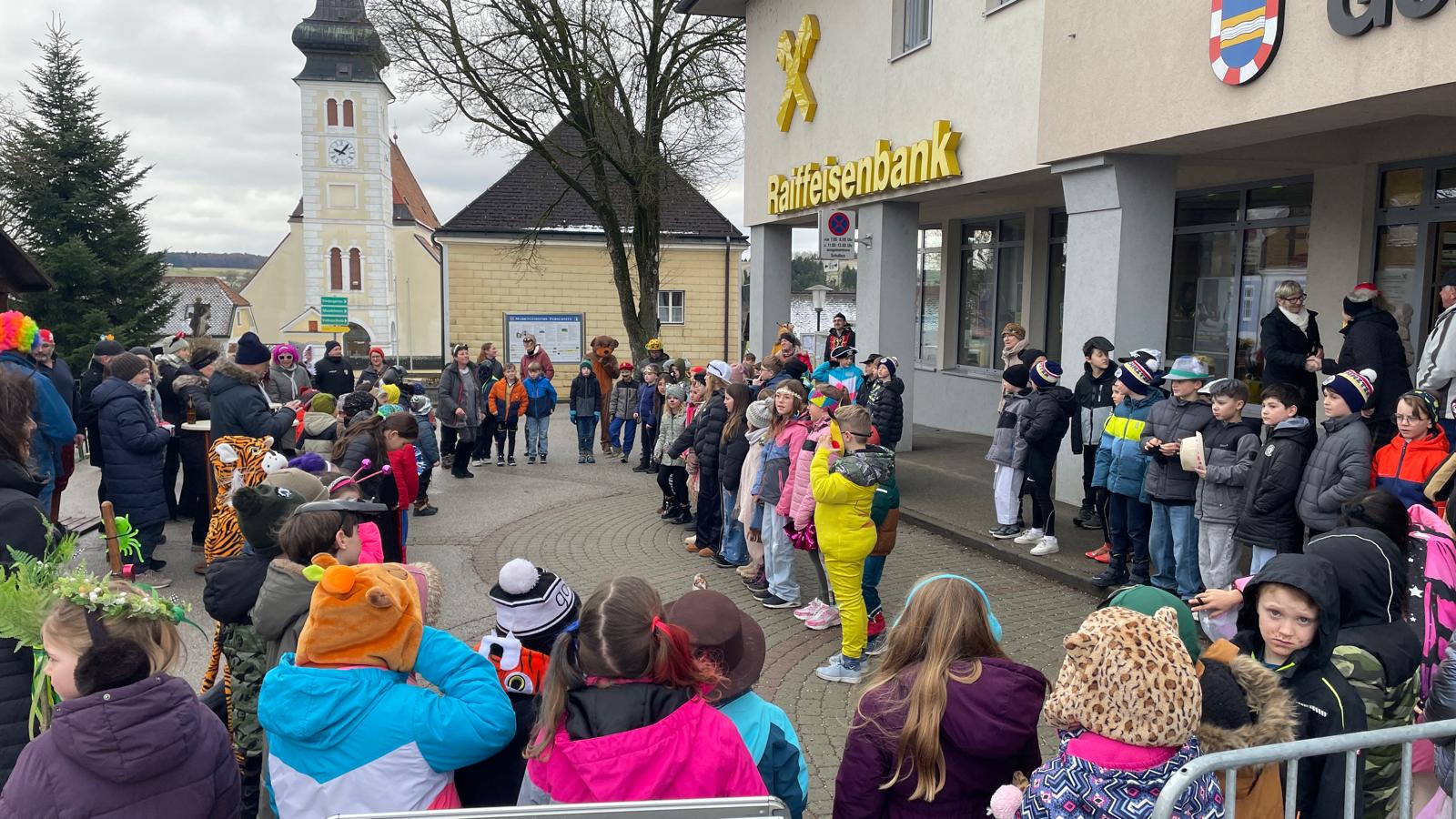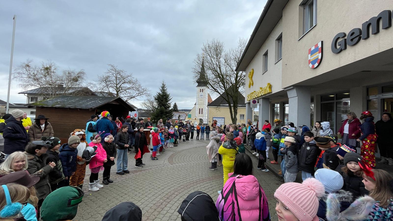 Nach einigen lustigen Stunden in der Volksschule begaben sich alle Kinder und Erwachsenen auf den Marktplatz, wo der Wirtschaftsbund zu einem Treffen einlud.