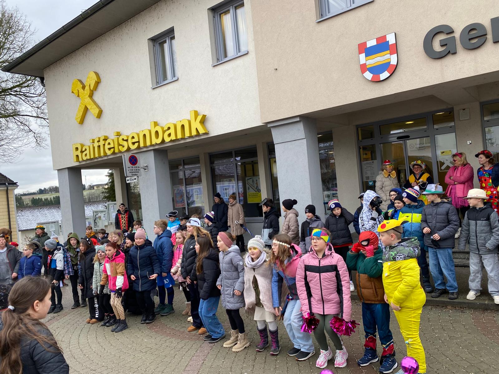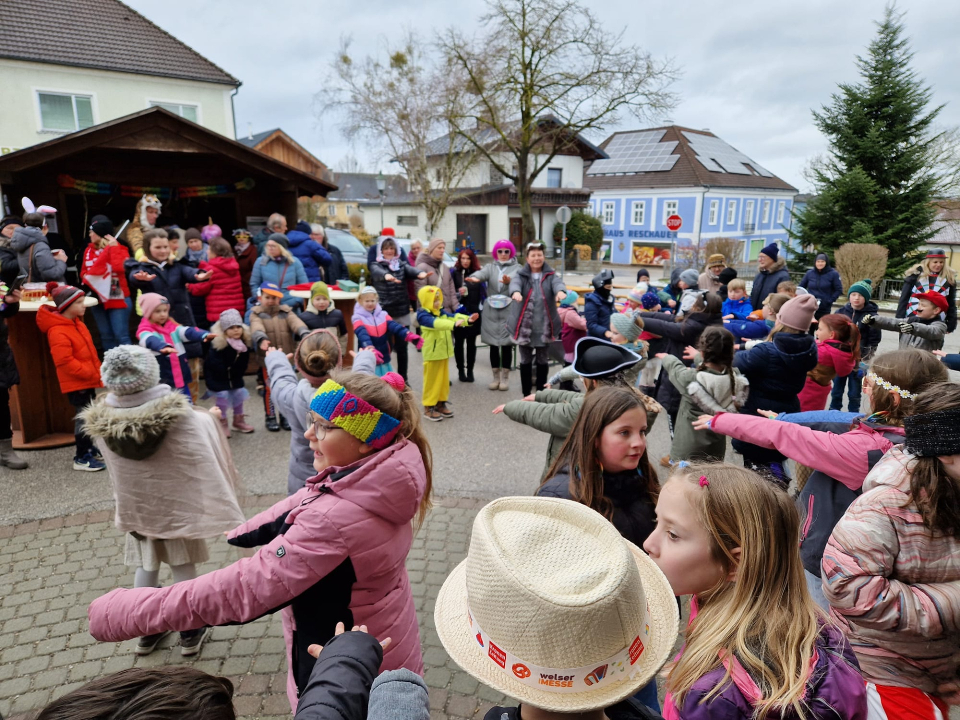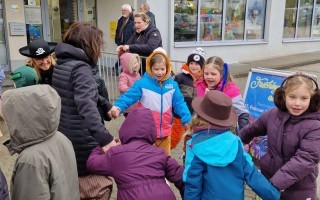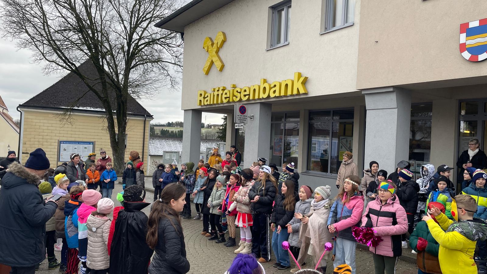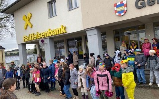 Nach einigen lustigen Stunden in der Volksschule begaben sich alle Kinder und Erwachsenen auf den Marktplatz, wo der Wirtschaftsbund zu einem Treffen einlud.