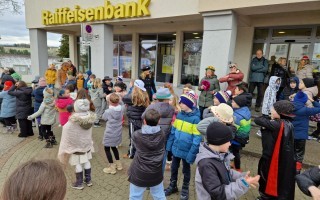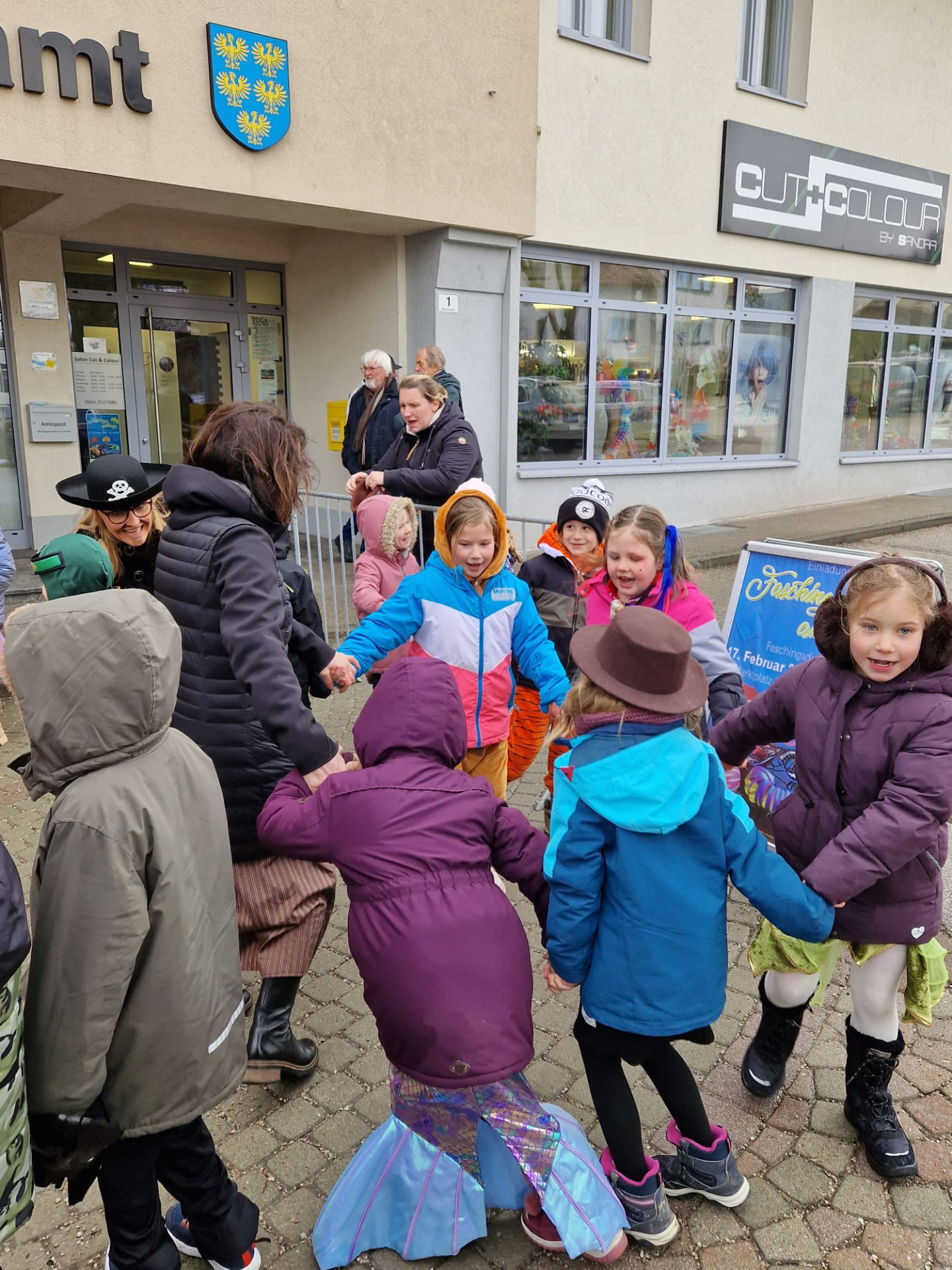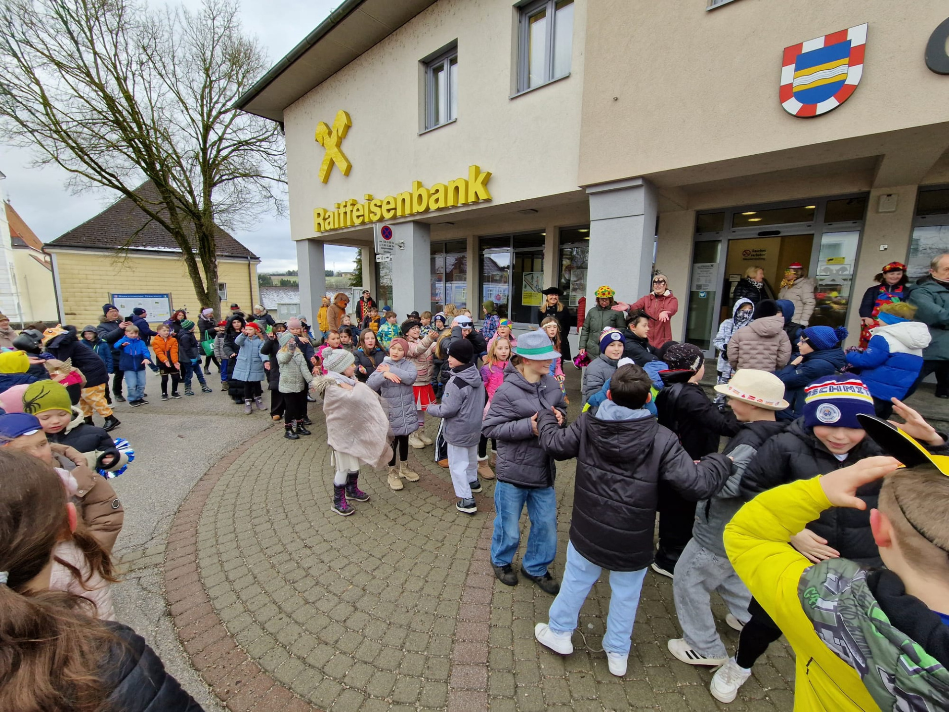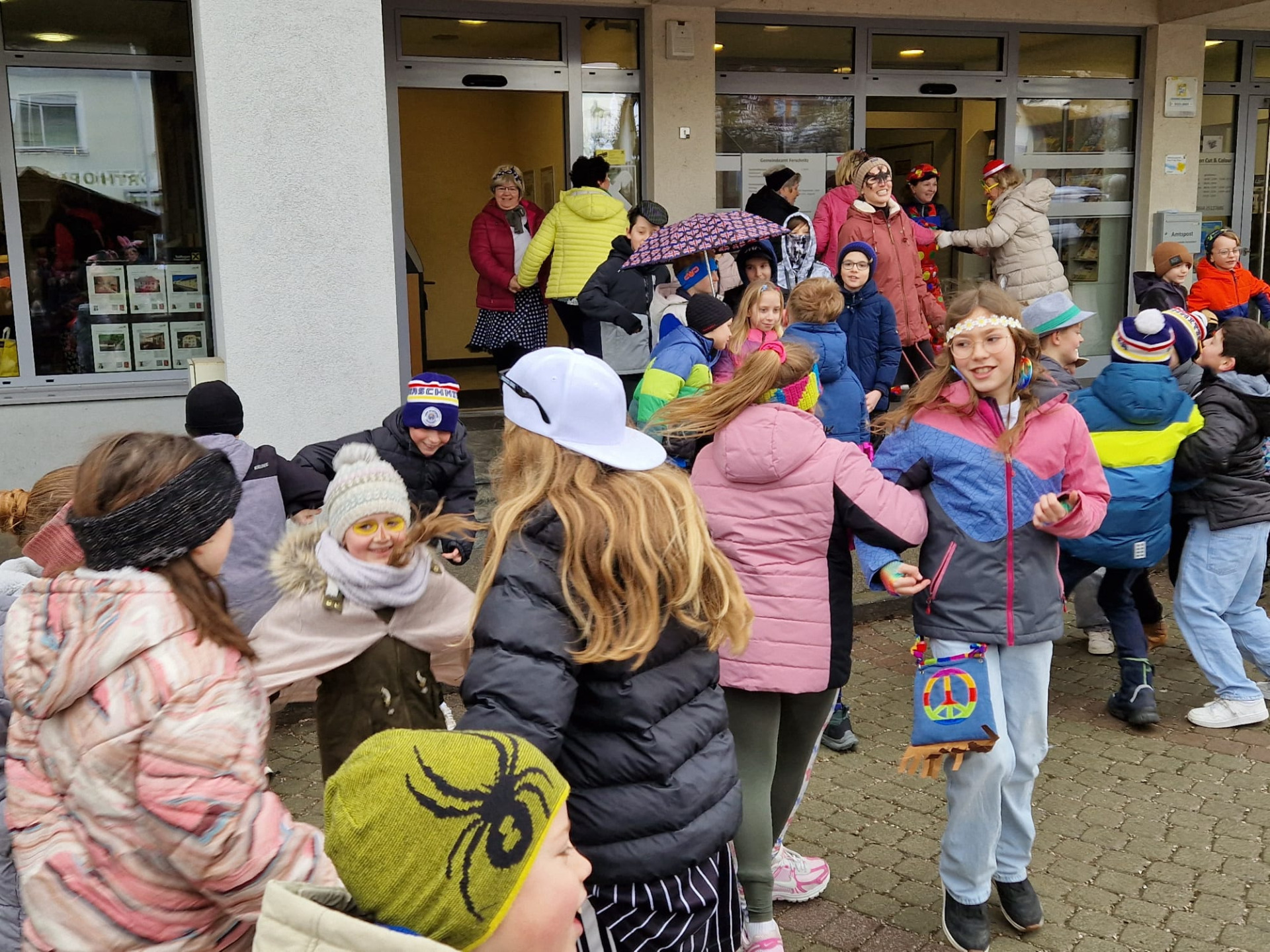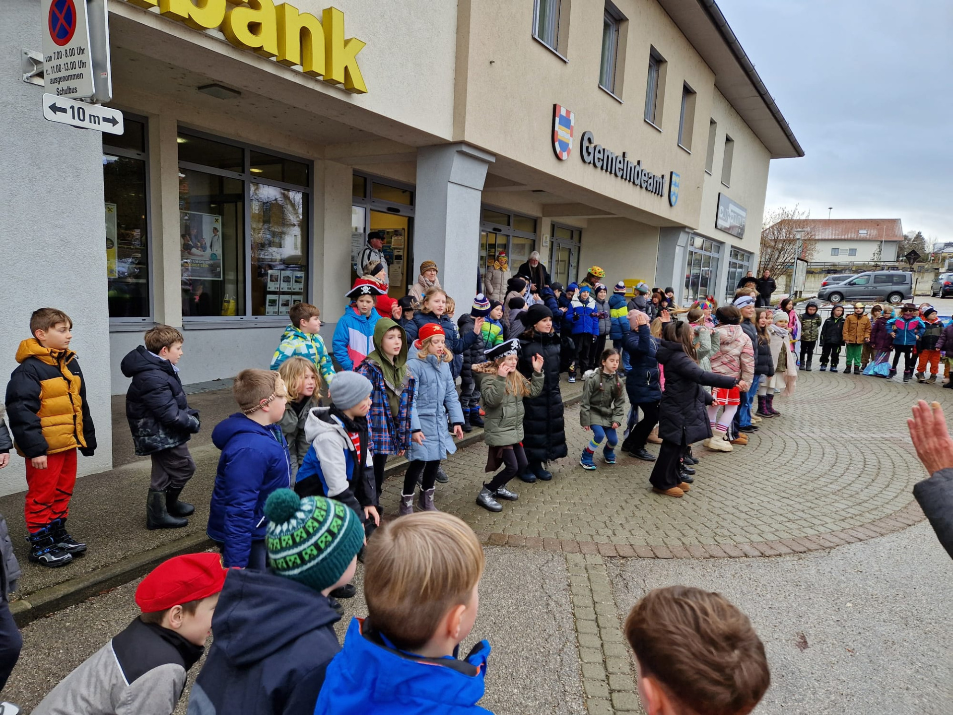Nach einigen lustigen Stunden in der Volksschule begaben sich alle Kinder und Erwachsenen auf den Marktplatz, wo der Wirtschaftsbund zu einem Treffen einlud.
