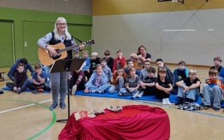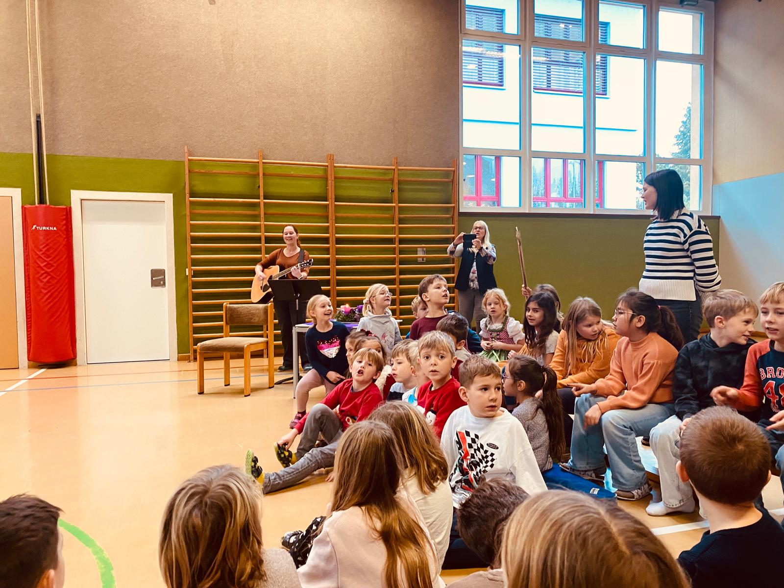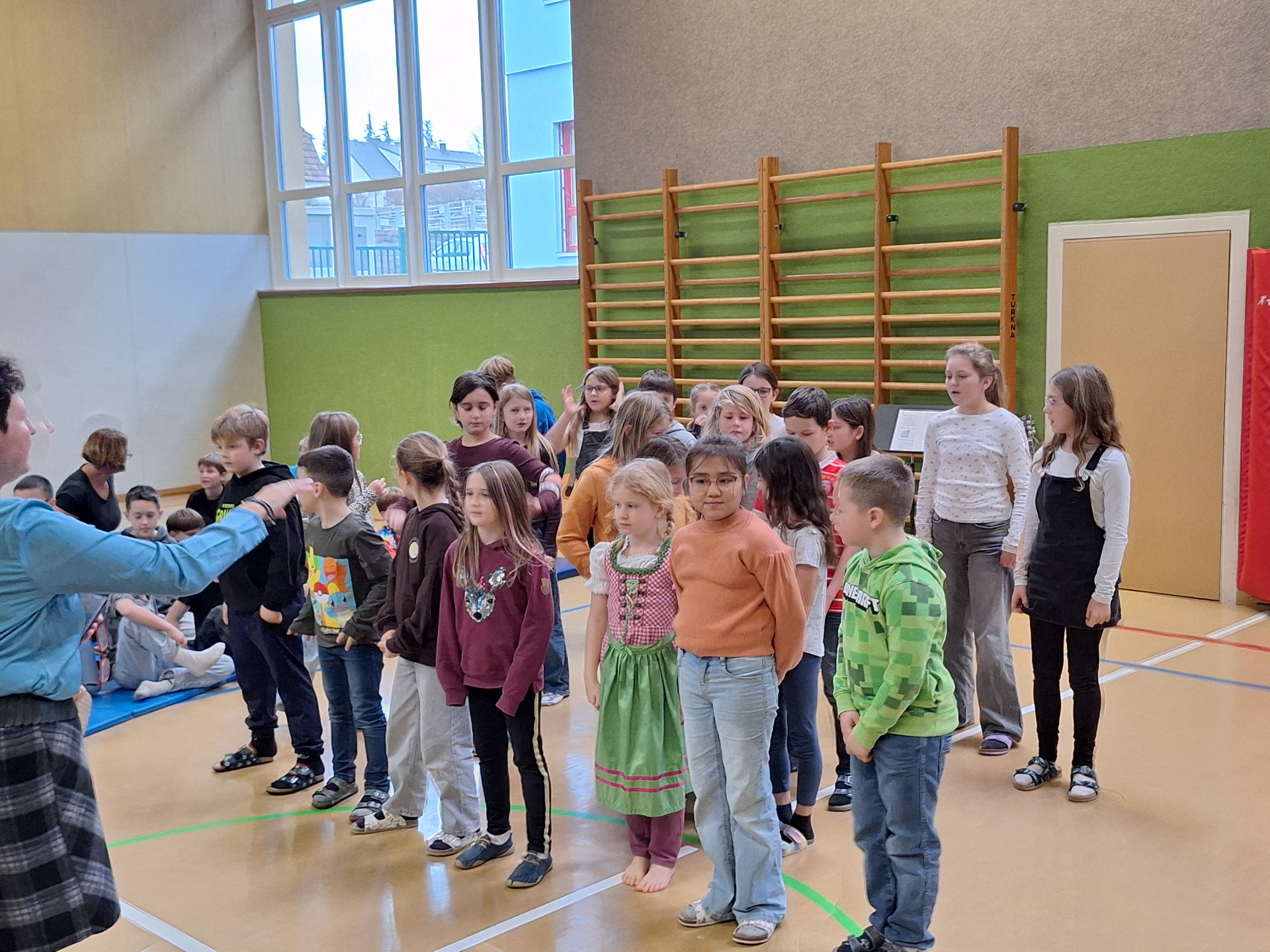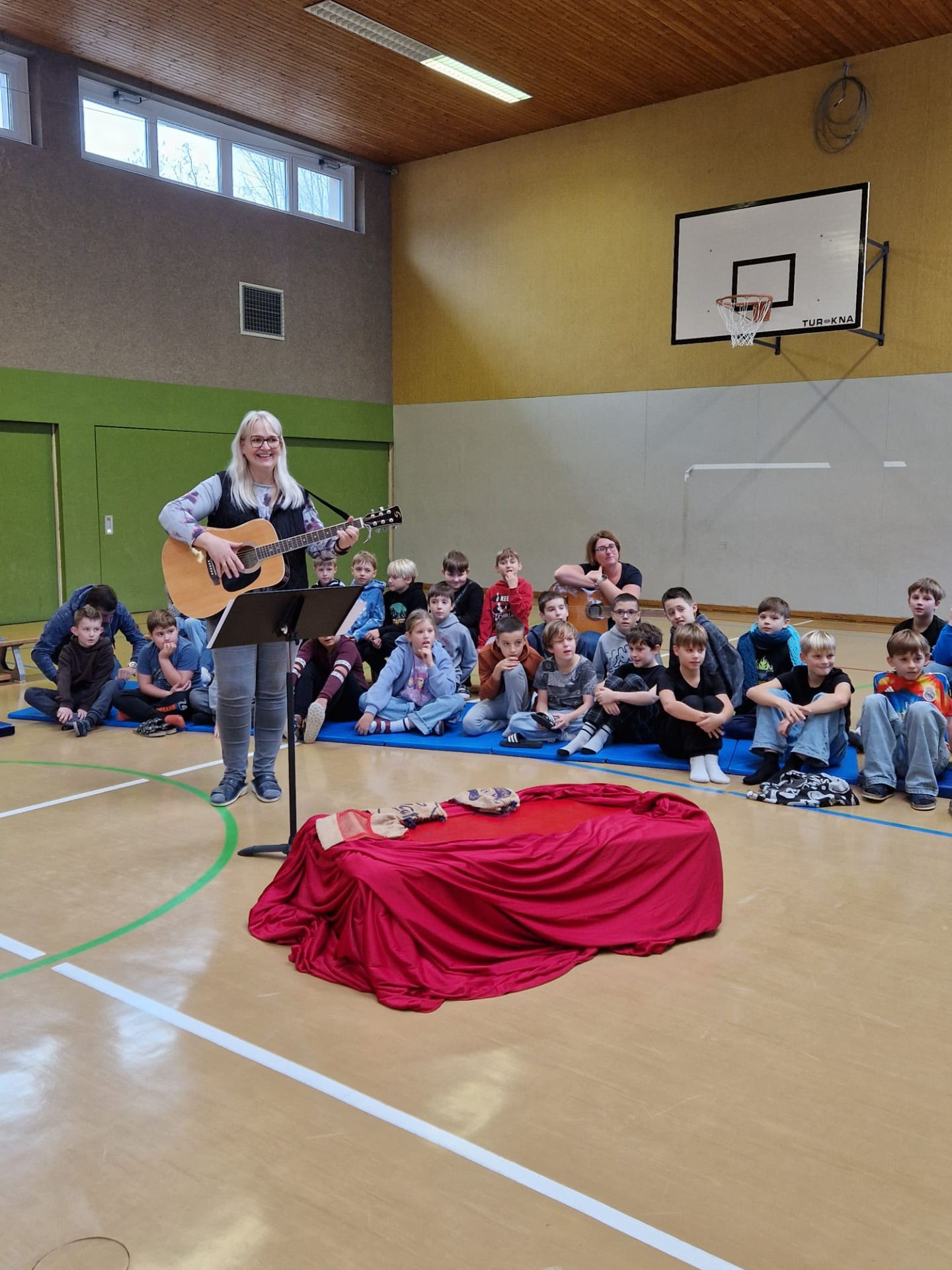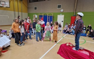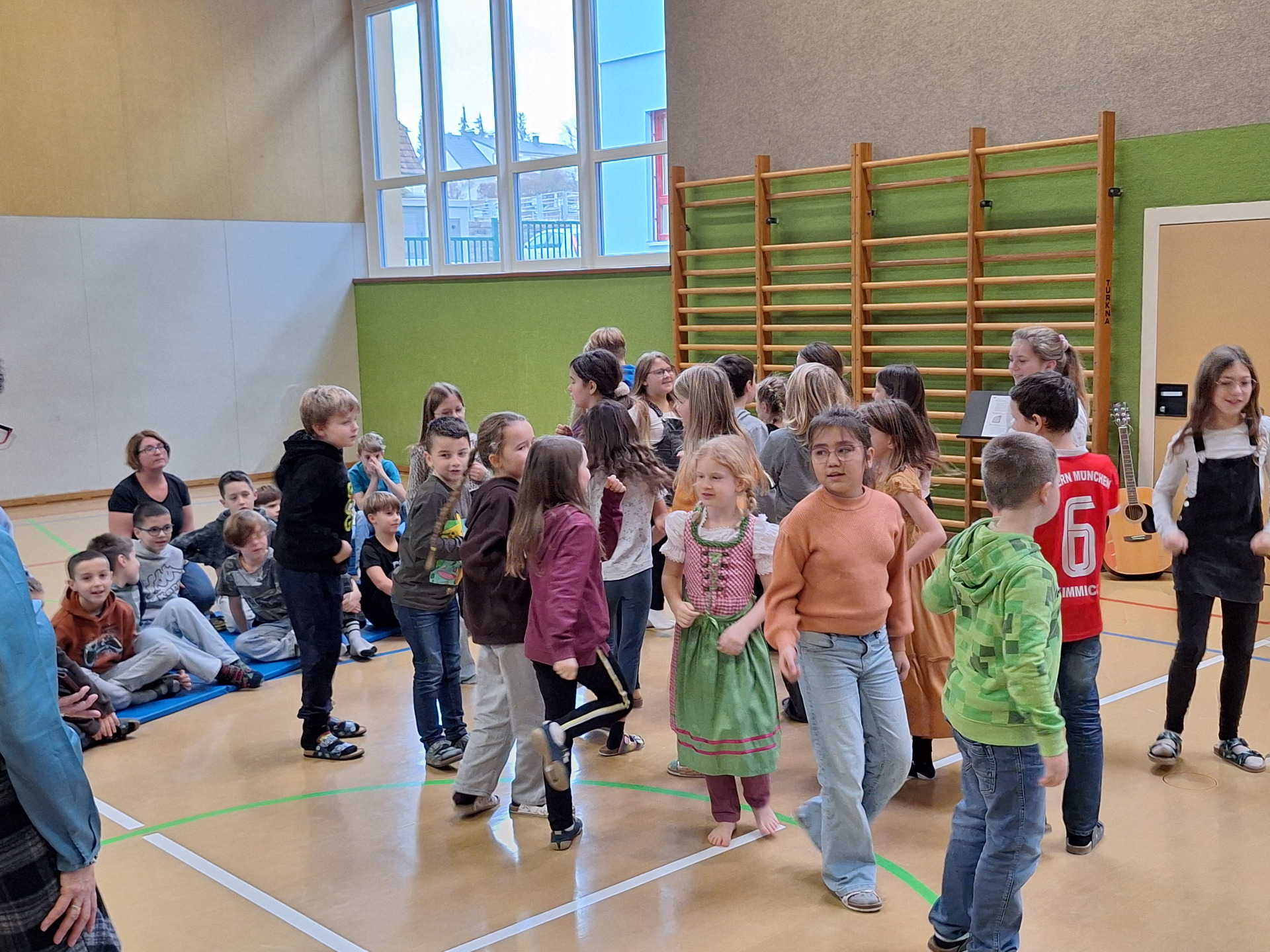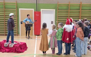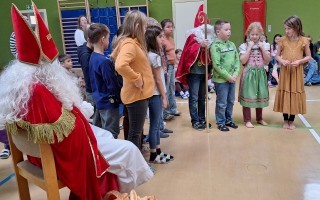Nach einem bunten Reigen von Gedichten, szenischen Spielen und Liedern richtete unser Nikolaus sehr lobende, stärkende und aufbauende Worte an die Kinder.