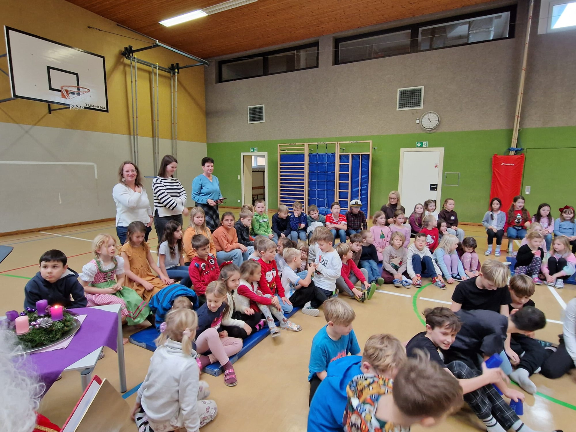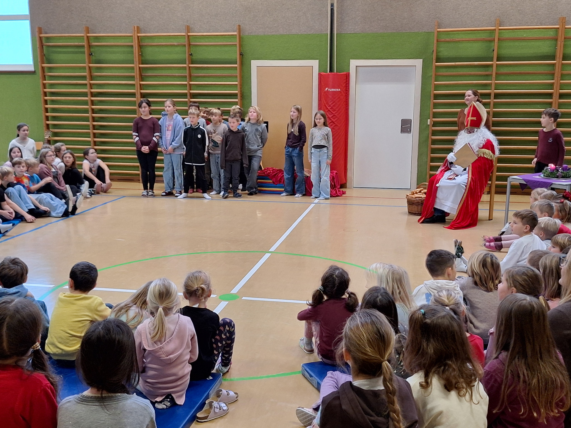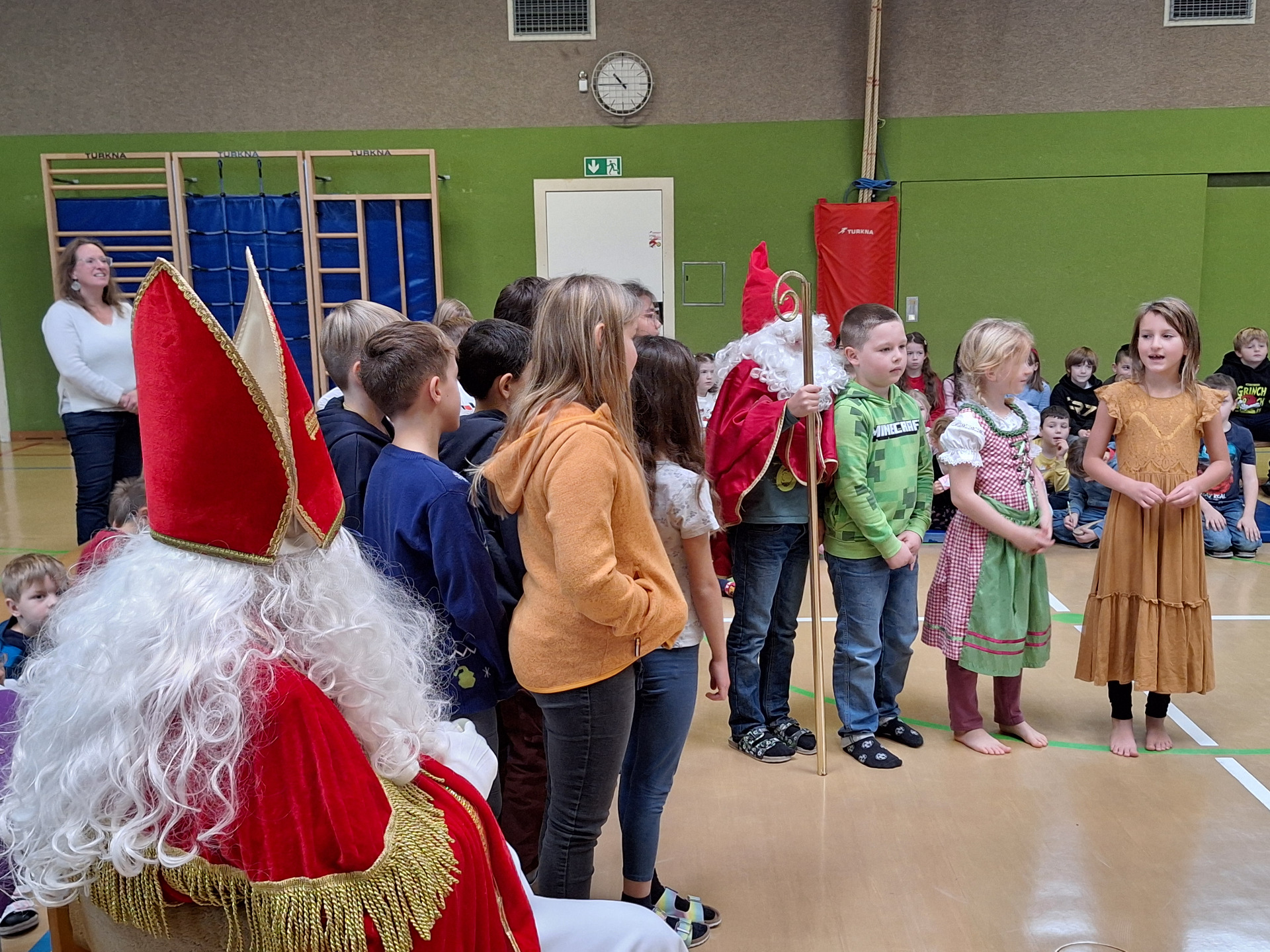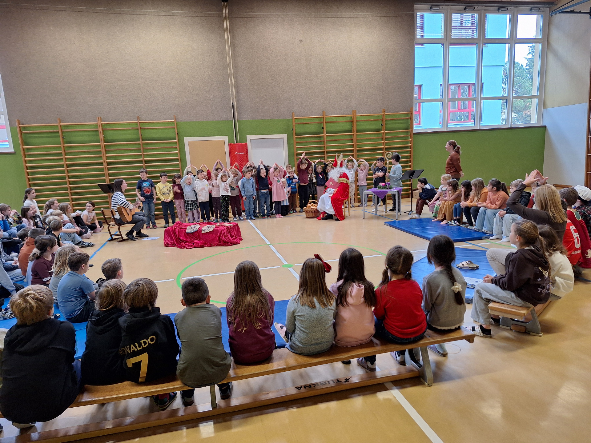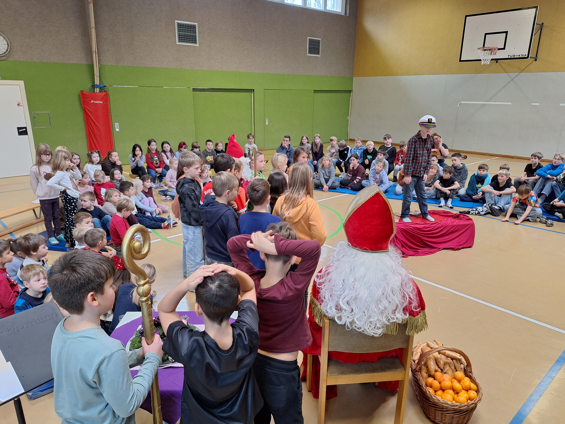 Auch in diesem Jahr kam wieder der Nikolaus zu der versammelten Schulgemeinschaft in den Turnsaal.