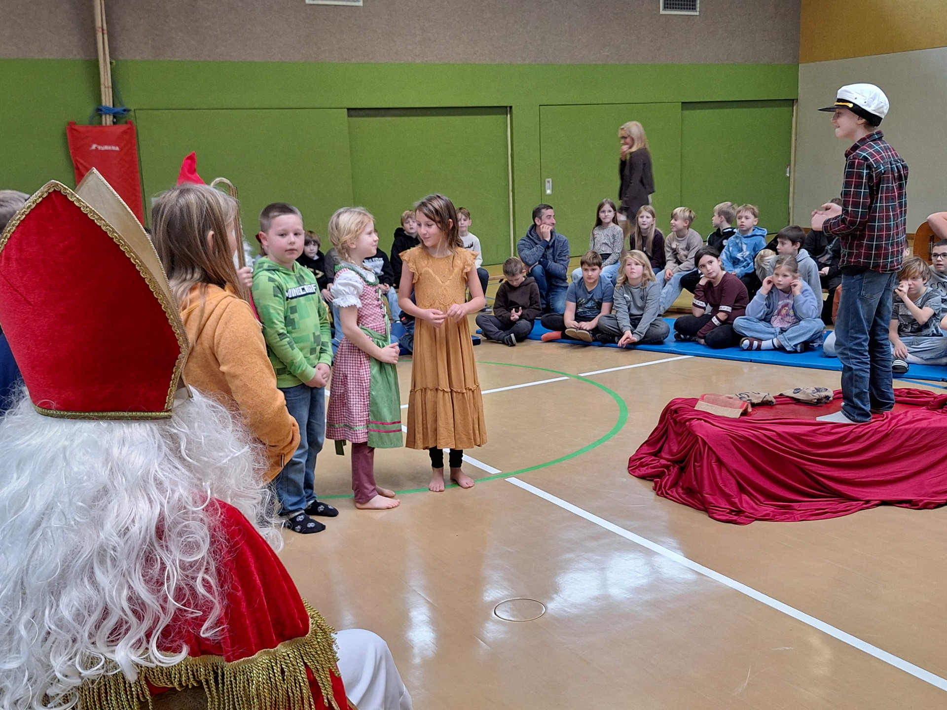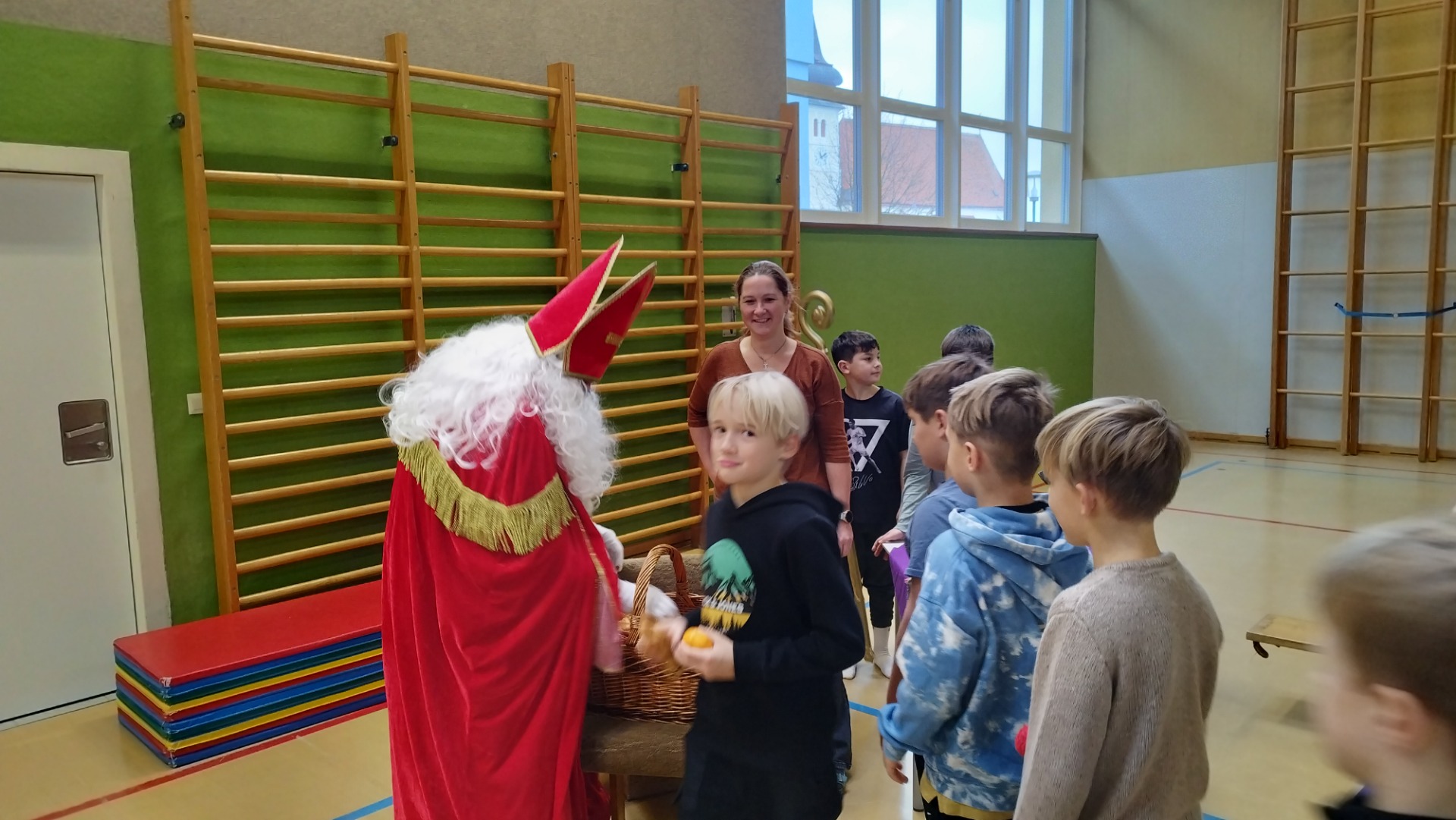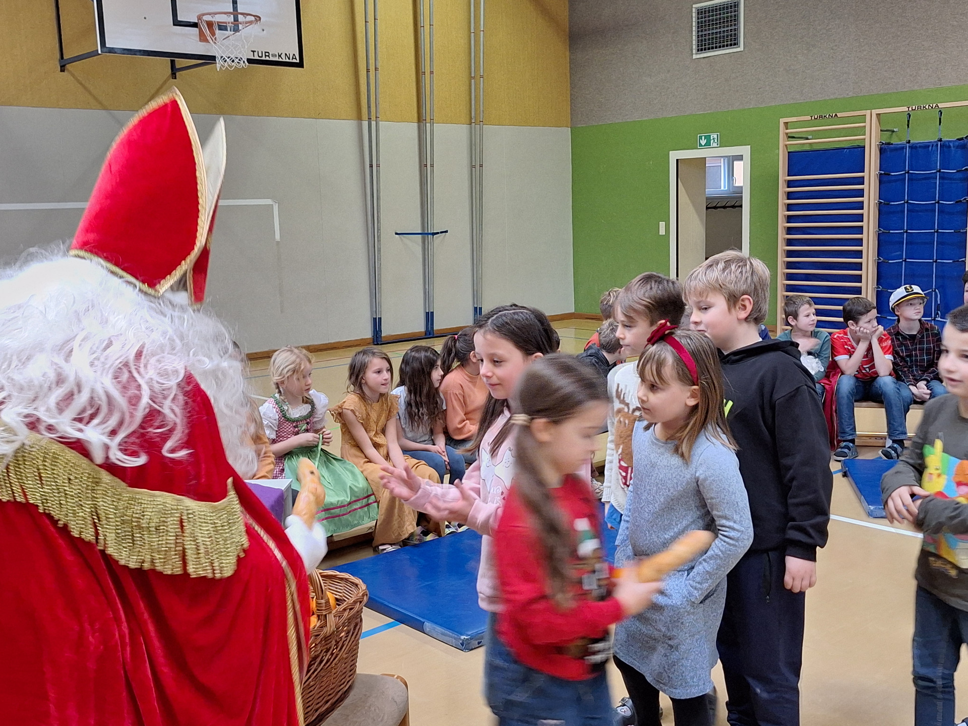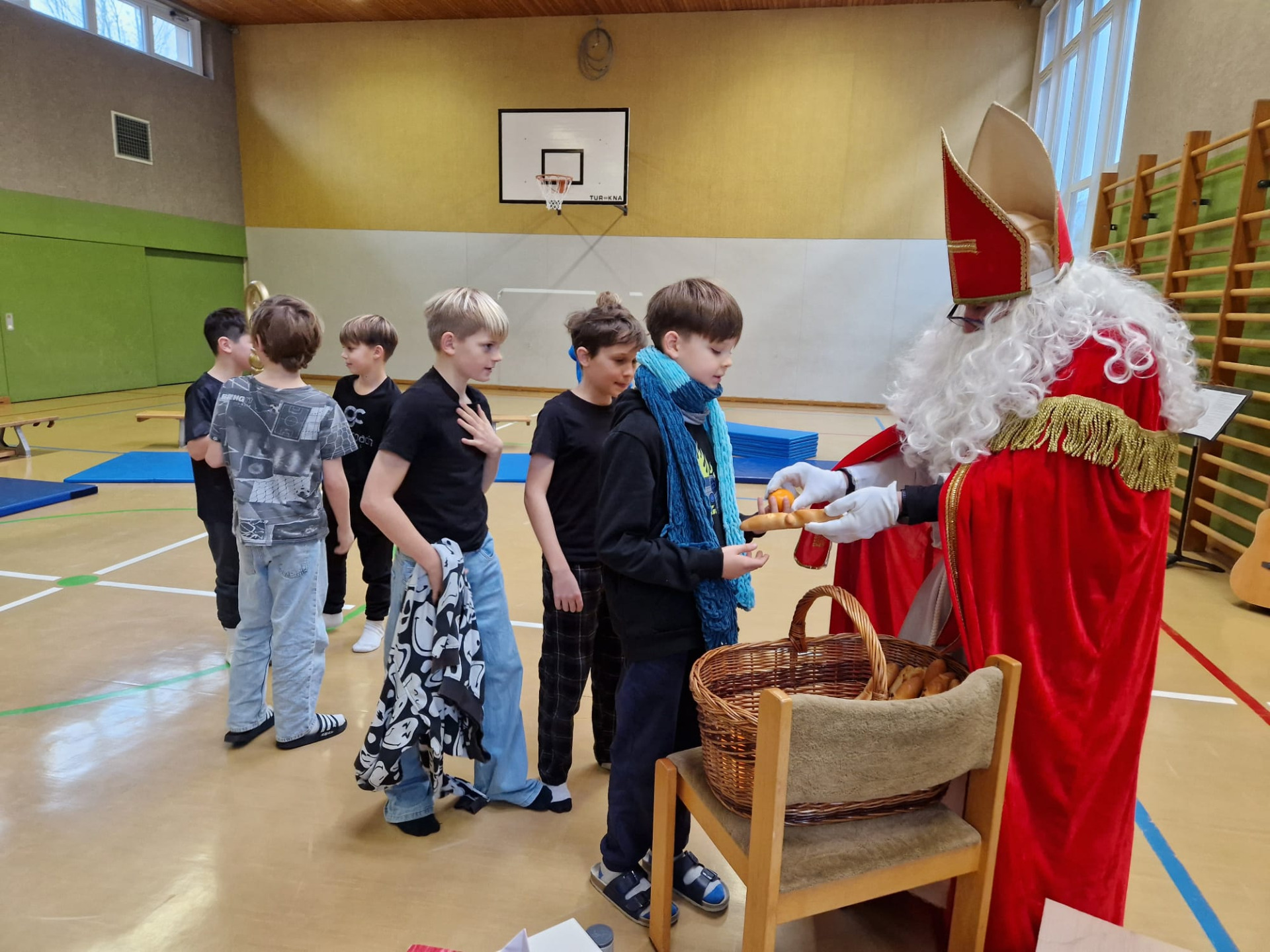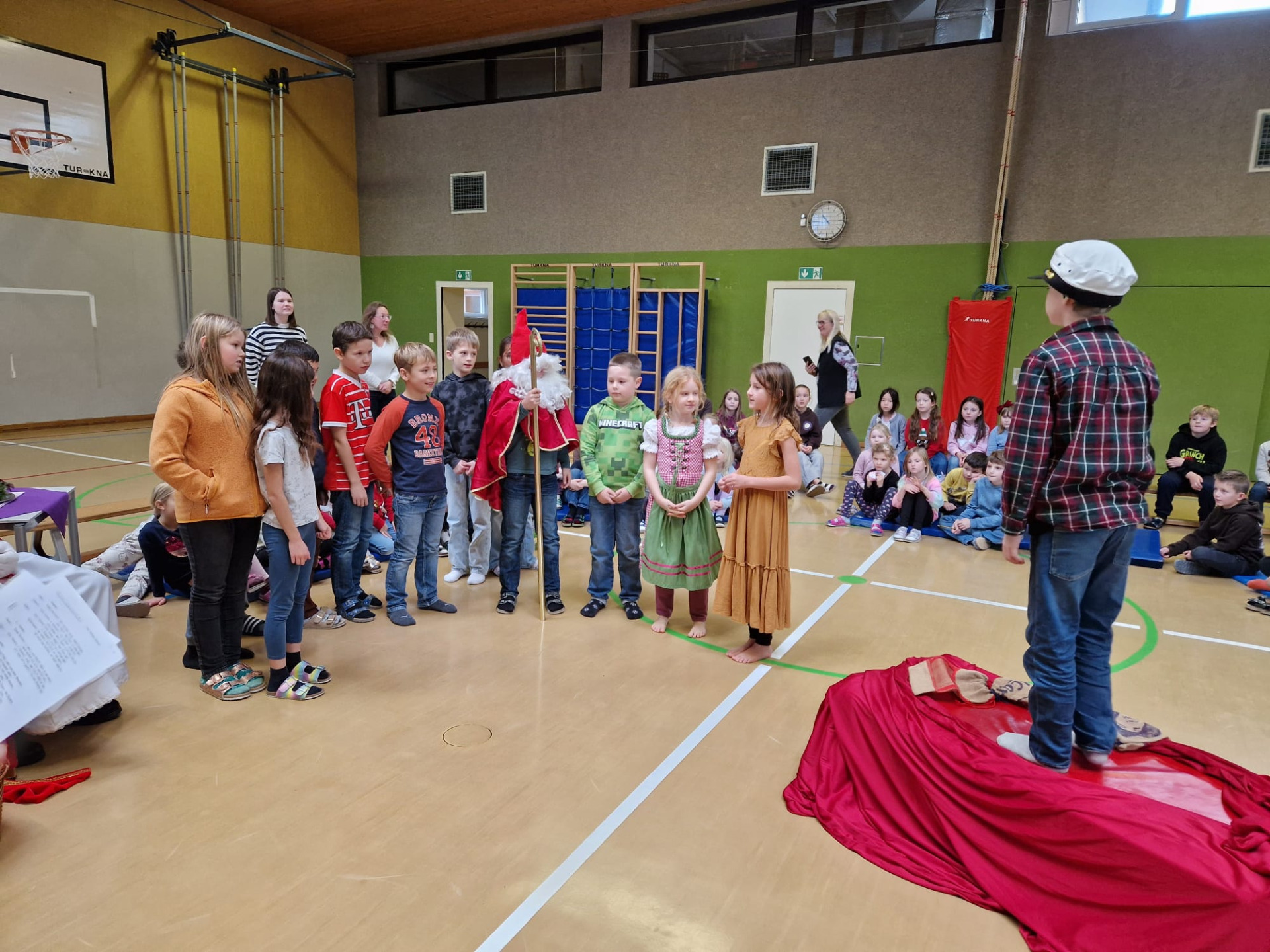 Auch in diesem Jahr kam wieder der Nikolaus zu der versammelten Schulgemeinschaft in den Turnsaal.