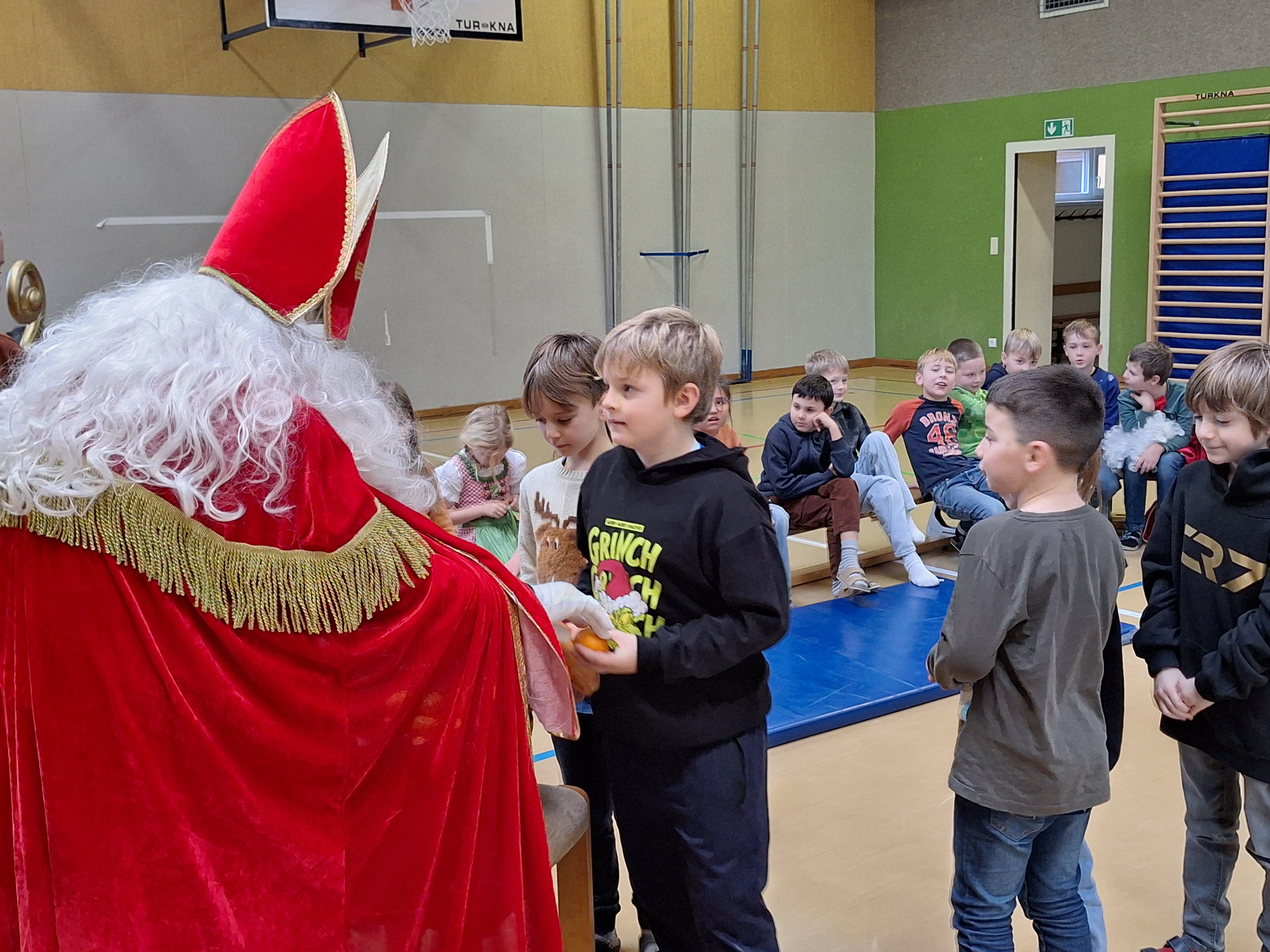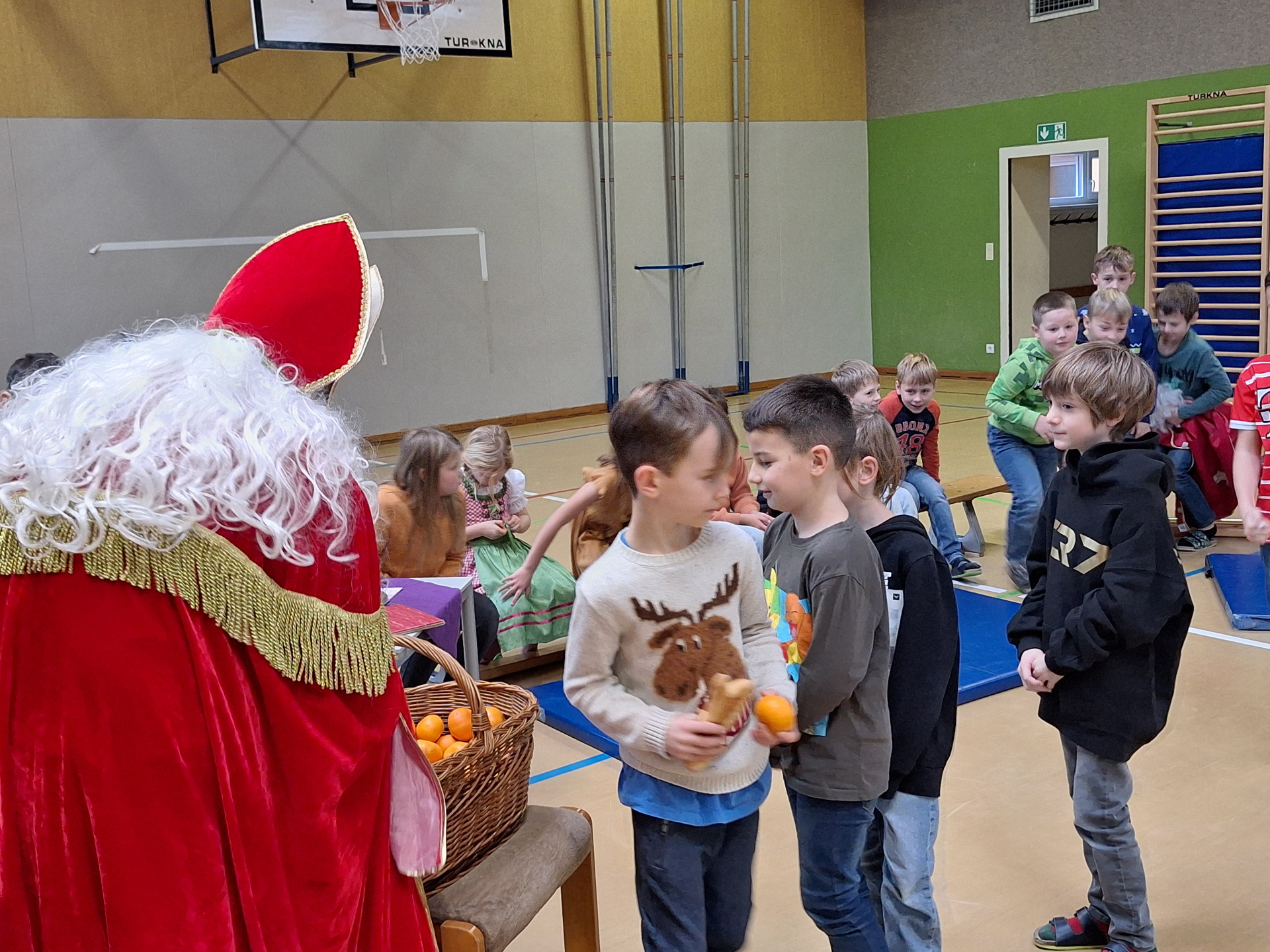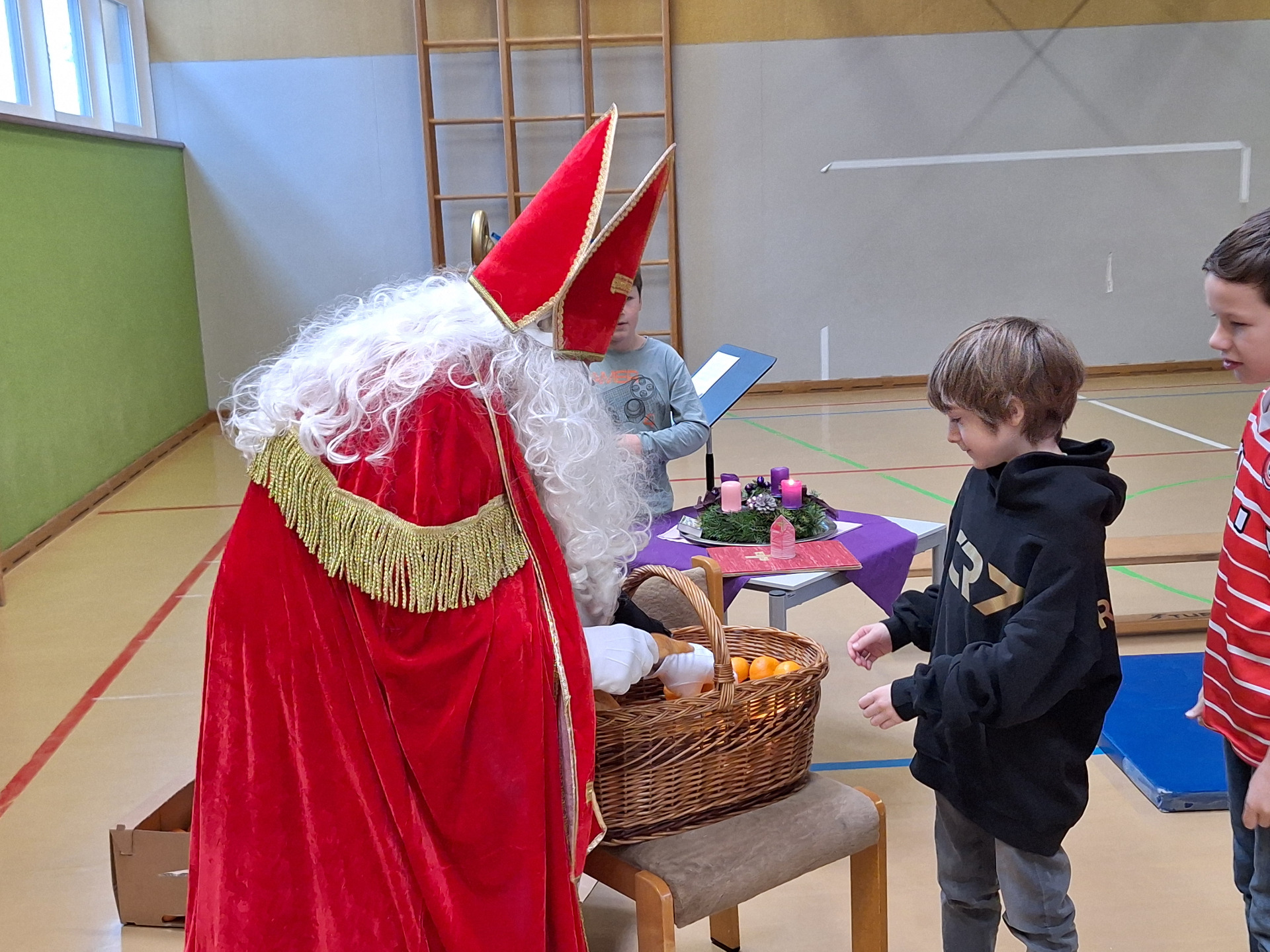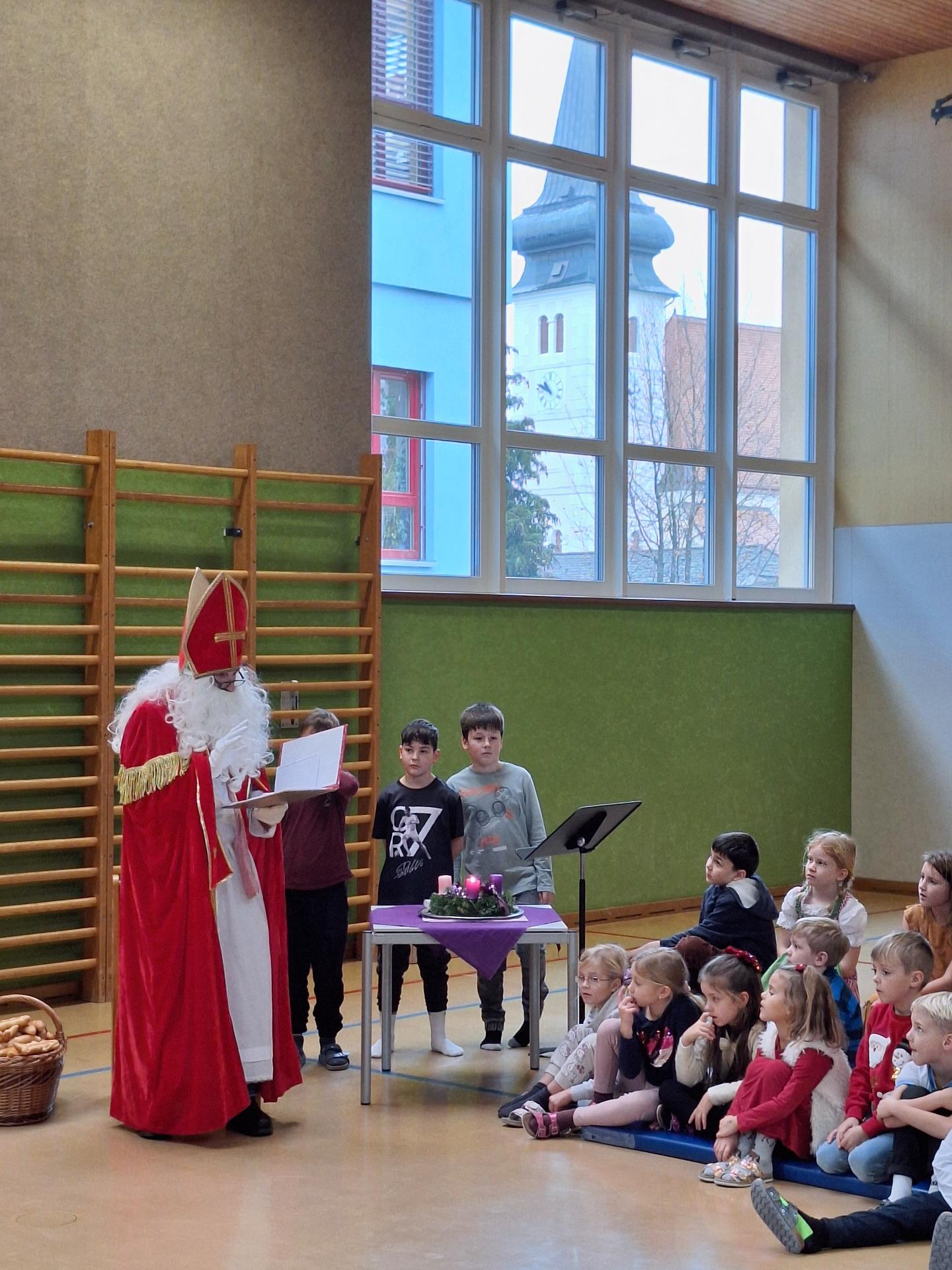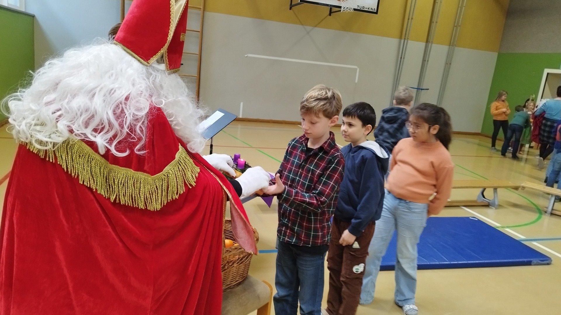 Auch in diesem Jahr kam wieder der Nikolaus zu der versammelten Schulgemeinschaft in den Turnsaal.