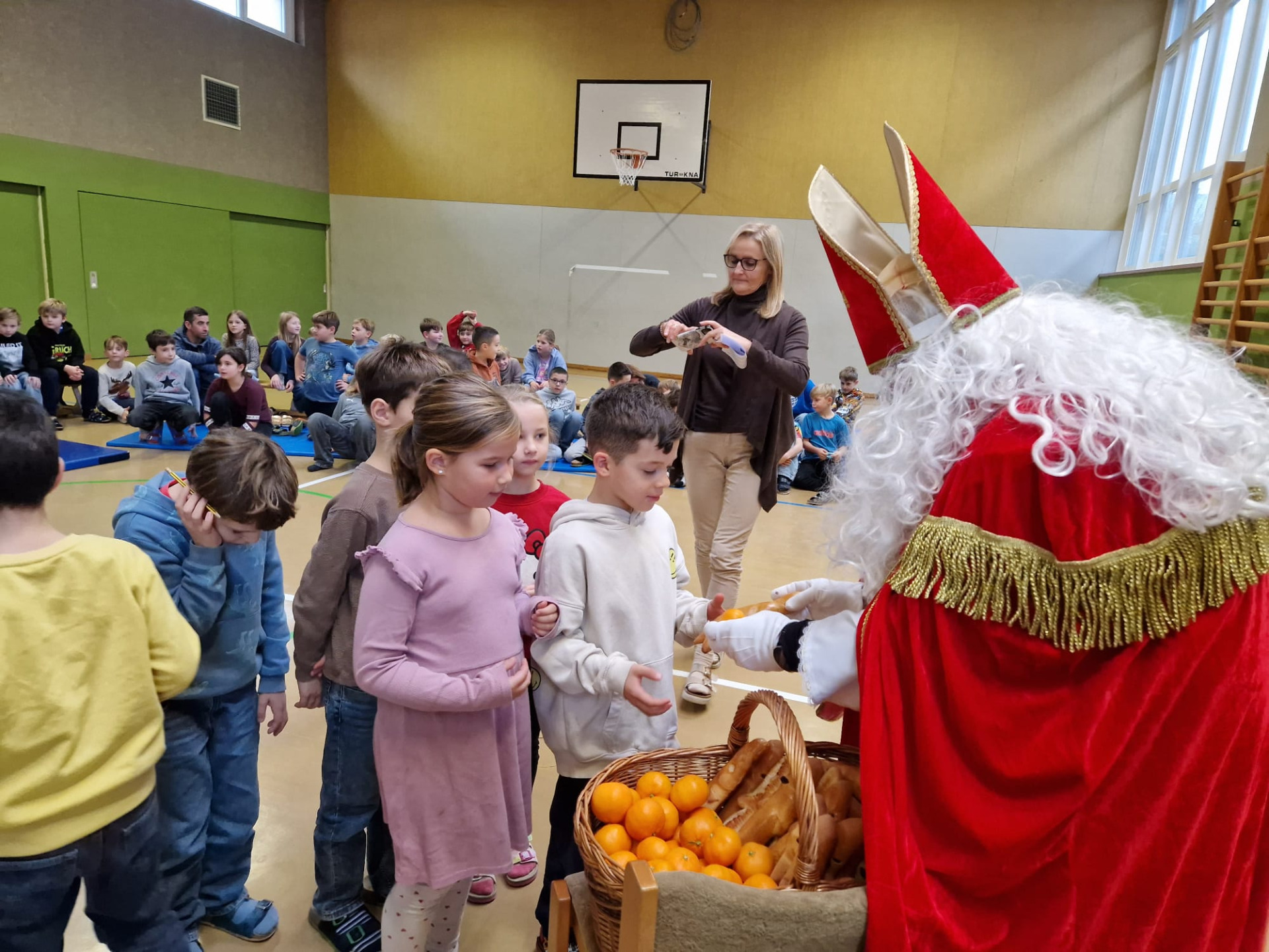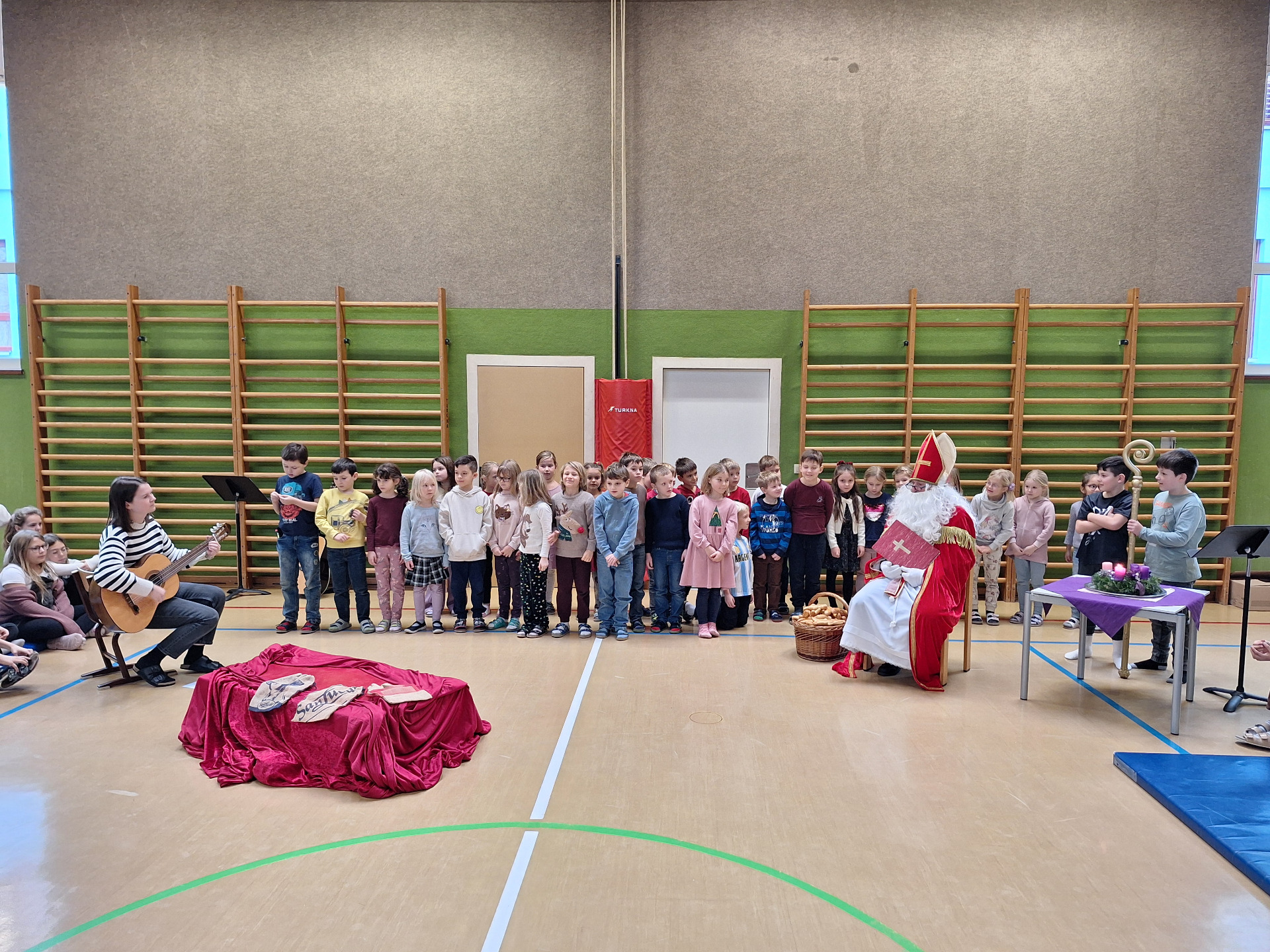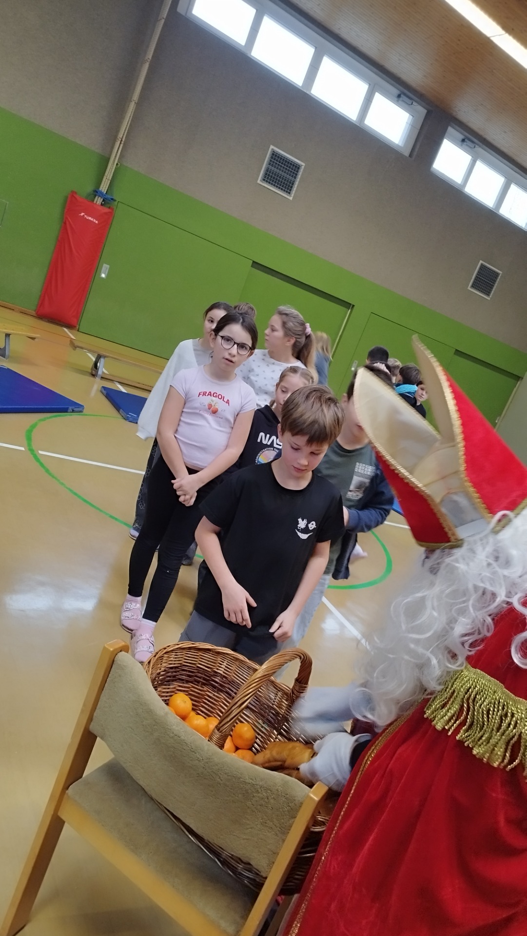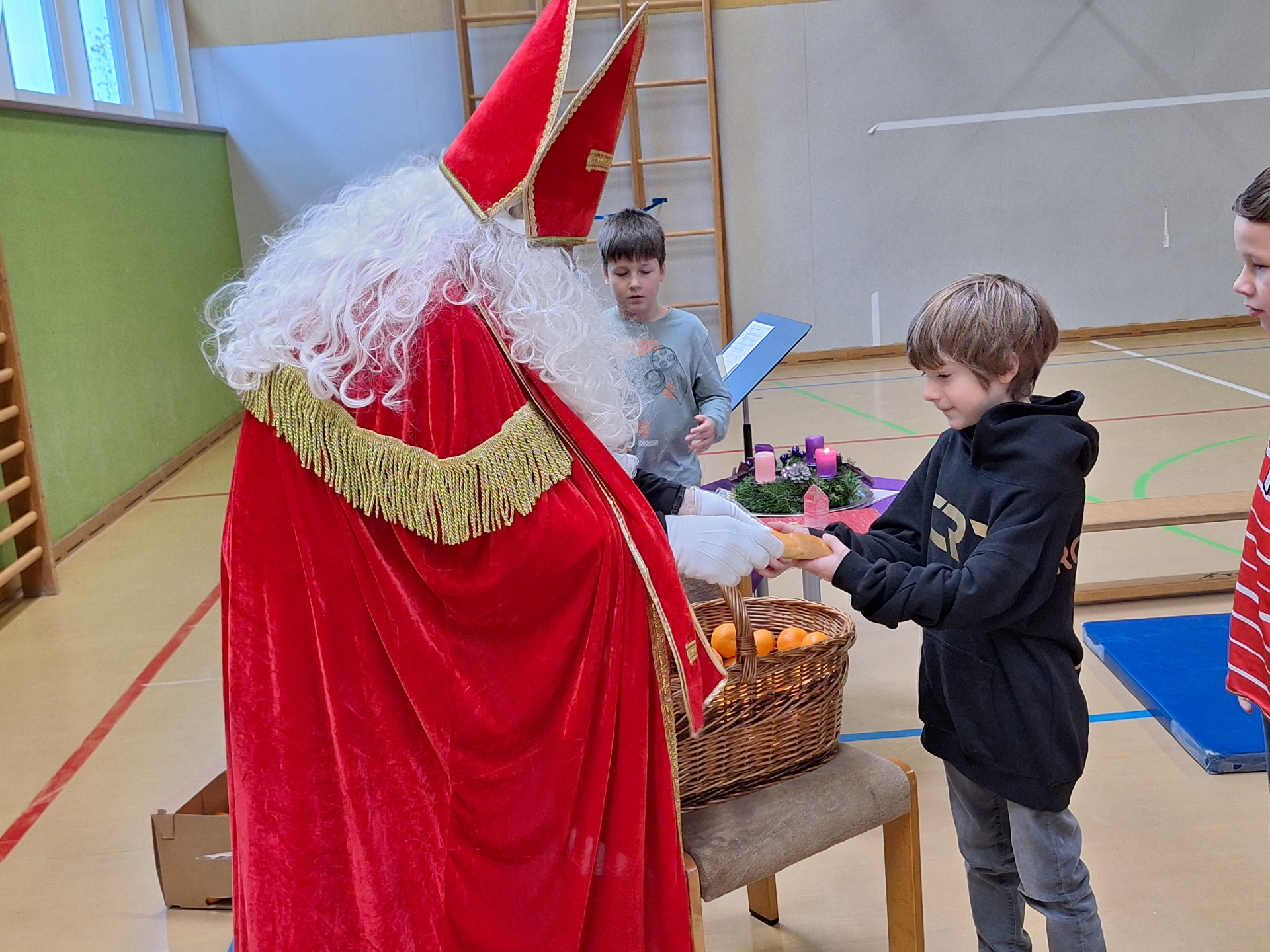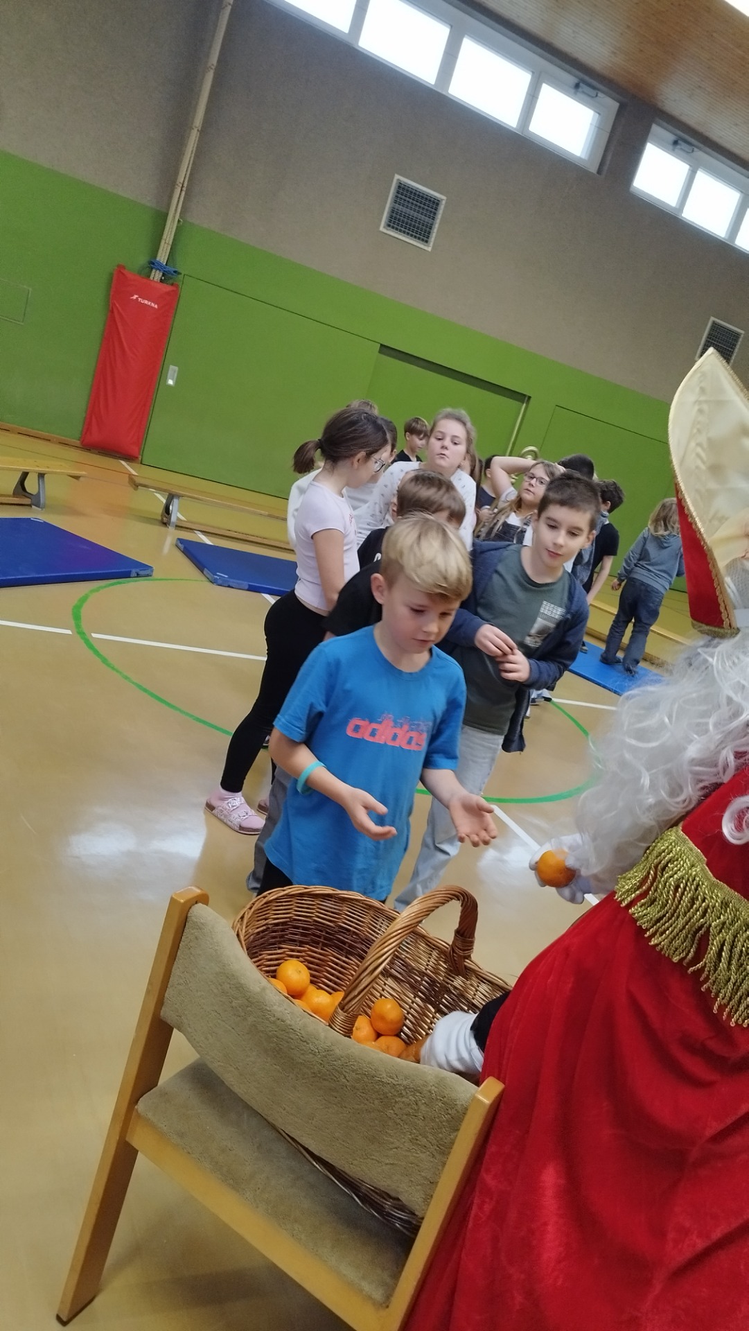 Auch in diesem Jahr kam wieder der Nikolaus zu der versammelten Schulgemeinschaft in den Turnsaal.