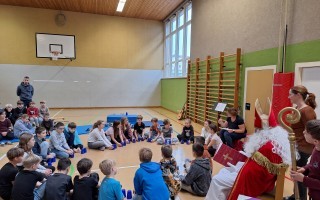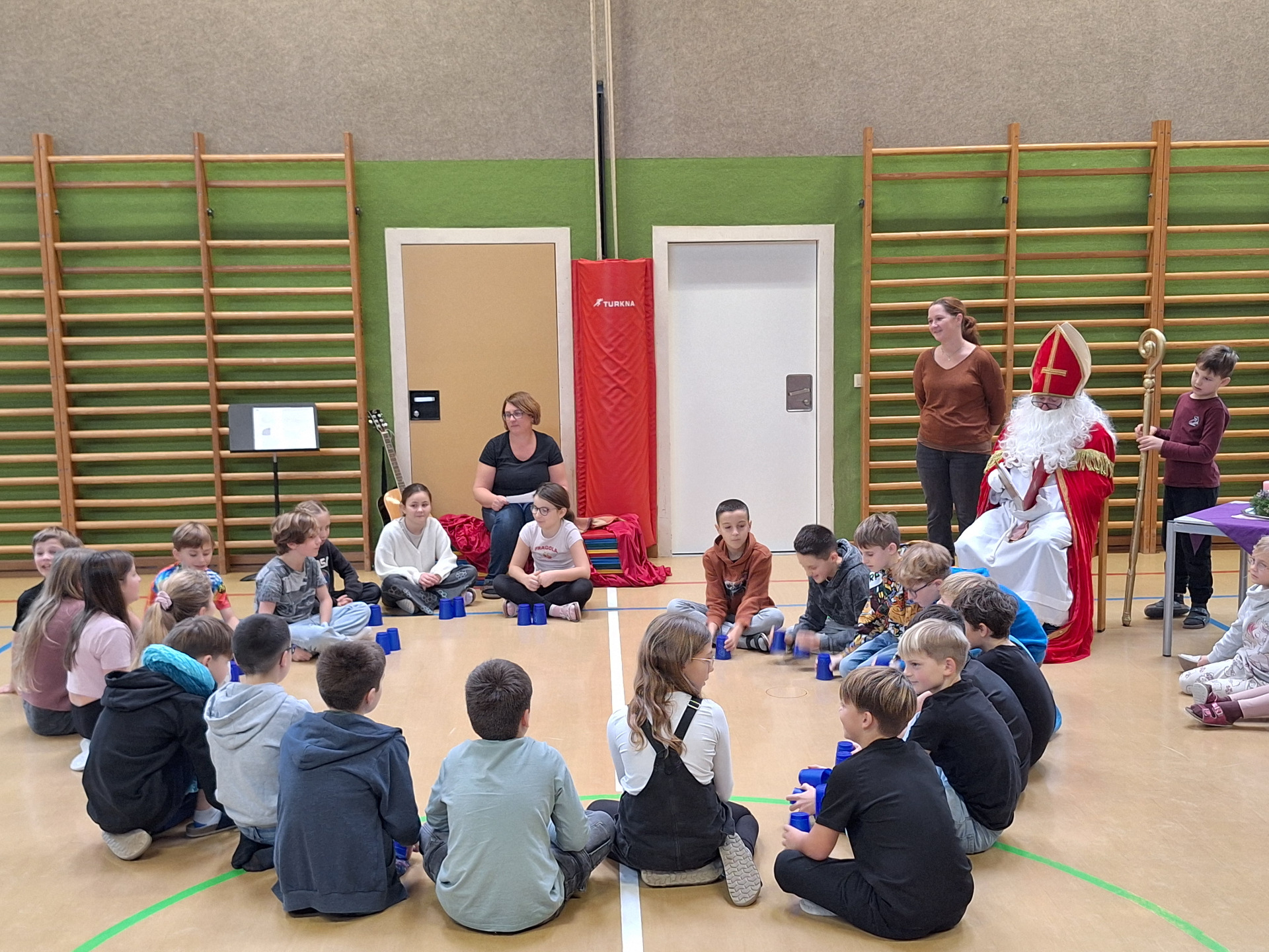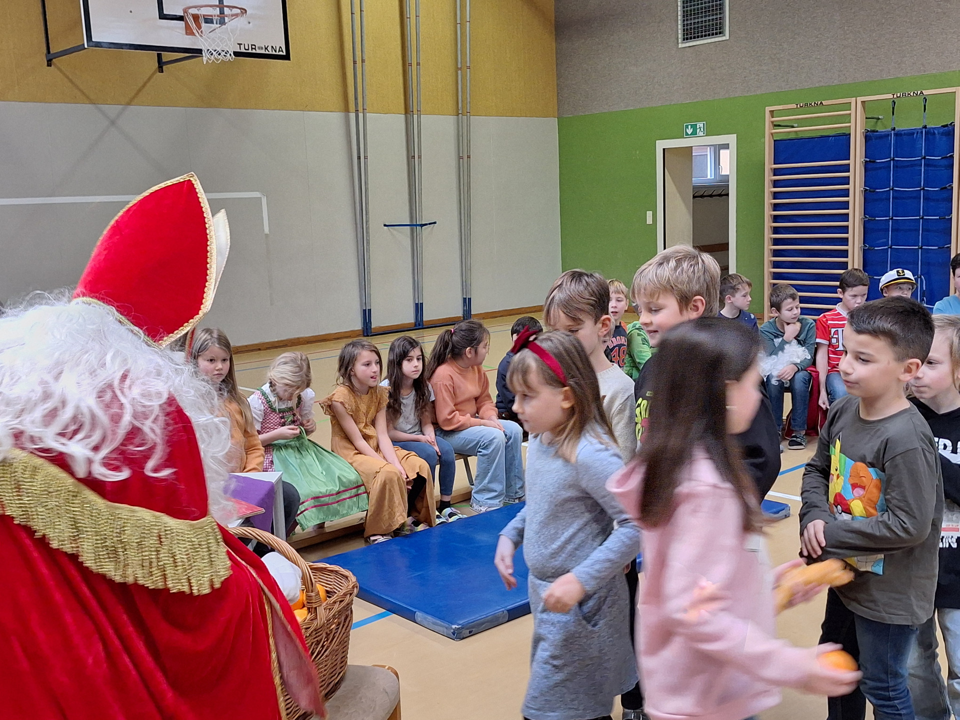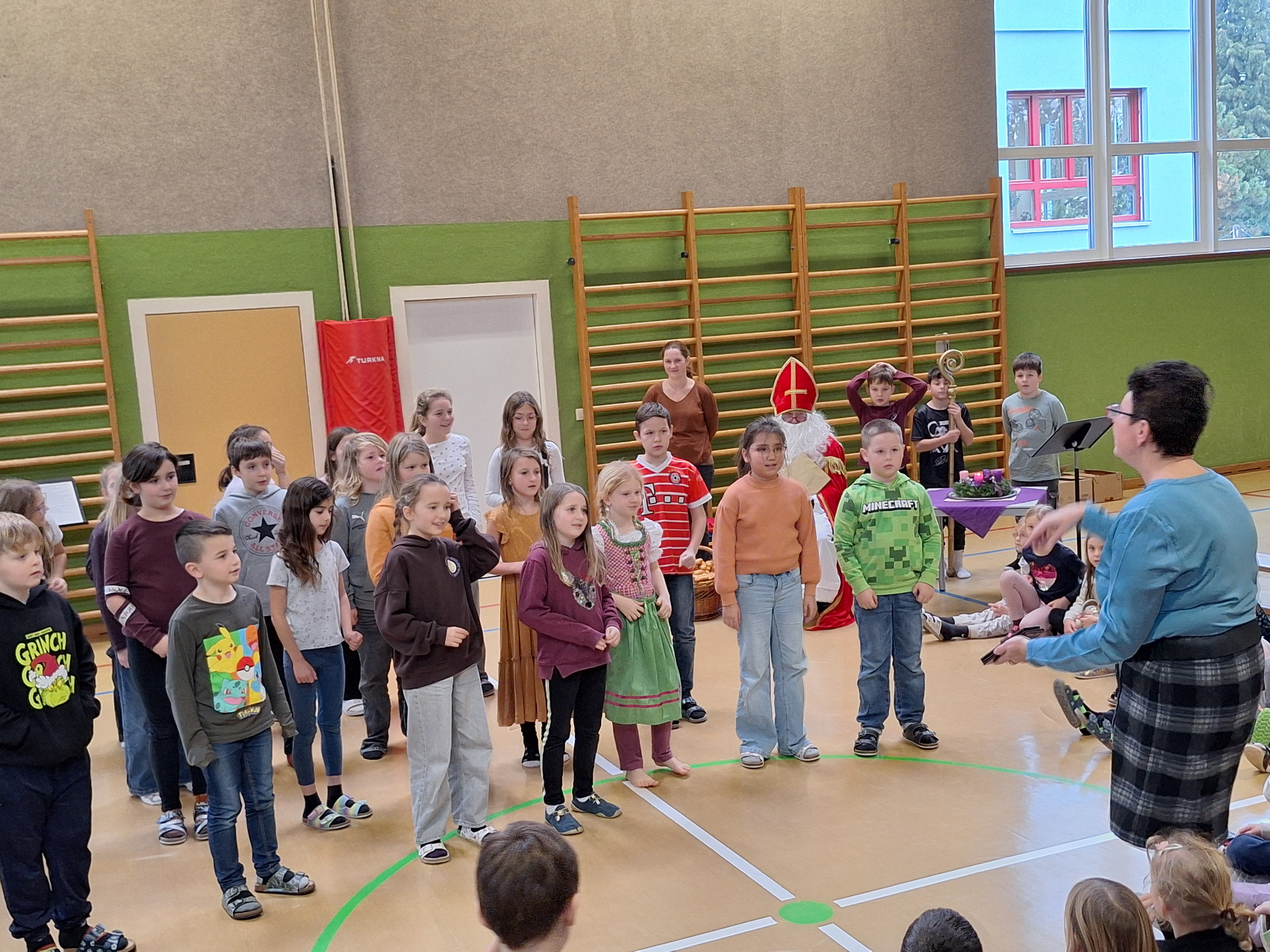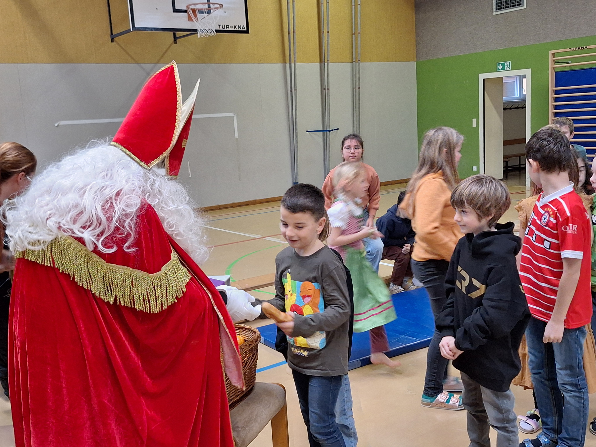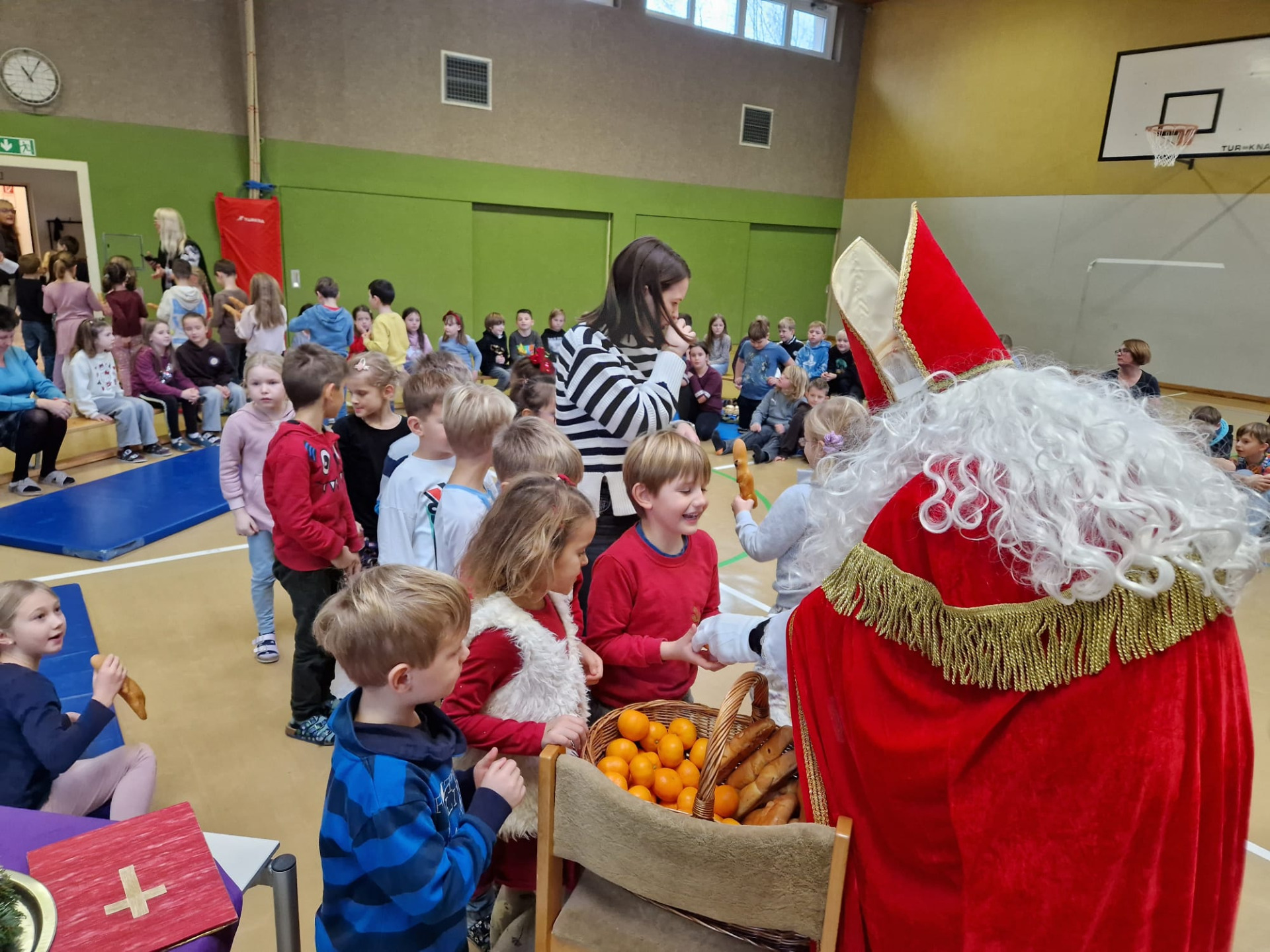 Auch in diesem Jahr kam wieder der Nikolaus zu der versammelten Schulgemeinschaft in den Turnsaal.
