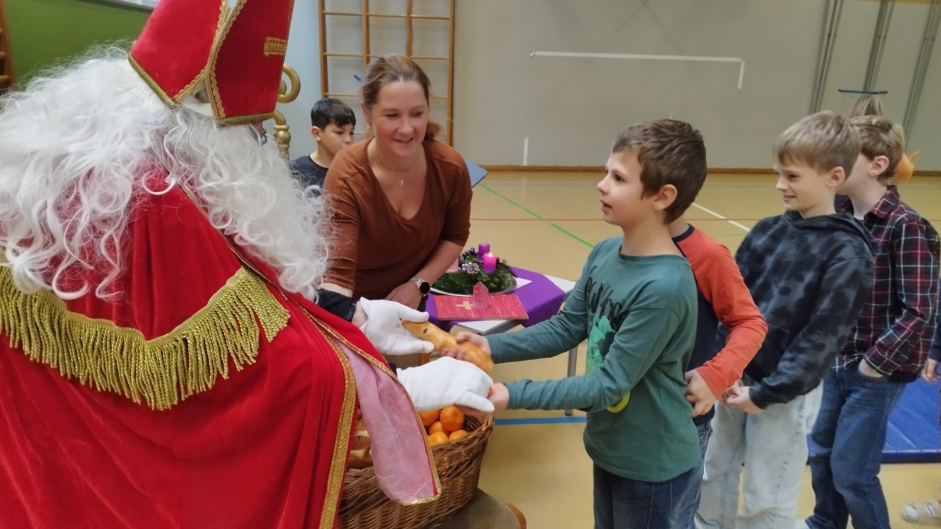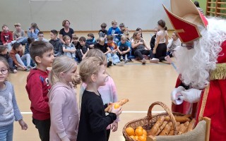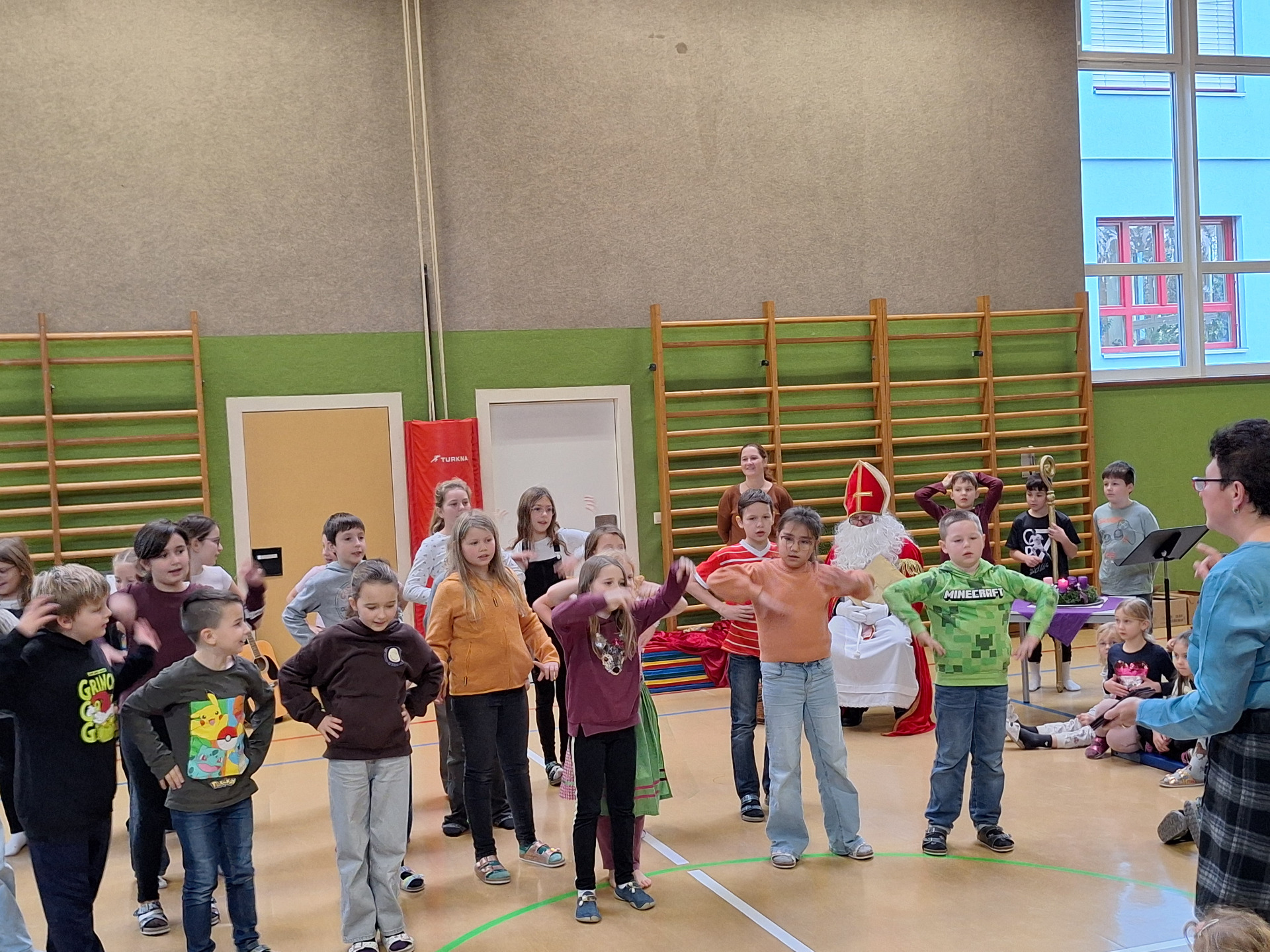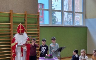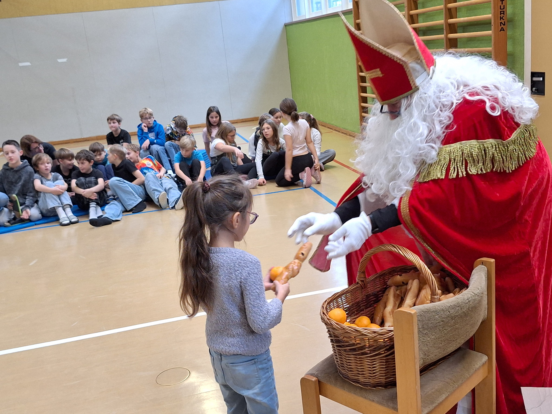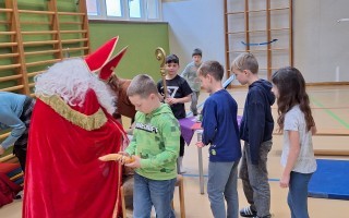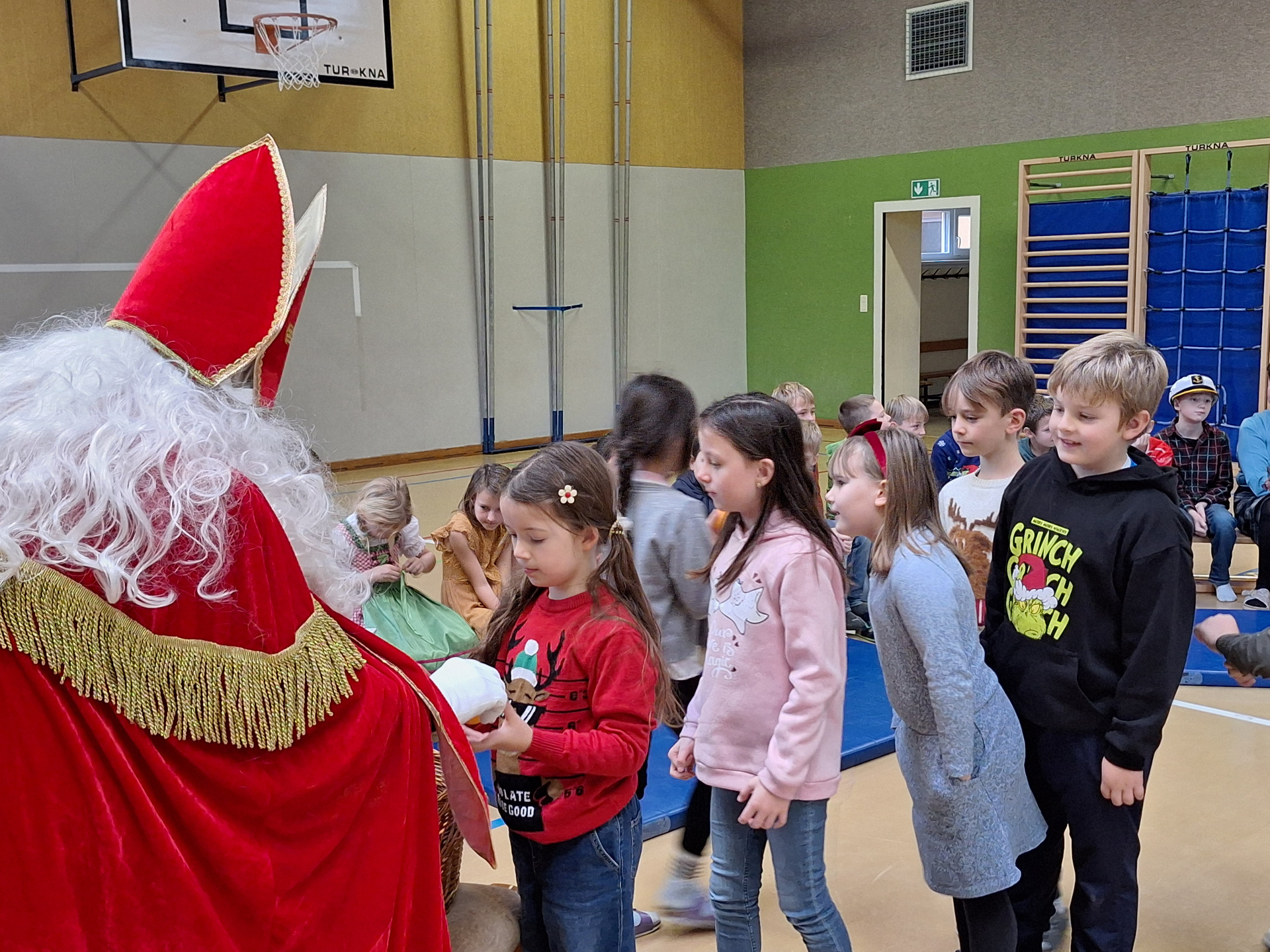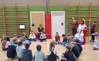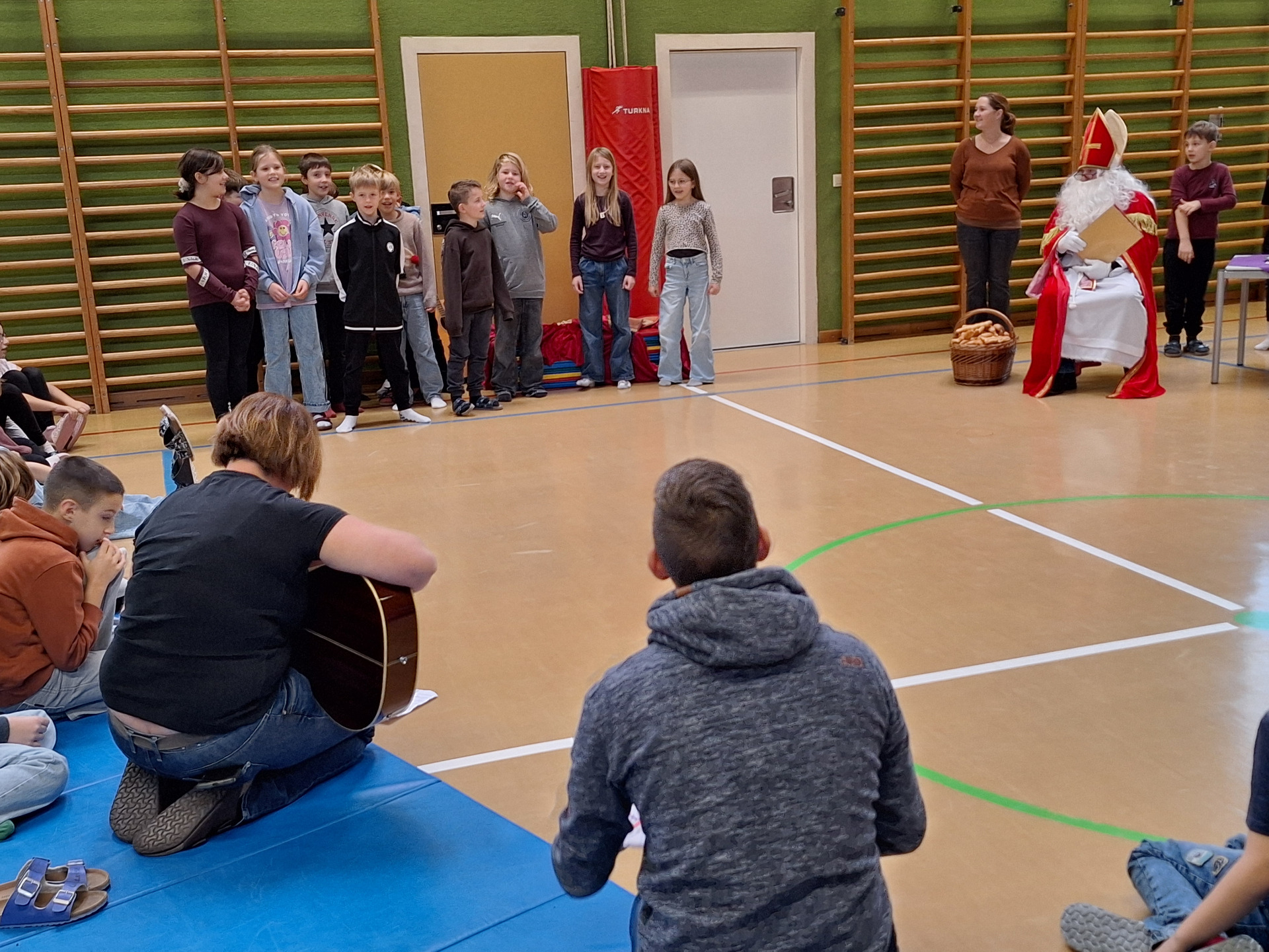 Auch in diesem Jahr kam wieder der Nikolaus zu der versammelten Schulgemeinschaft in den Turnsaal.