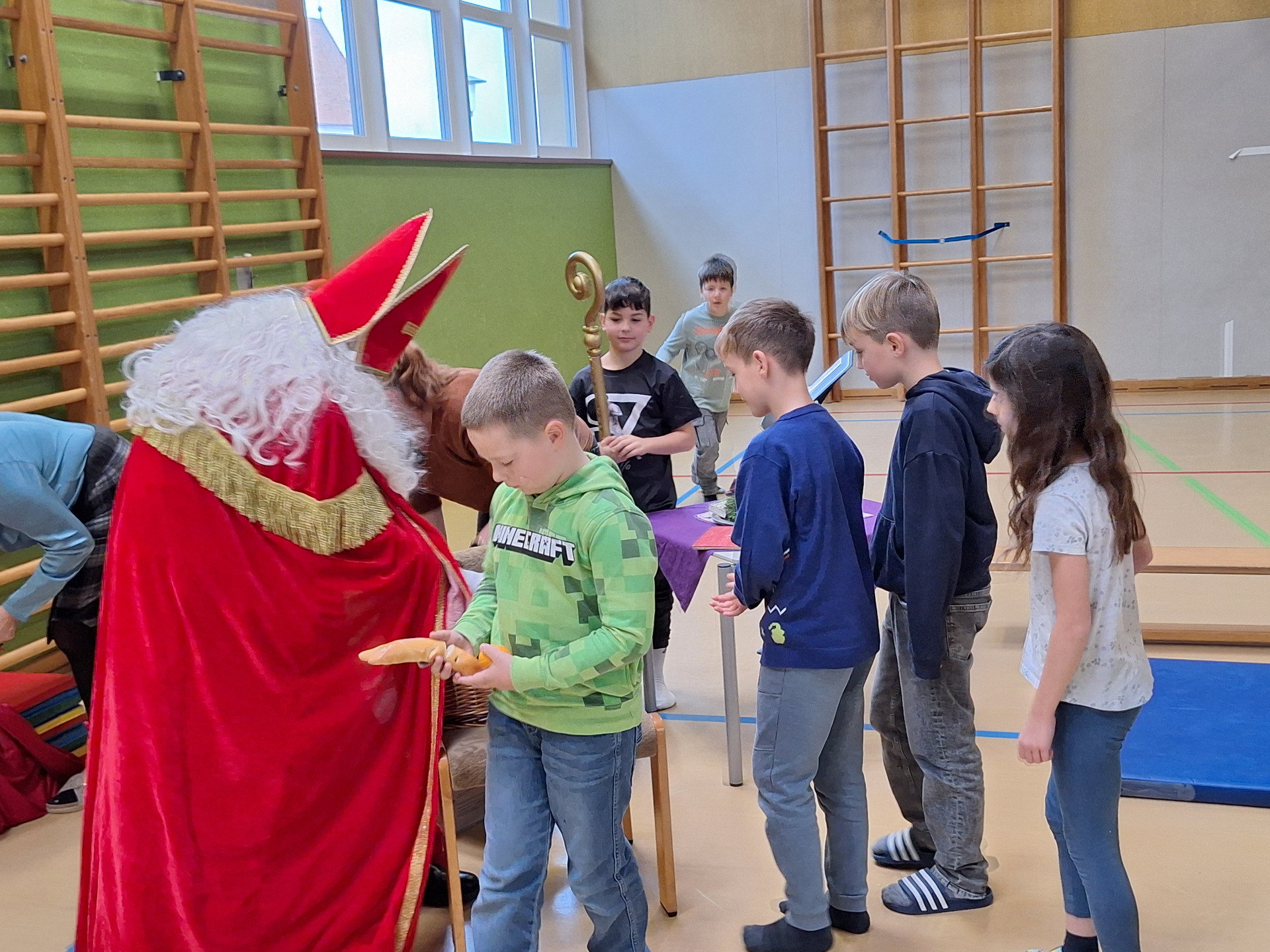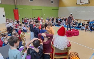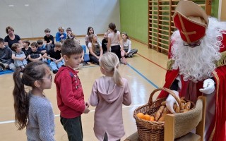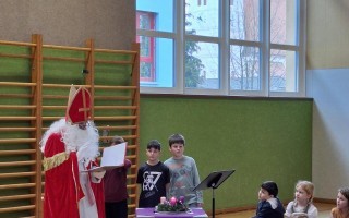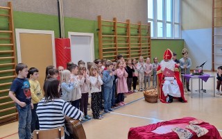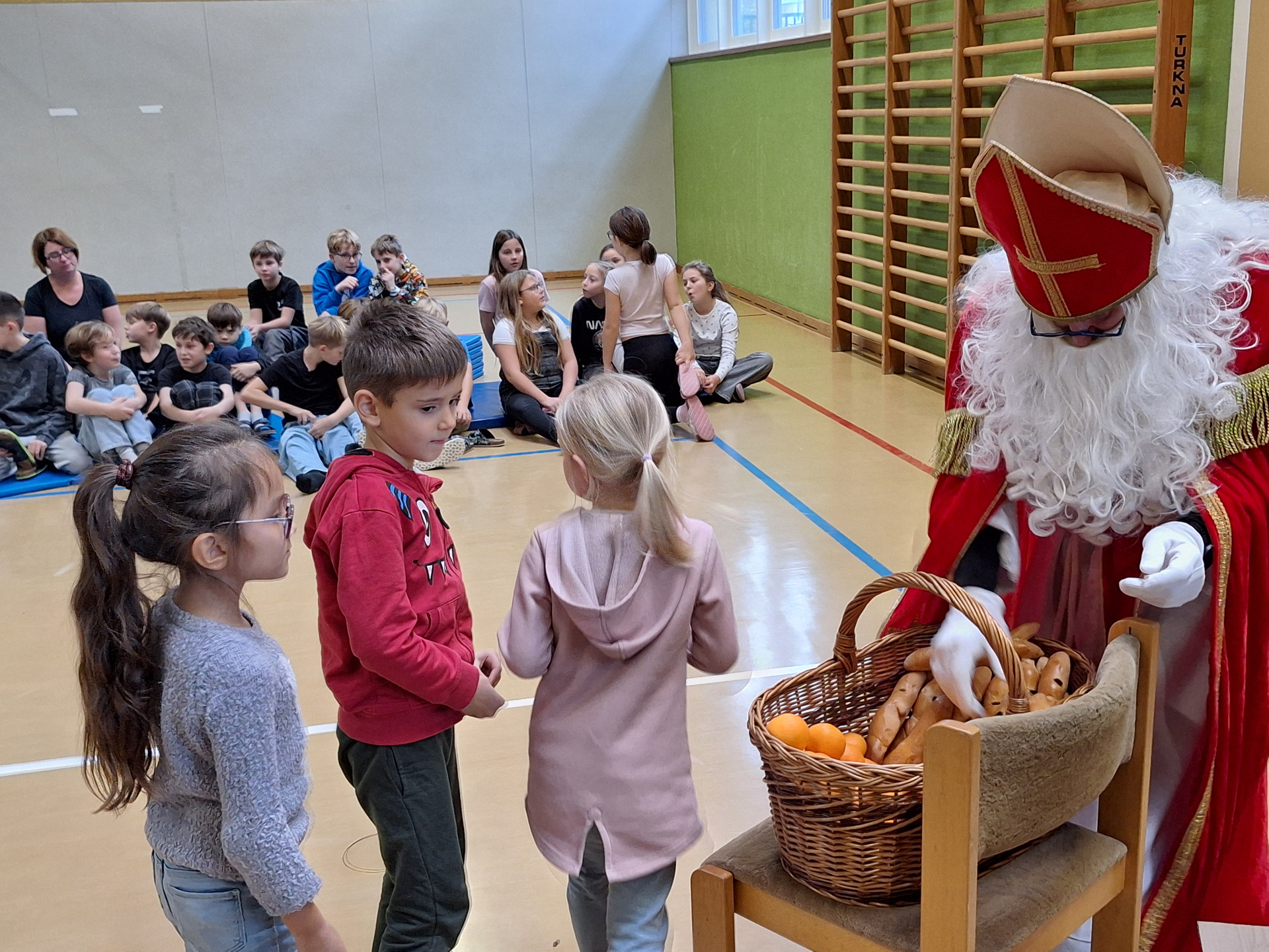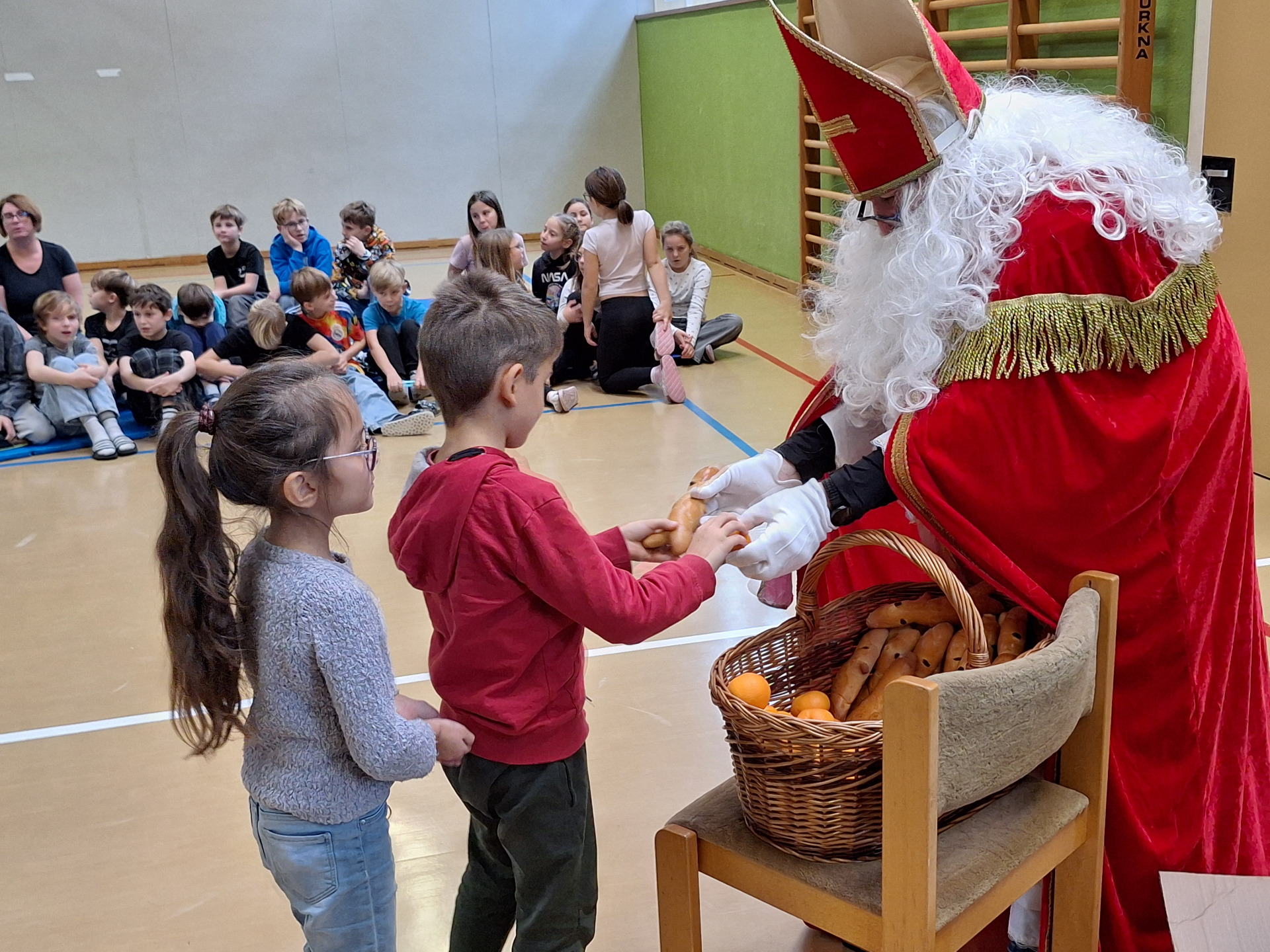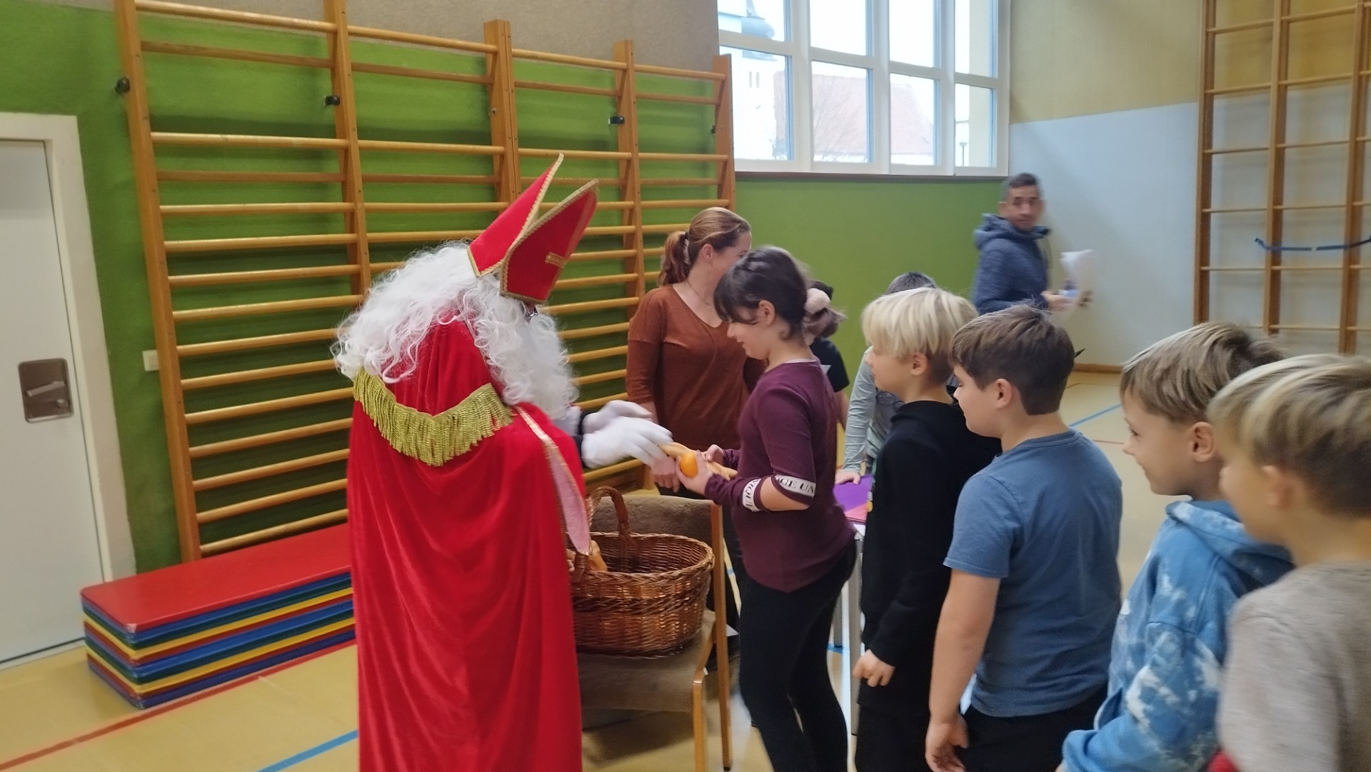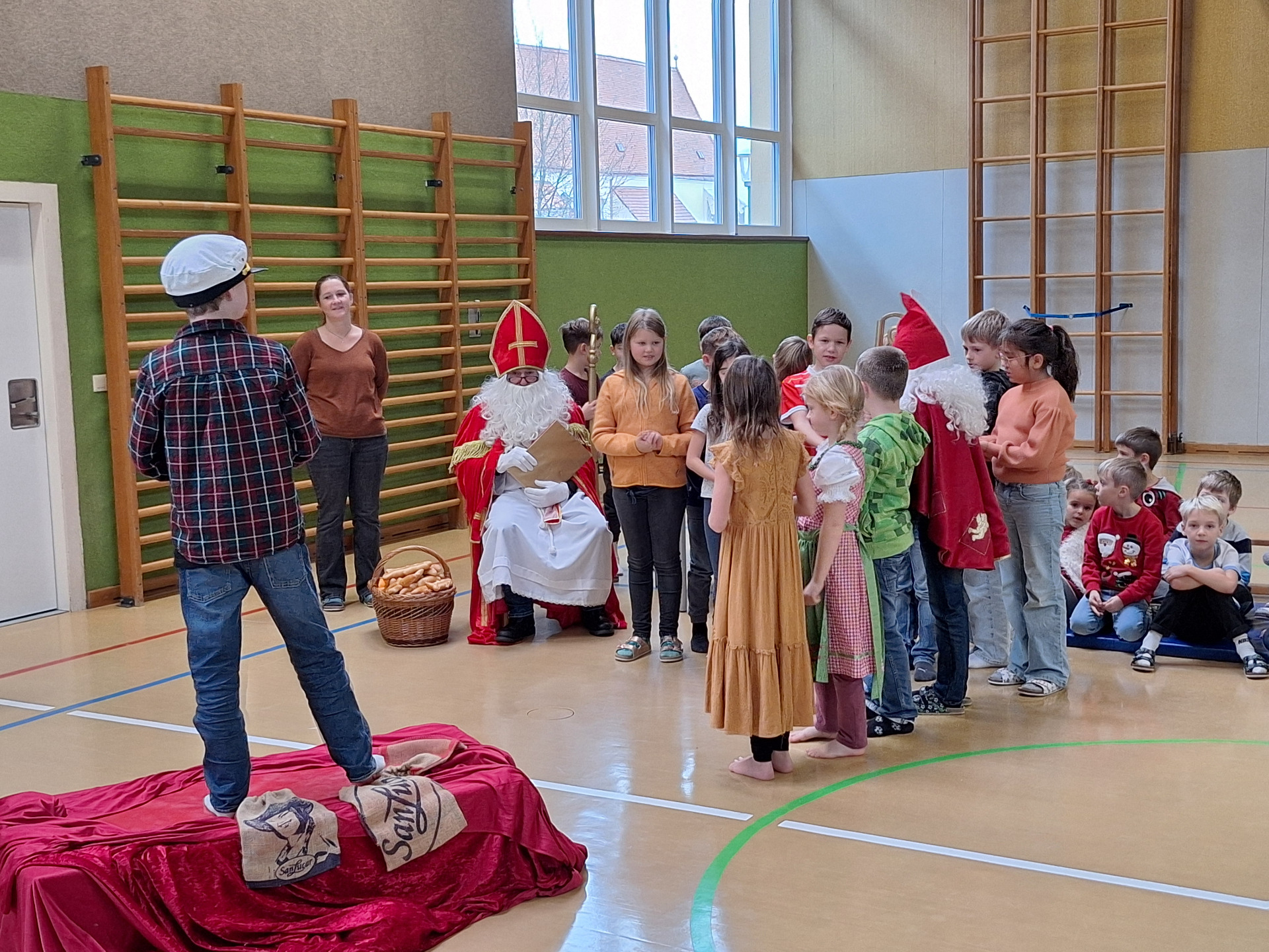 Auch in diesem Jahr kam wieder der Nikolaus zu der versammelten Schulgemeinschaft in den Turnsaal.