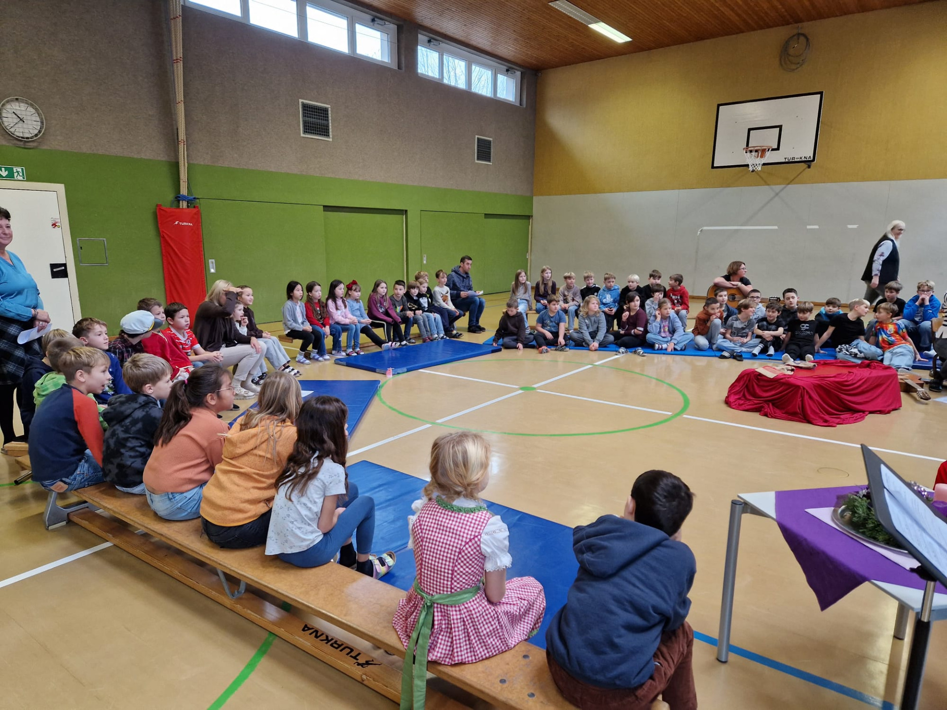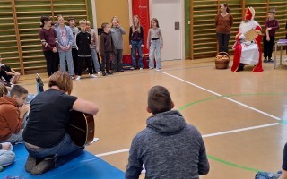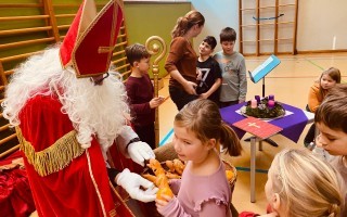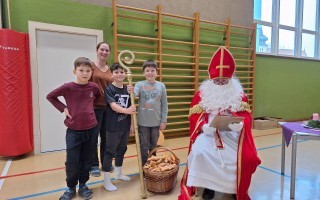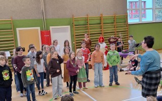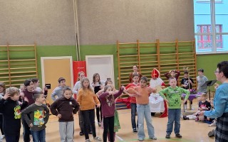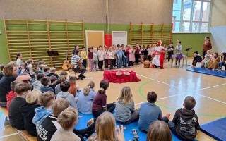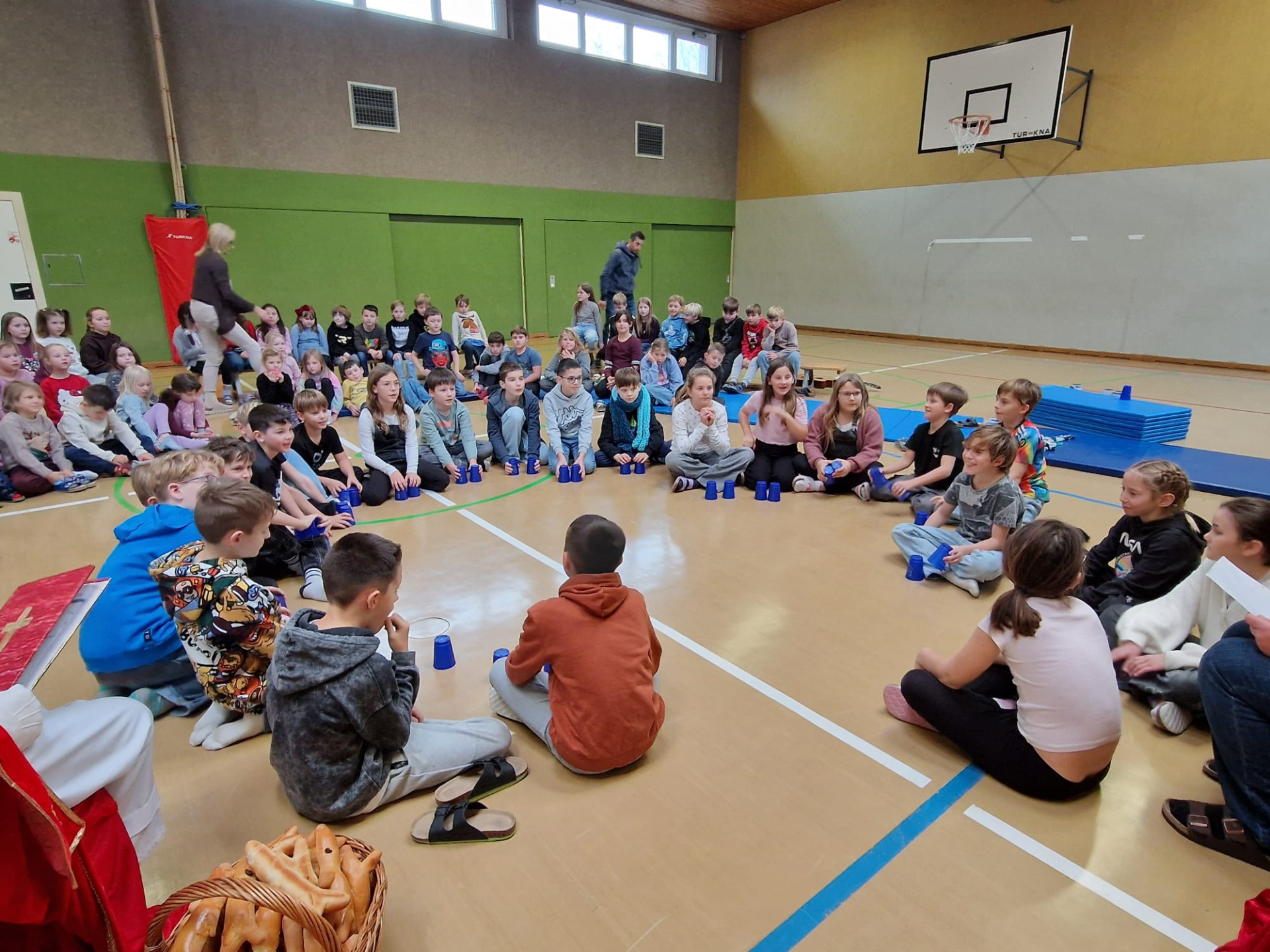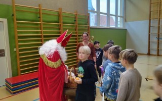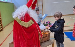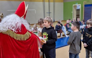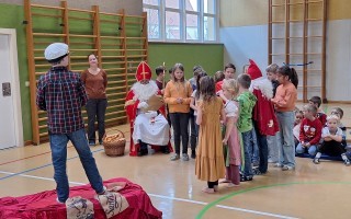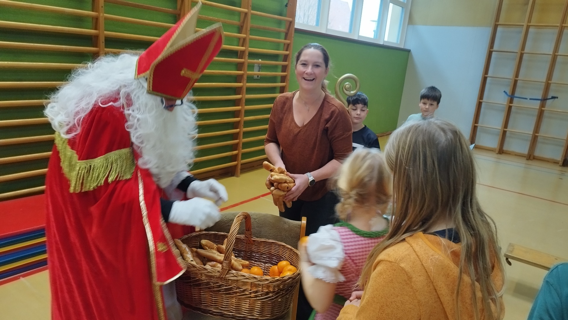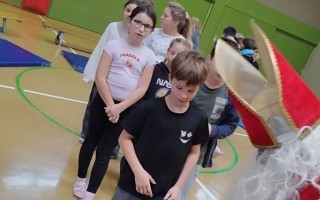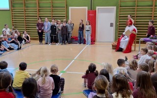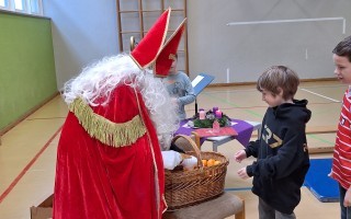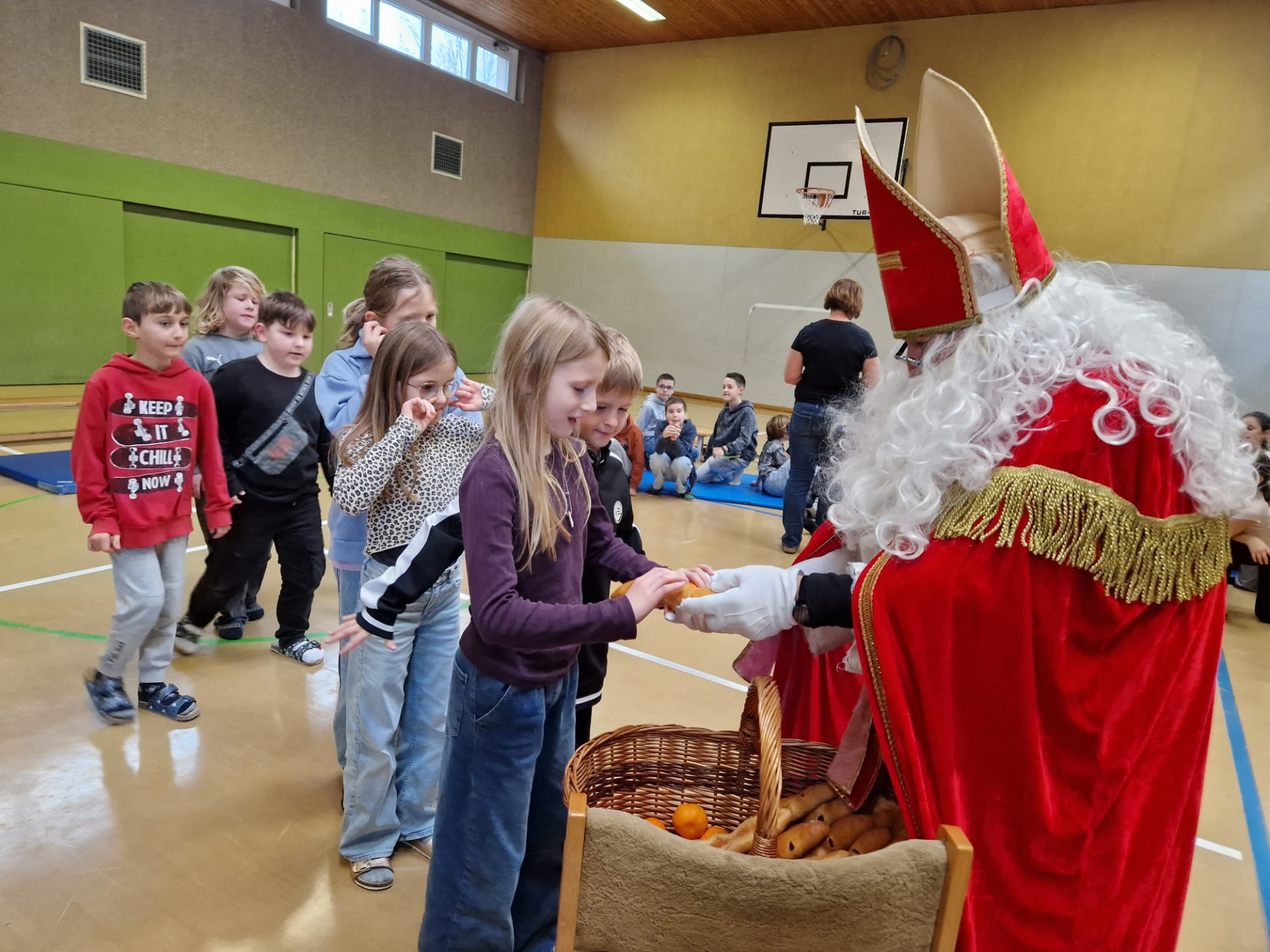 Auch in diesem Jahr kam wieder der Nikolaus zu der versammelten Schulgemeinschaft in den Turnsaal.