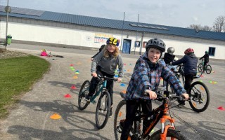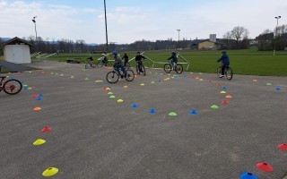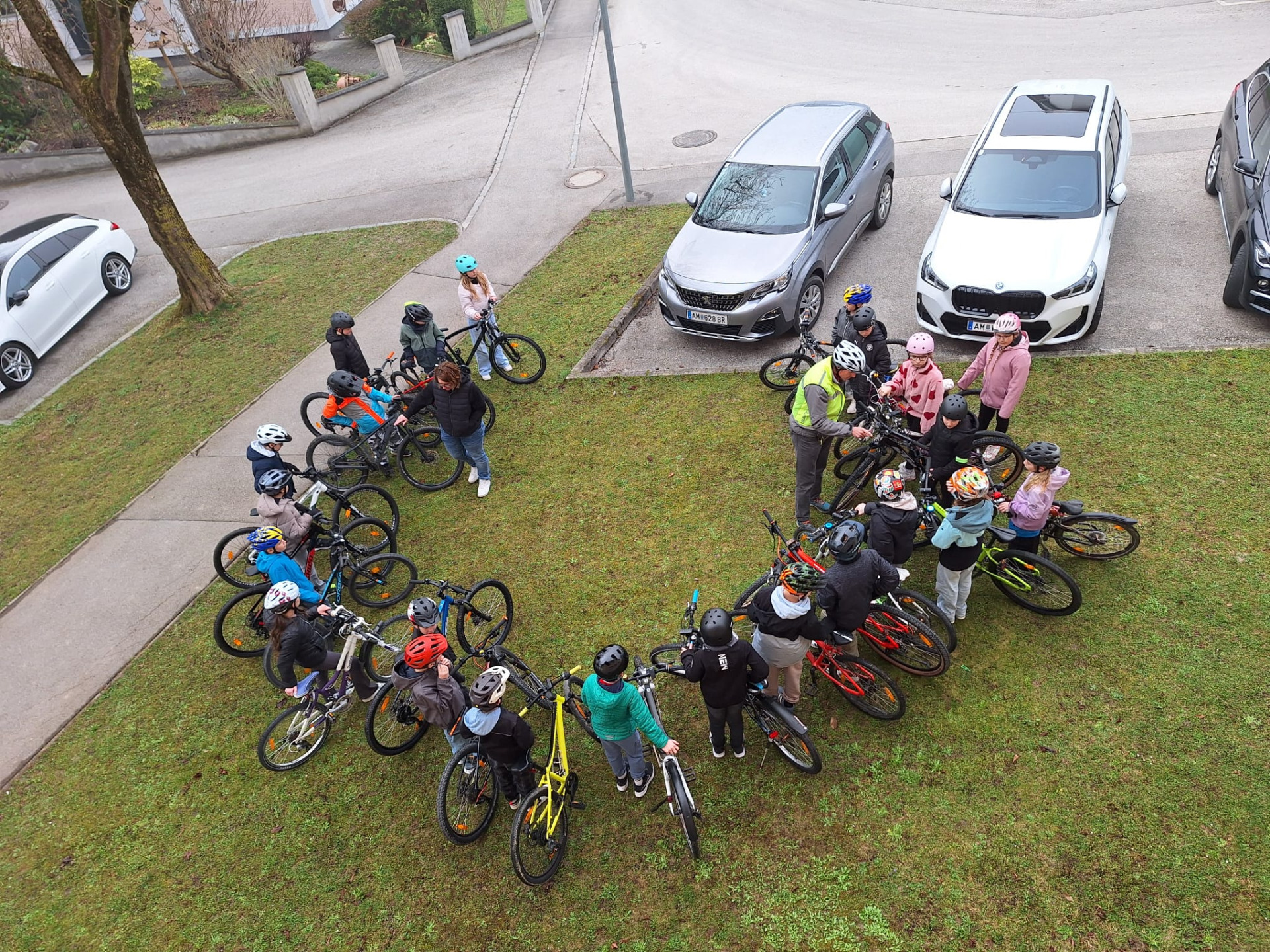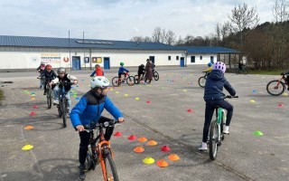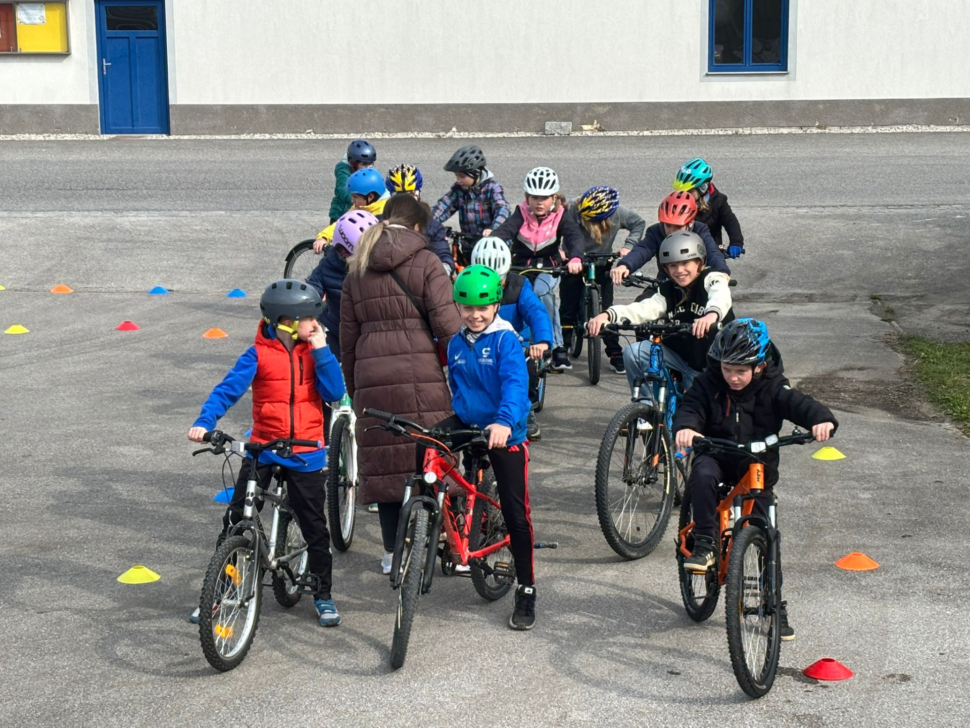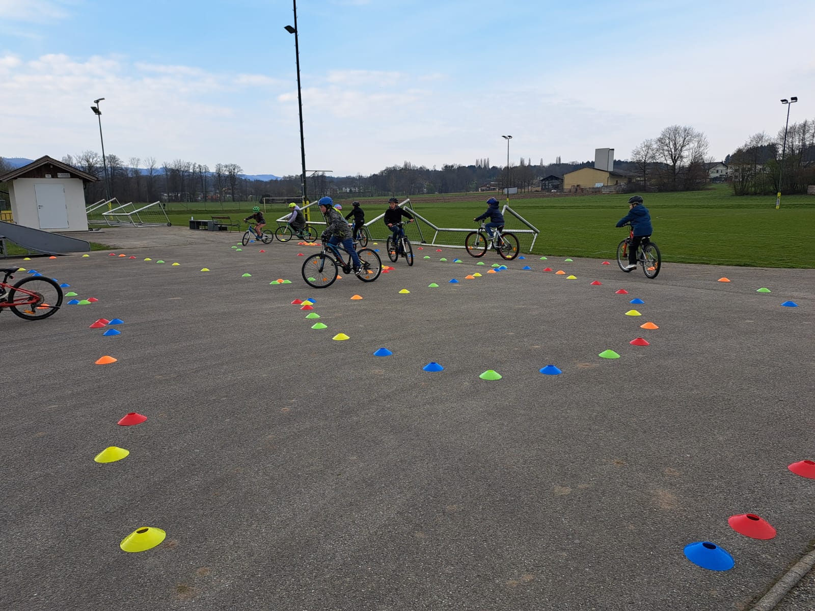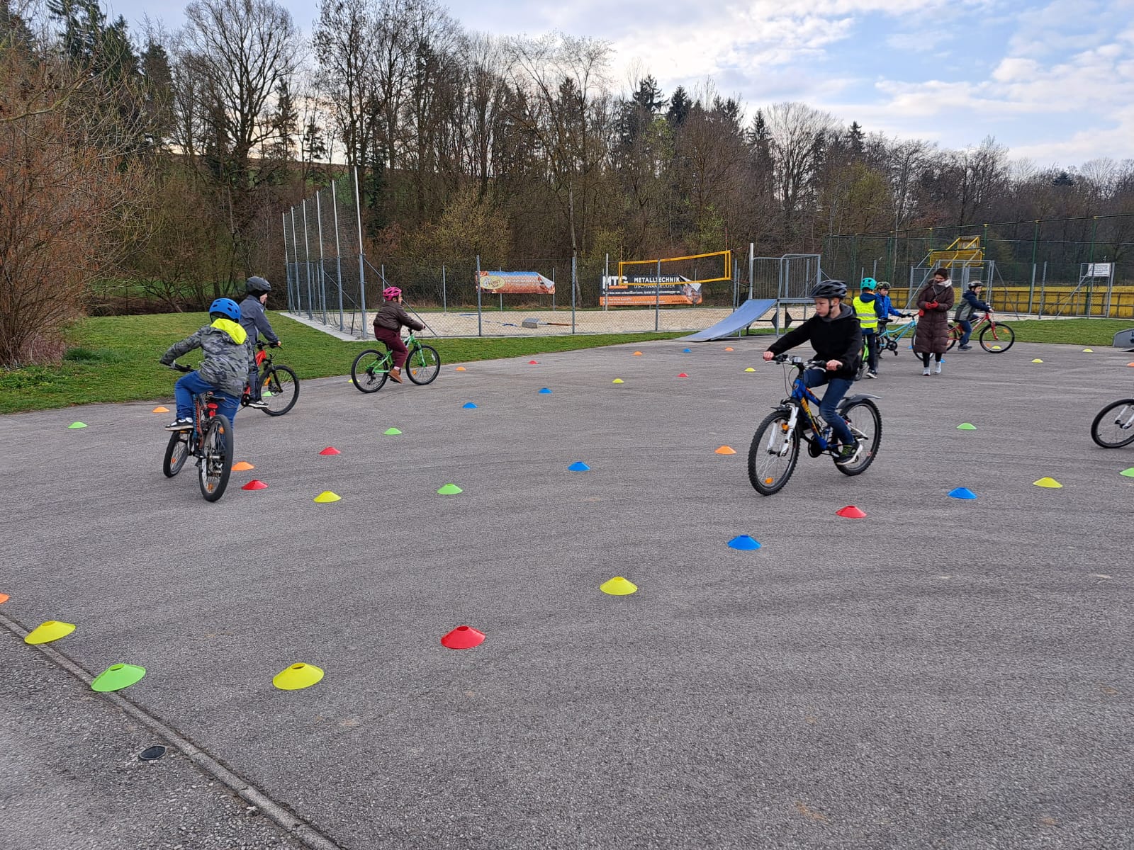 Für die dritten Klassen wurde ein Radfahrparcours am Parkplatz des Sportplatzes aufgebaut, auf dem die Kinder trainieren durften.