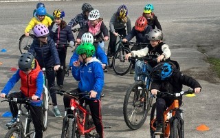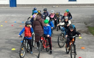 Als Vorbereitung auf die Radfahrprüfung fand ein Radfahrtraining für die 4. Klassen statt. Im Rahmen von "Radeln macht Schule" besprach ein Mitarbeiter von Frau Astrid Damböck mit den Schülerinnen und Schülern wie ein der STVO entsprechendes Fahrrad aussehen muss und kontrollierte mit den Kindern ihre Fahrradhelme. Danach fuhren sie in Kleingruppen die Strecke der Radfahrprüfung ab.