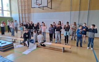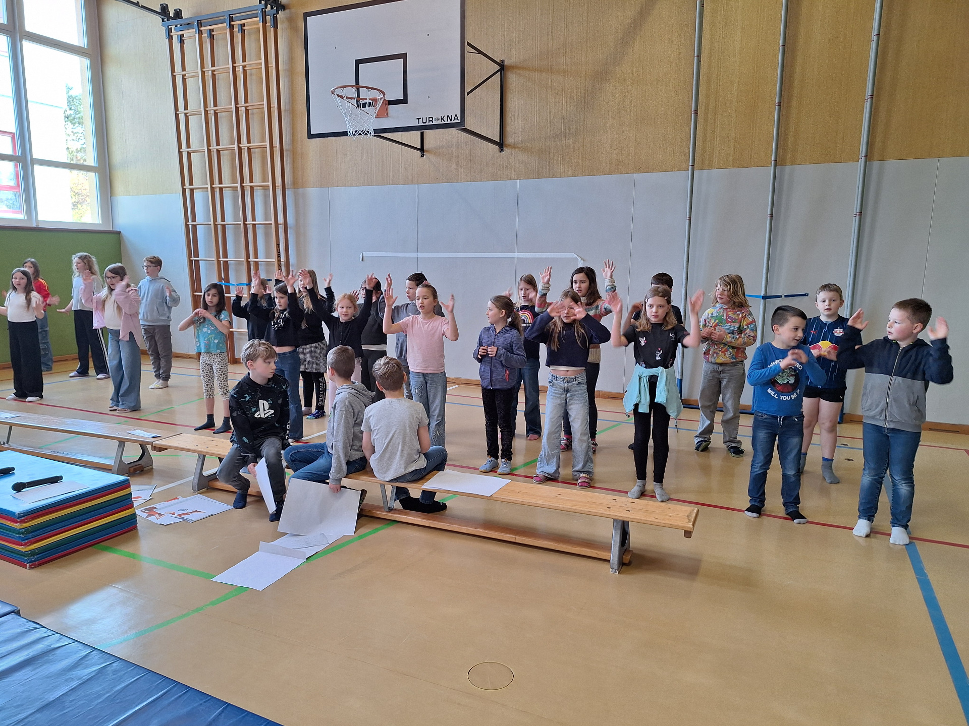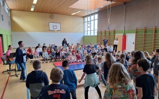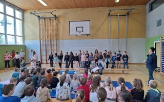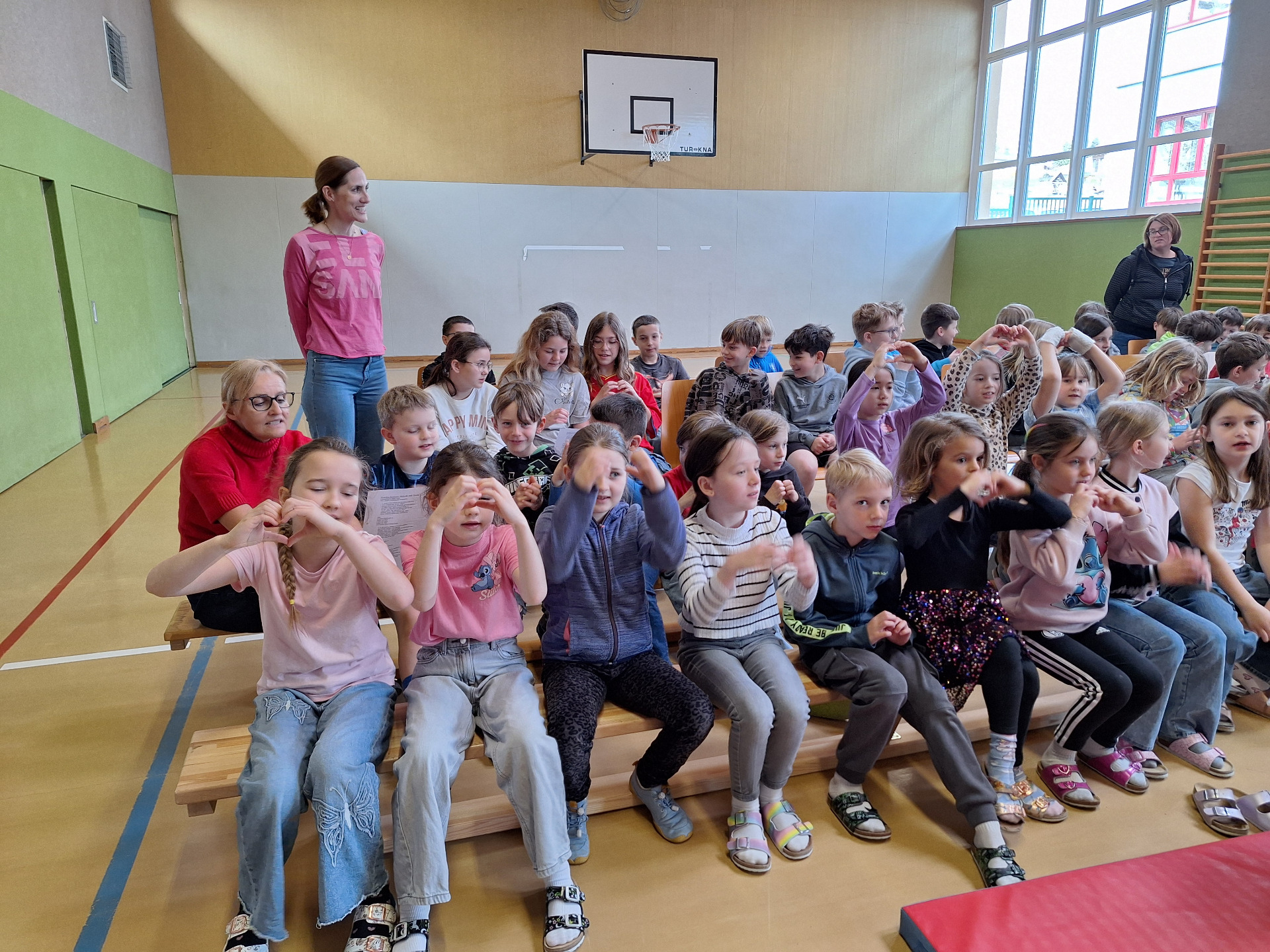 Zum Schluss wurde wieder von allen gemeinsam unsere Schulhymne "Schule mit Herz" gesungen, die den Kindern und LehrerInnen sehr gut gefällt.