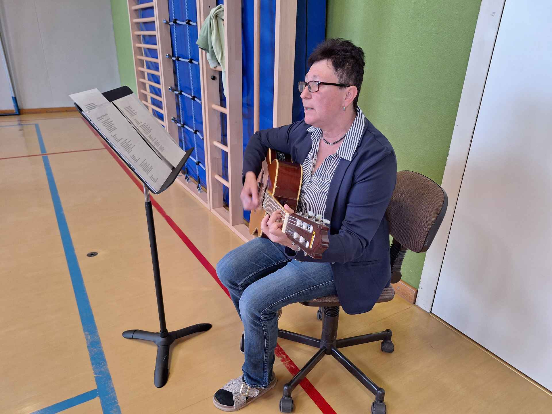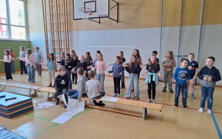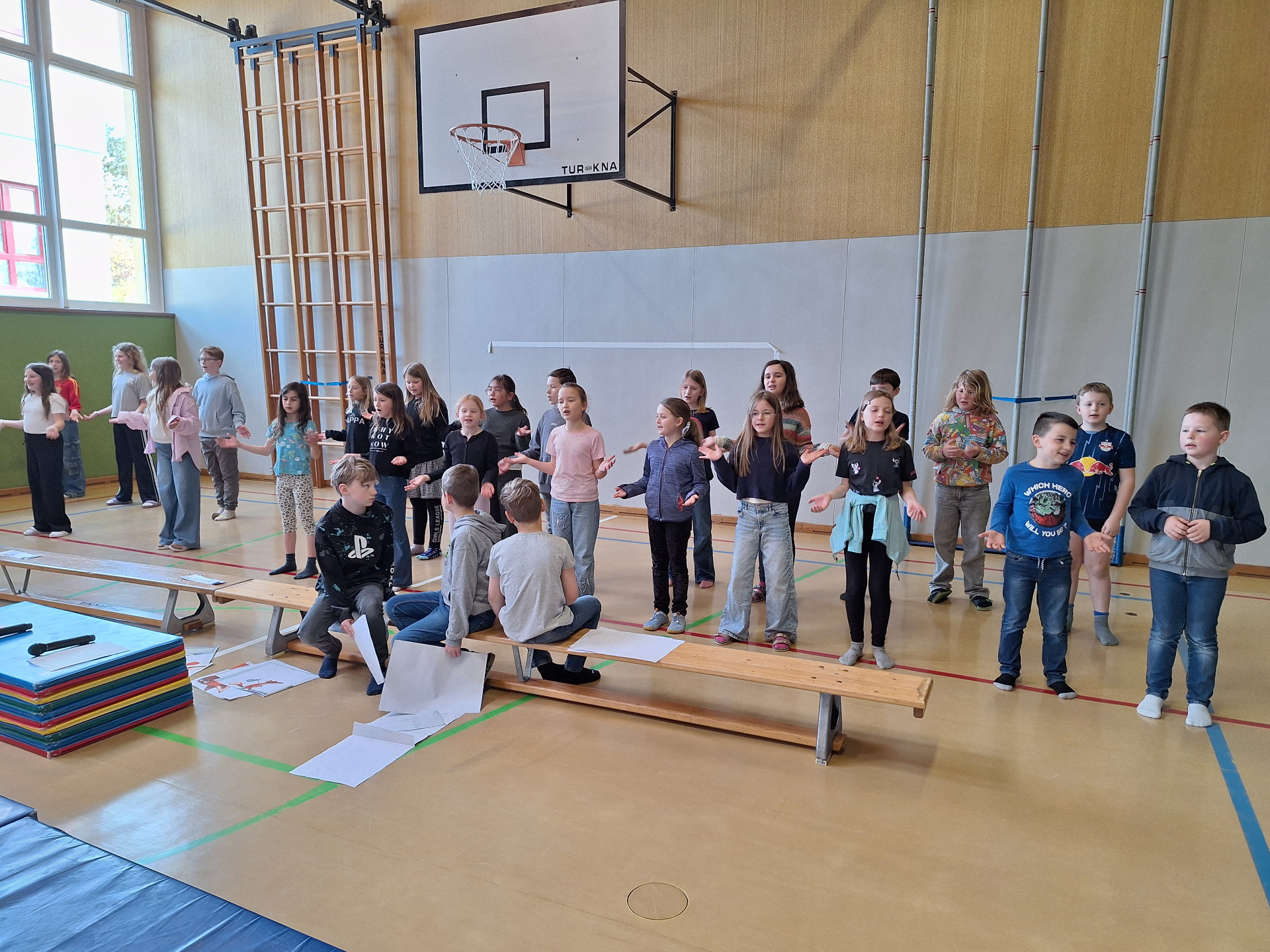 Die Chorkinder sangen mit Frau Lehrerin VOL Andrea Wiesmüller das Frühlingslied "I like the flowers" und tanzten sogar dazu.