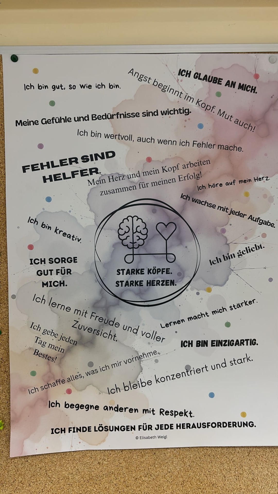 „Starke Köpfe – starke Herzen“ hieß das Motto eines spannenden Workshops, an dem unsere Kinder teilnahmen. Gemeinsam entdeckten sie, wie wichtig es ist, an sich selbst zu glauben, respektvoll miteinander umzugehen und auf das eigene Herz zu hören. Themen wie ein achtsamer Umgang mit dem Handy, Konzentration, Durchhaltevermögen und Selbstvertrauen standen im Mittelpunkt. Mit viel Freude und Begeisterung lernten die Kinder, dass sie alles schaffen können, was sie sich vornehmen – Schritt für Schritt, Aufgabe für Aufgabe.