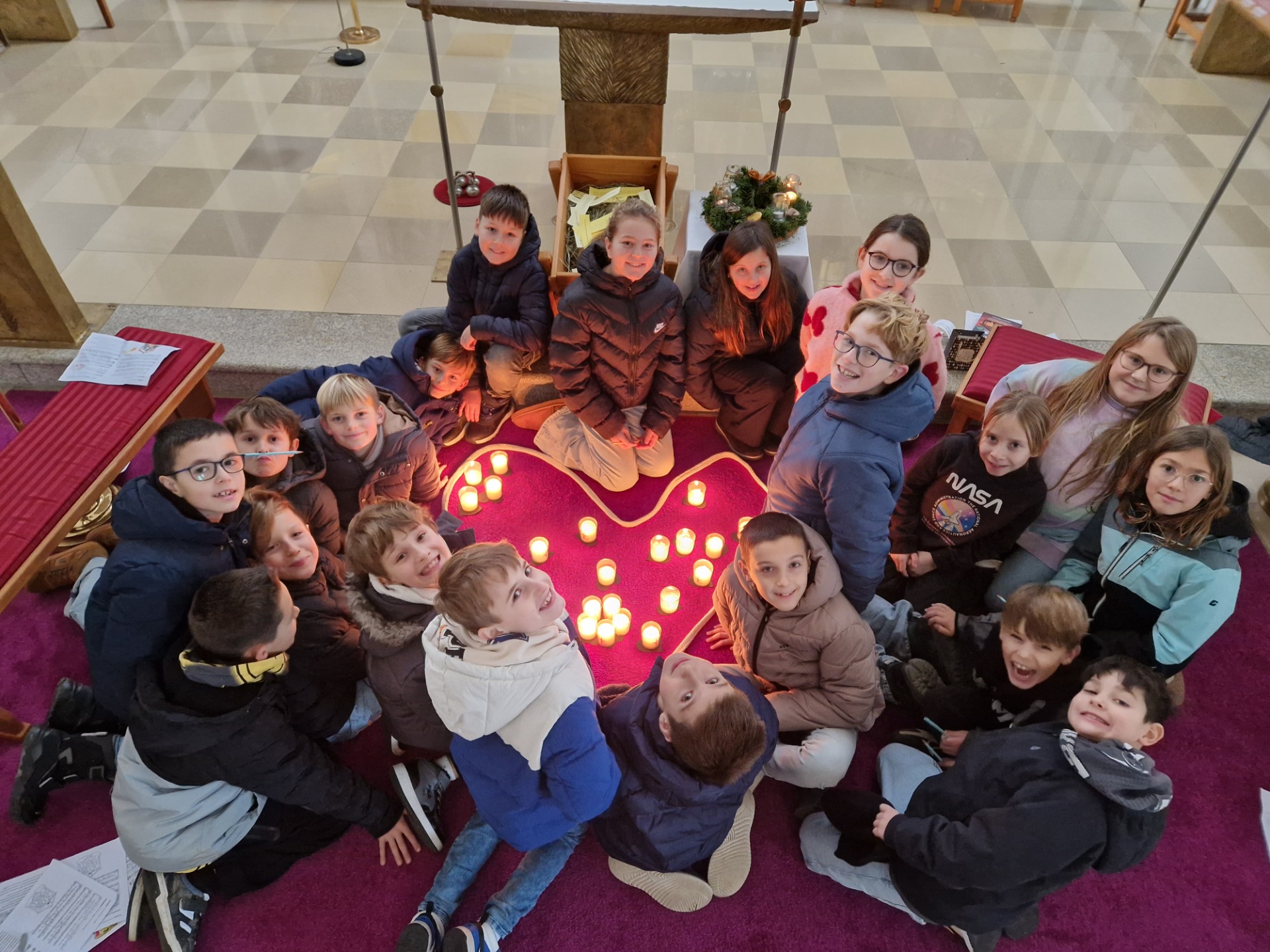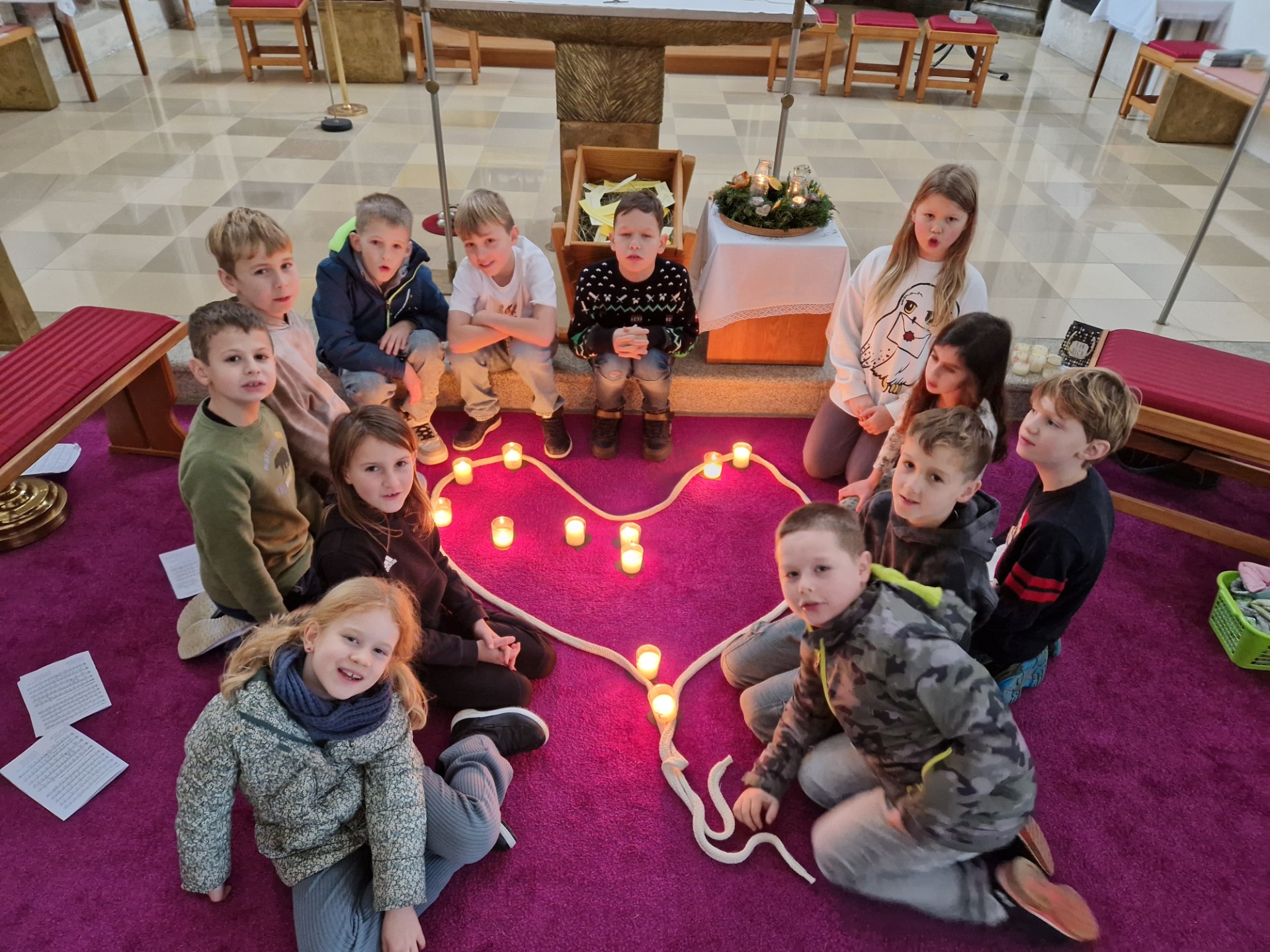Anhand der Weihnachtsgeschichte, in der die Hirten das Jesuskind in einem Stall in einer Krippe finden und einfacher Texte zum Vorlesen wurde den Kindern bewusst, was es bedeutet, vom Dunkel des Streits wieder ins Licht der Versöhnung zu kommen. Durch gemeinsames Beten, Singen und symbolische Handlungen konnten die Kinder aktiv mitfeiern.