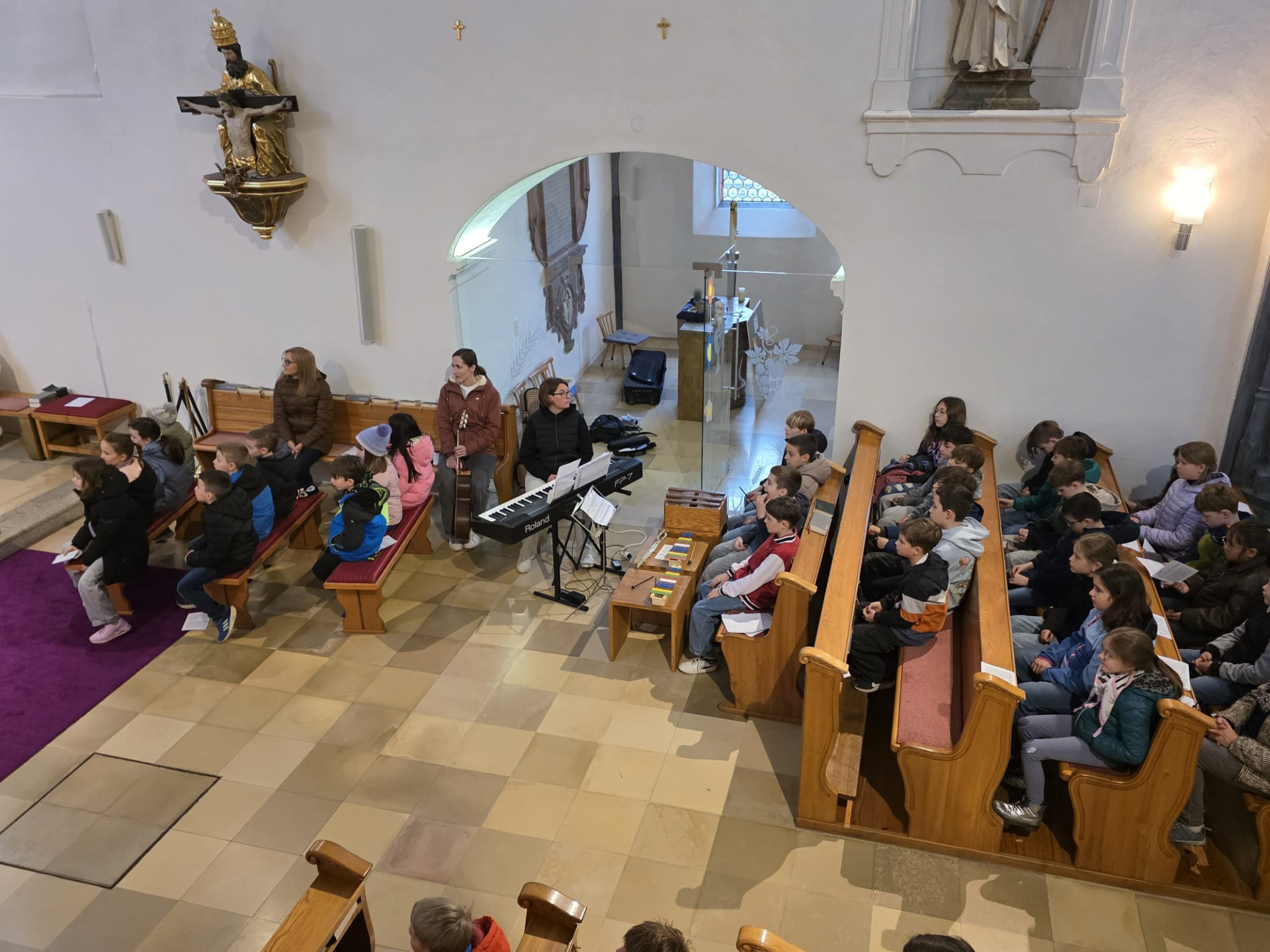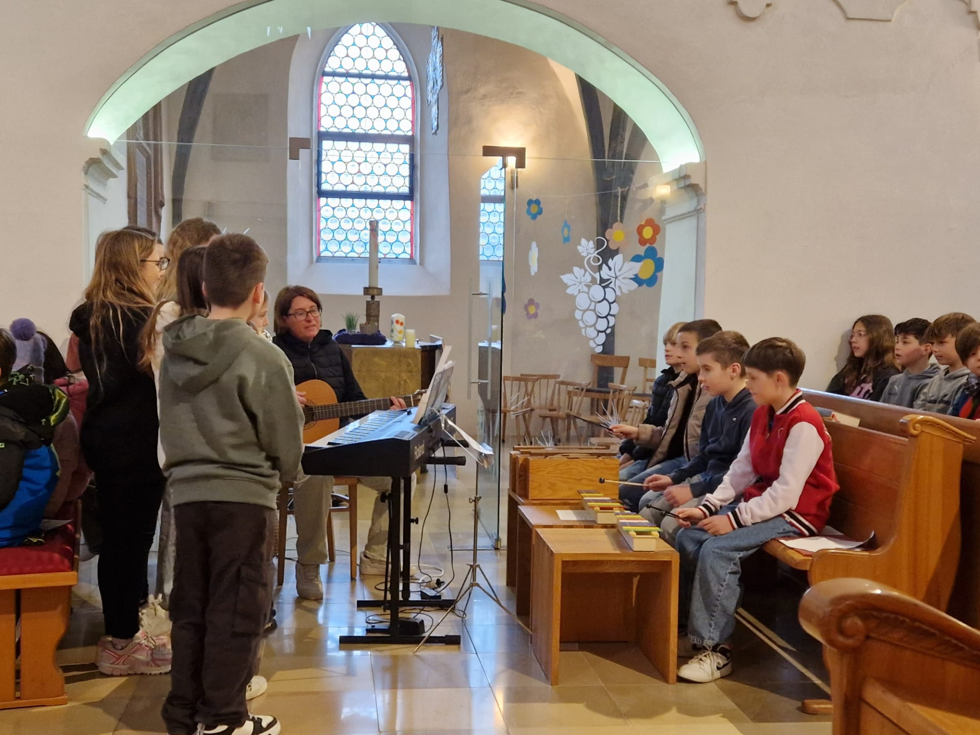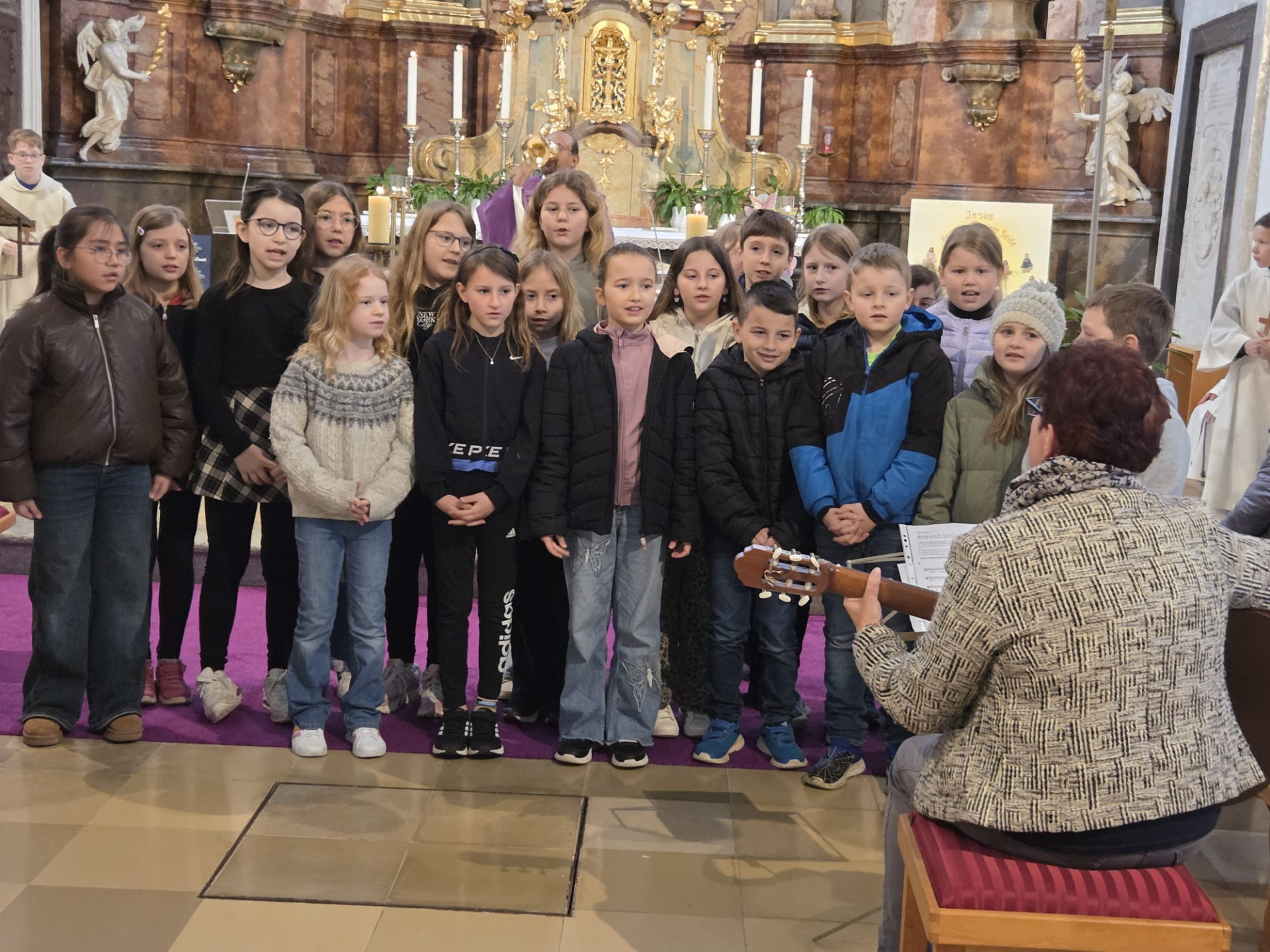 Unter der Leitung von VOL Andrea Wiesmüller, BEd, sangen die Chorkinder auch Messlieder.