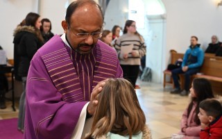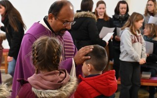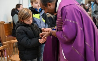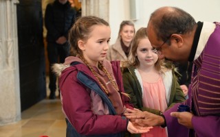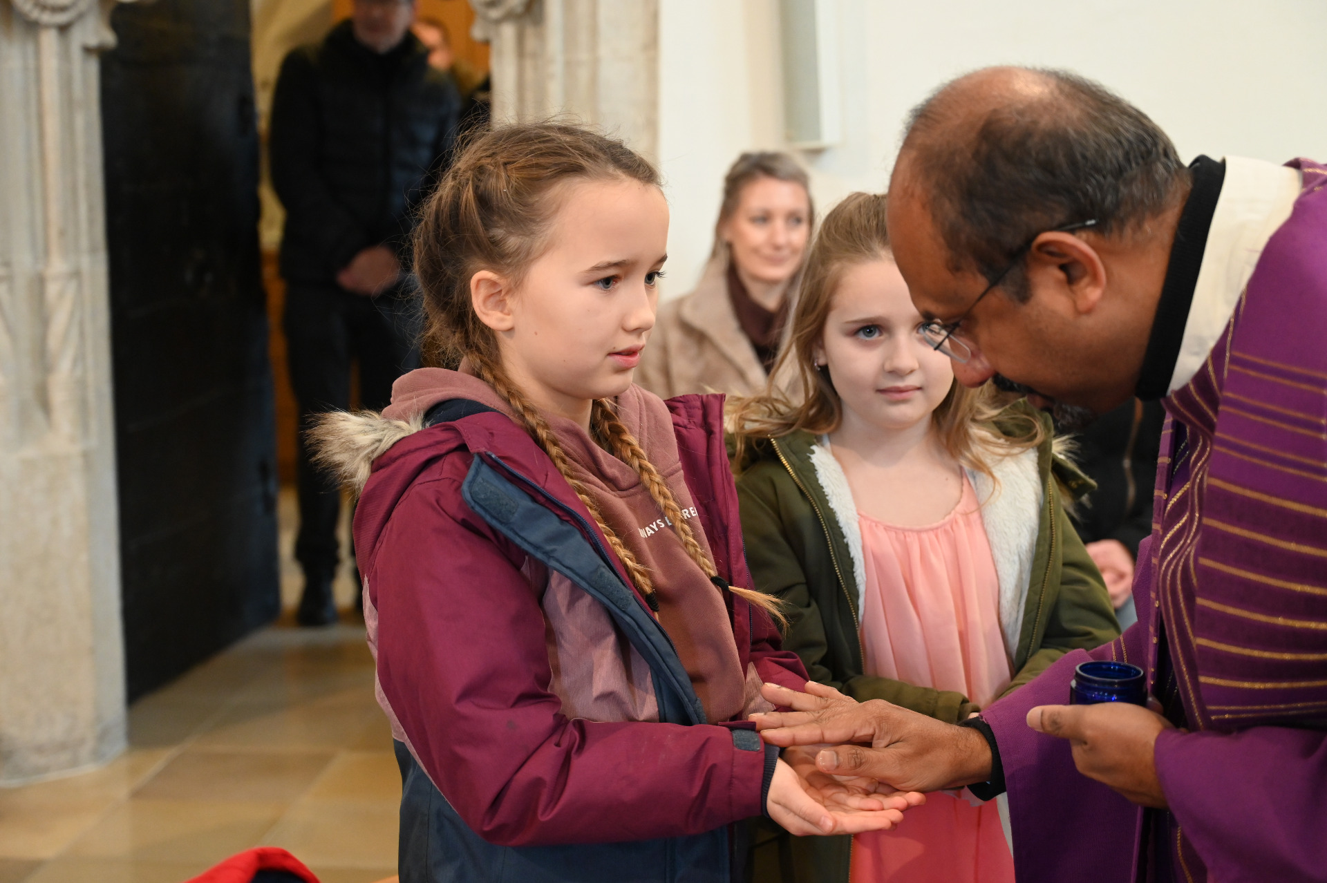 In einer kleinen Zeremonie salbte Pfarrer Wilson die Handflächen der Kinder mit duftendem geweihtem Öl und segnete die Kinder.