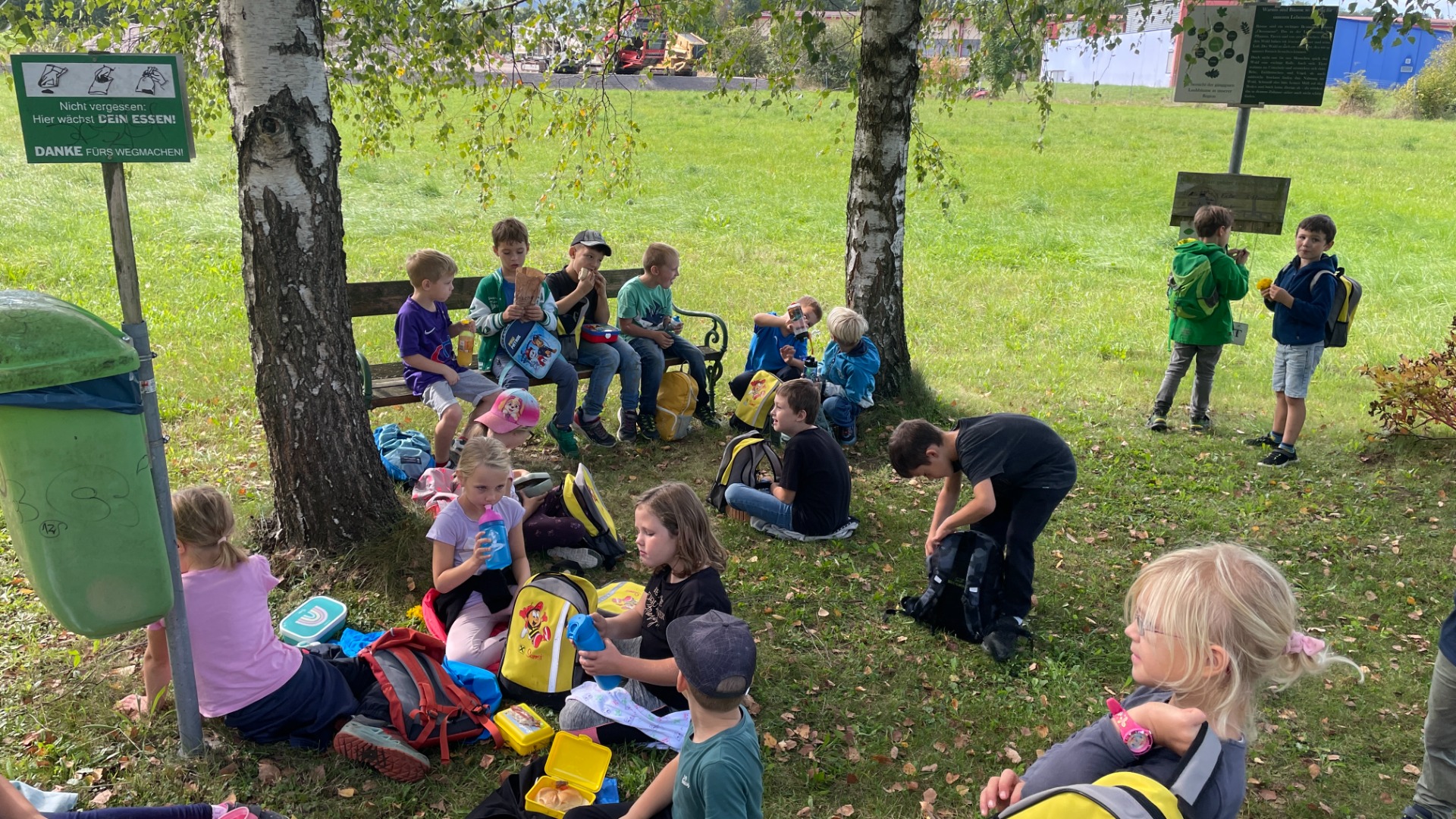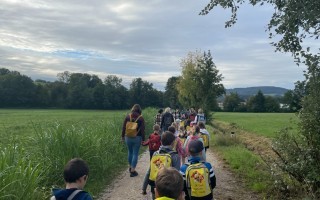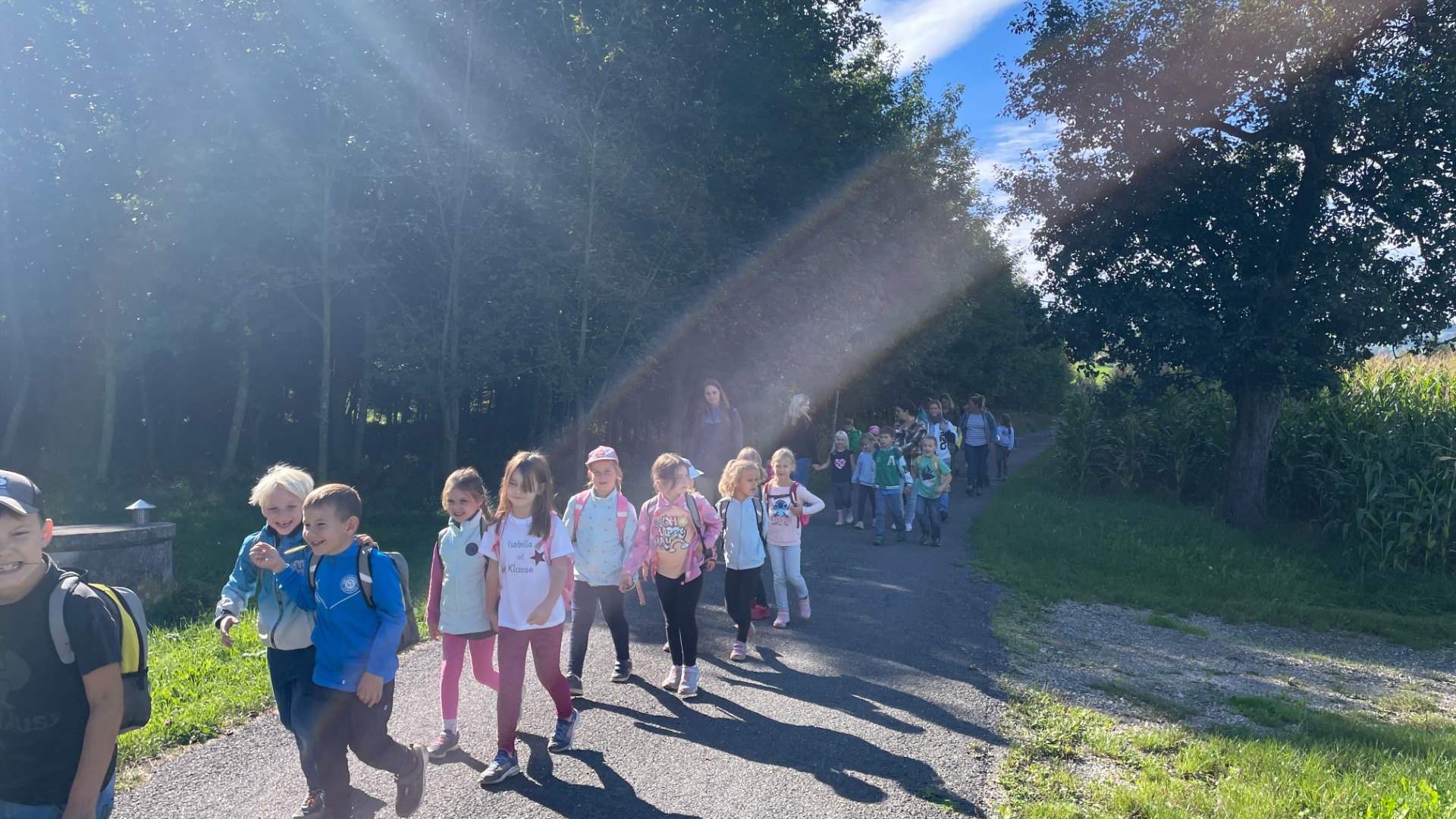 Bei strahlendem Sonnenschein machten sich am Donnerstag, 18. September 2025 beide 1. Klassen gemeinsam mit zahlreichen Eltern als Begleitpersonen auf den Weg. Entlang der alten Straße in Ferschnitz wurde fleißig marschiert, erzählt und gelacht.