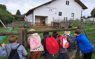 Anschließend marschierten wir beim Kleintierzoo der Familie Reisinger vorbei und über den Sportplatz zurück zur Schule.