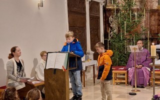 Pfarrer Wilson freute sich sehr, die Kinder und einige Eltern der Schulgemeinschaft im vorweihnachtlichen Gottesdienst begrüßen zu dürfen.